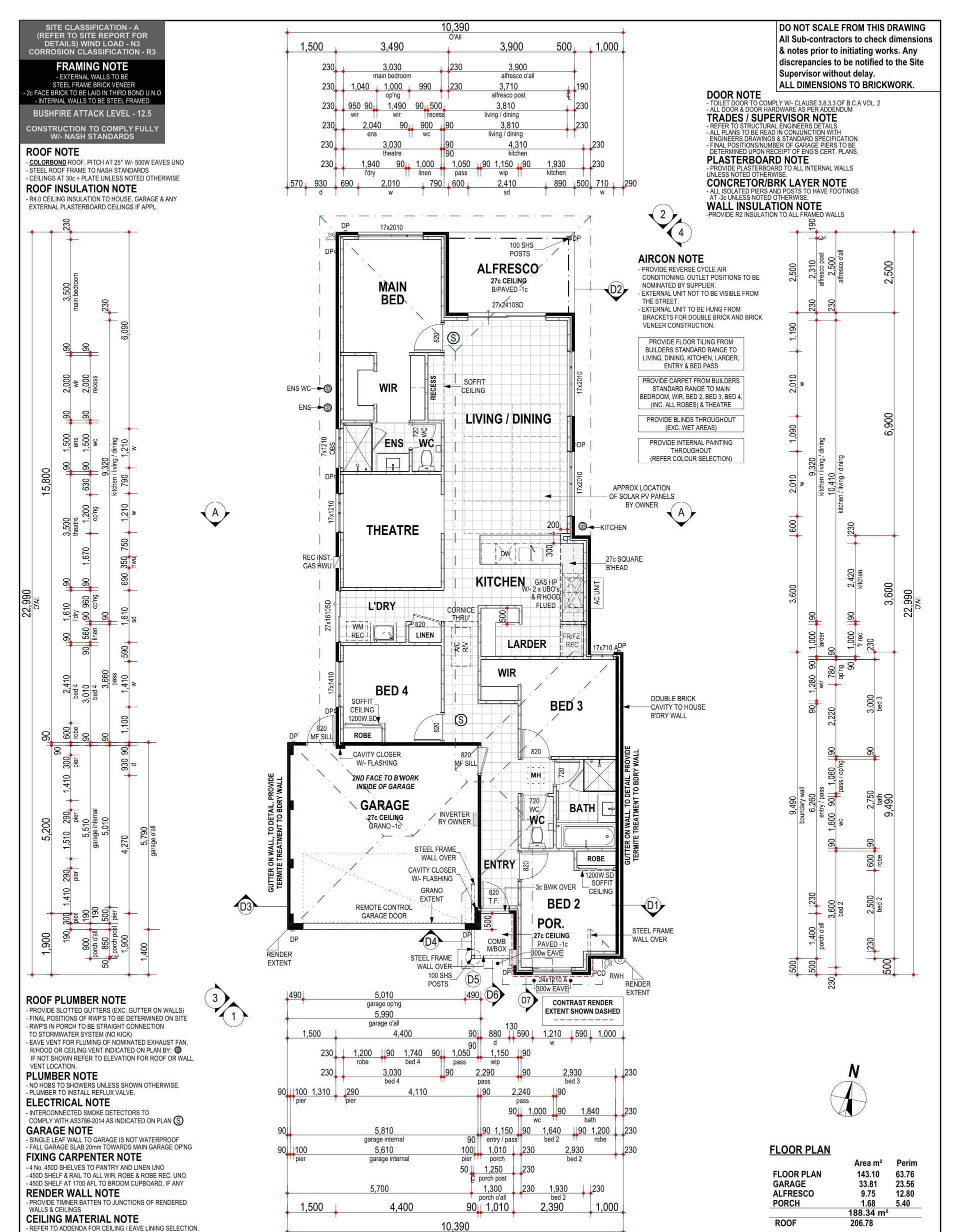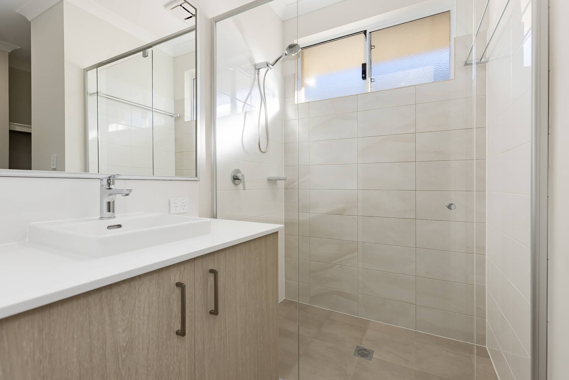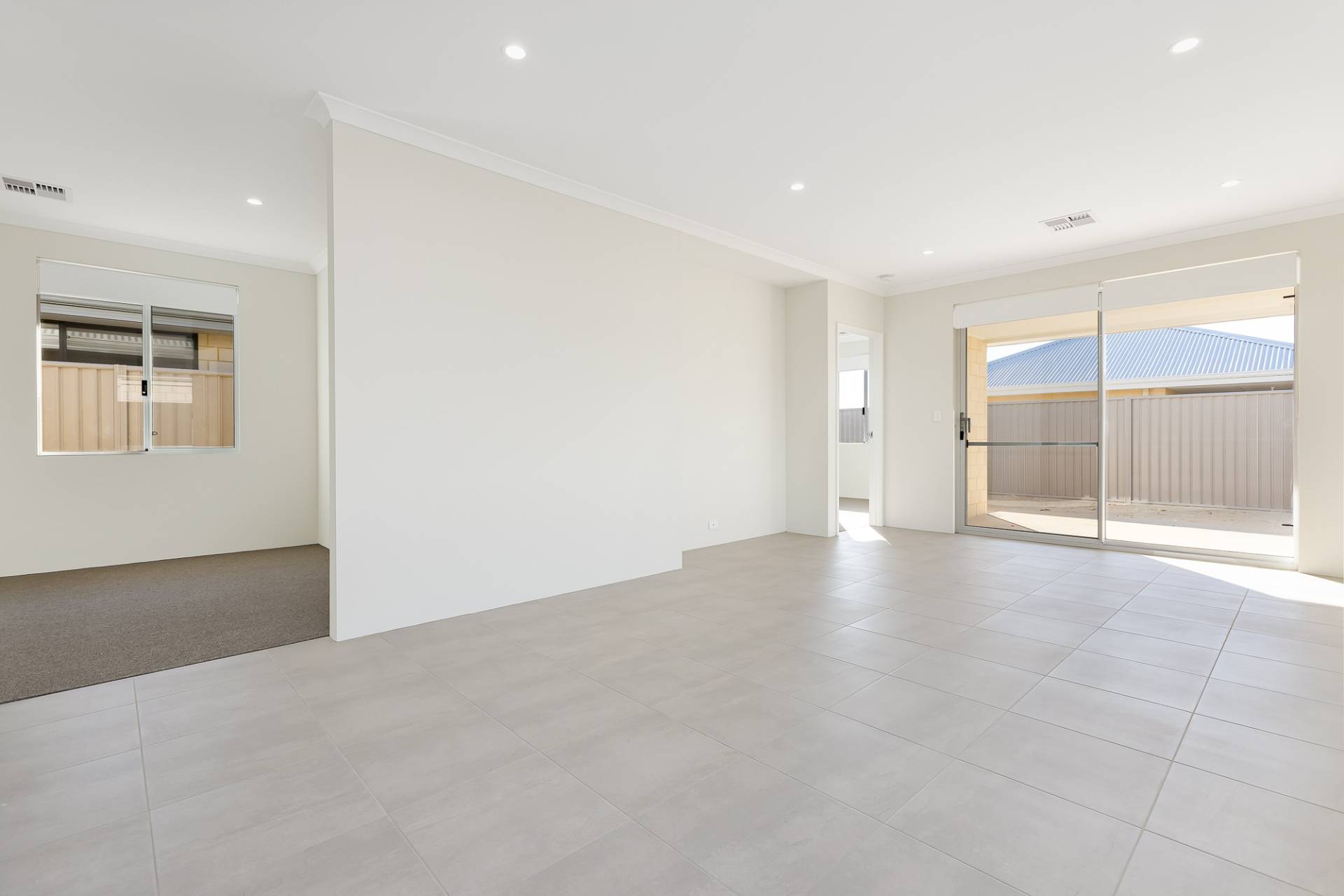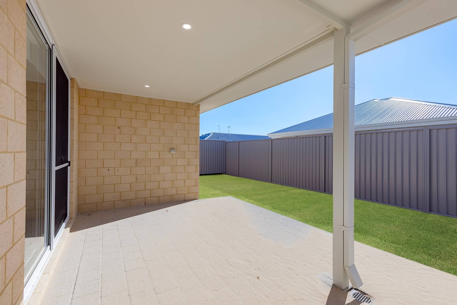 The home offers four well-sized bedrooms, including a spacious master suite featuring dual walk-in robes and a private ensuite with vanity, shower, and WC. A separate theatre room provides the perfect spot for movie nights or quiet downtime. The main bathroom includes a bath, glass shower, and stone-top vanity, with a separate WC for added practicality.
