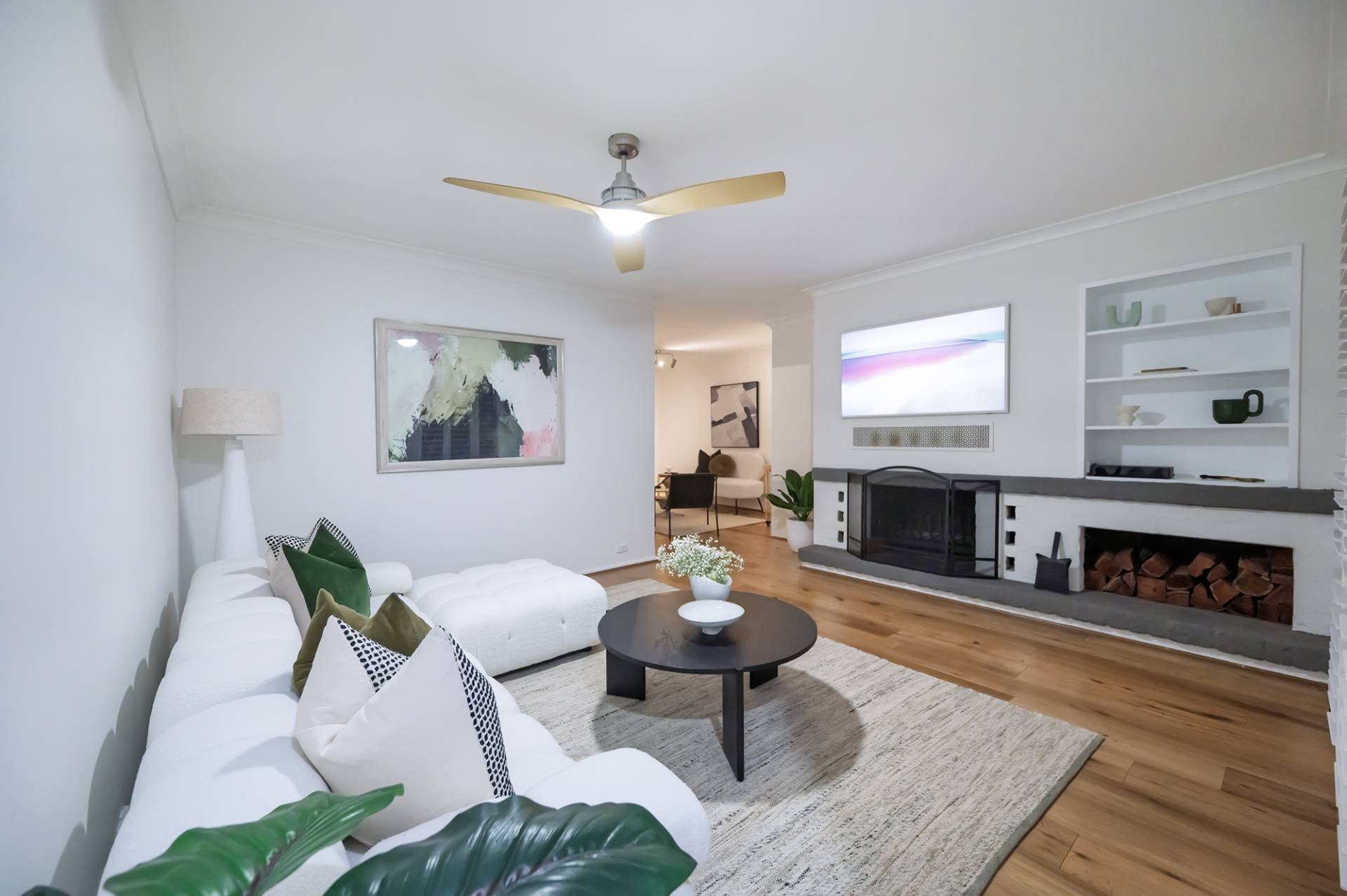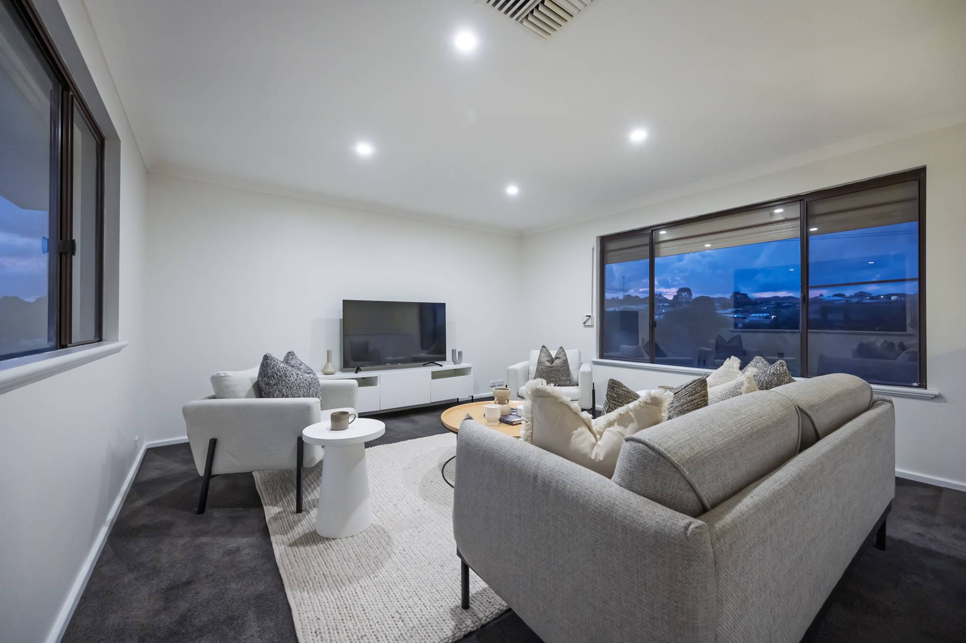 Boasting four well-appointed bedrooms and two bathrooms, off main living dining area study/guest room the layout cleverly separates living zones to suit every stage of family life. Downstairs, two generous lounge areas provide room for both connection and retreat—ideal for hosting guests or relaxing as a family. The main lounge is enhanced by the fixed tv and fireplace, creating a stylish and functional entertainment space. Upstairs offers another large living area, making it the perfect kids' retreat, while parents can enjoy their own space downstairs. The master suite is a true sanctuary, featuring a large walk-in robe and private ensuite, while the remaining bedrooms are all fitted with built-in robes and ample room to grow.
