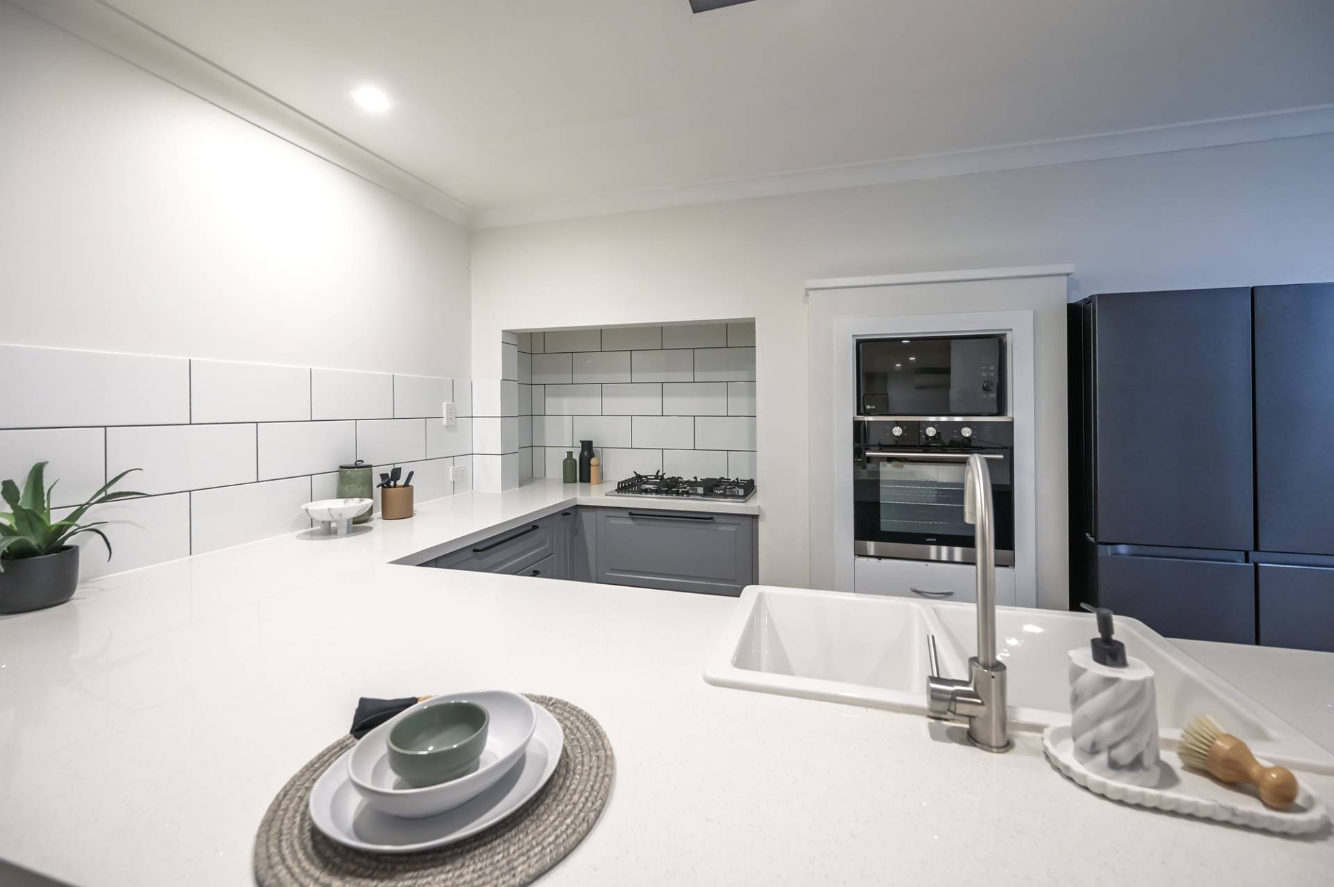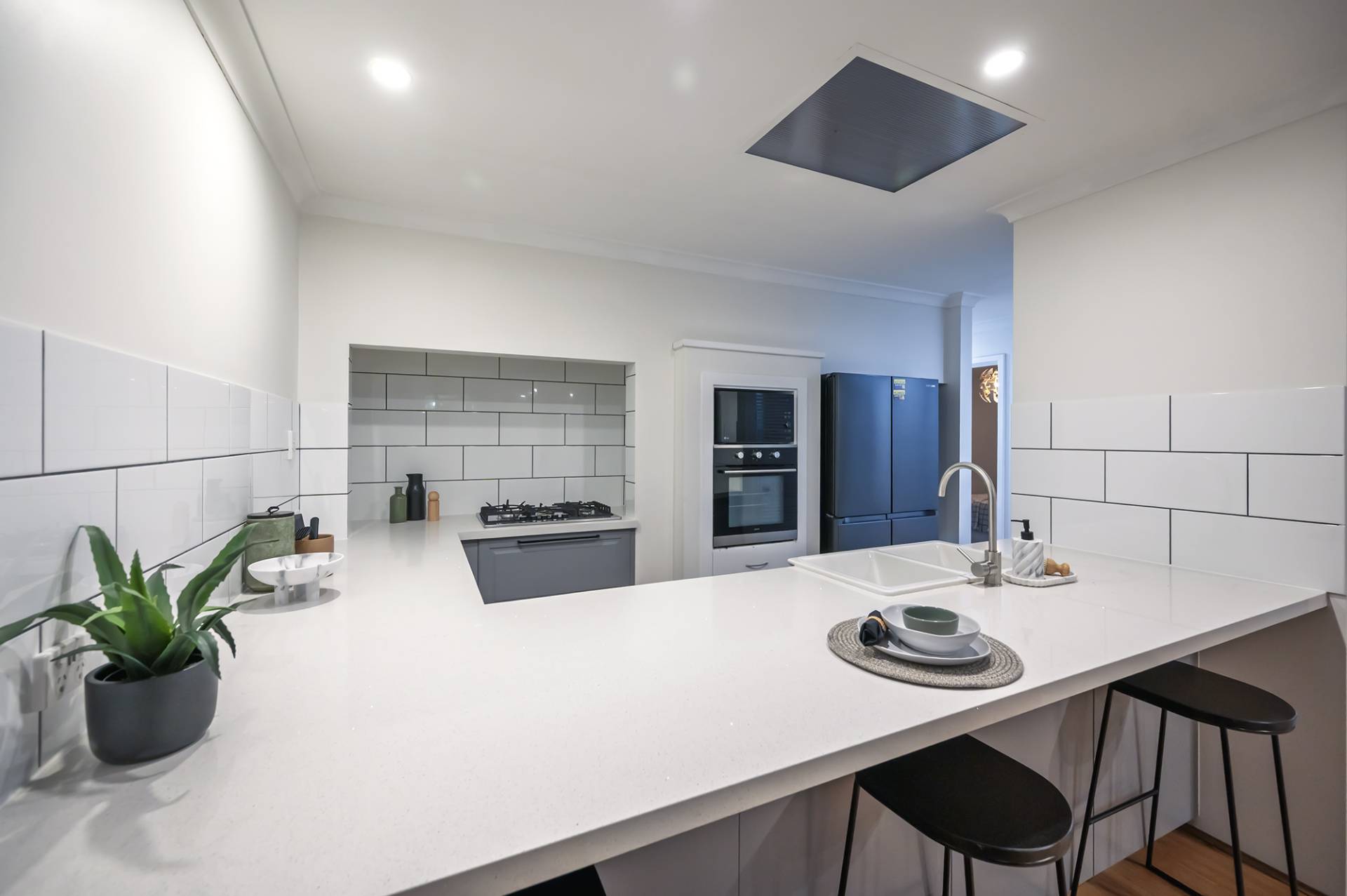 Comfort is assured year-round with reverse cycle air conditioning in the master bedroom and main living / dining area, plus evaporative air conditioning on the top floor. The heart of the home is the stunning kitchen—modern, functional, and built for entertaining. With expansive stone benchtops, stainless steel appliances, gas cooktop and induction oven, abundant storage, and a fully plumbed Samsung fridge, it's a dream for any home chef.