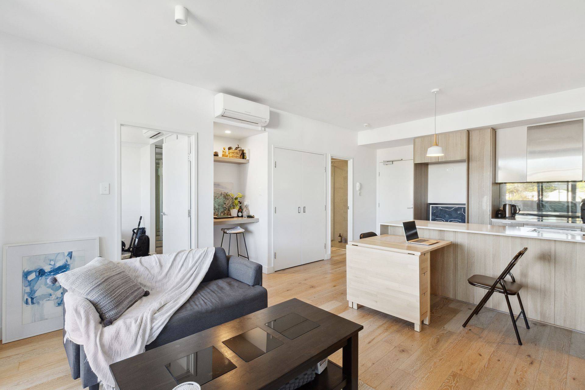 The generously sized bedroom features, plush carpet, semi-ensuite bathroom and walk in robe ensuring both comfort and practicality. The apartment also features European laundry, reverse cycle air-conditioning and a secure car bay via a convenient car stacker system.