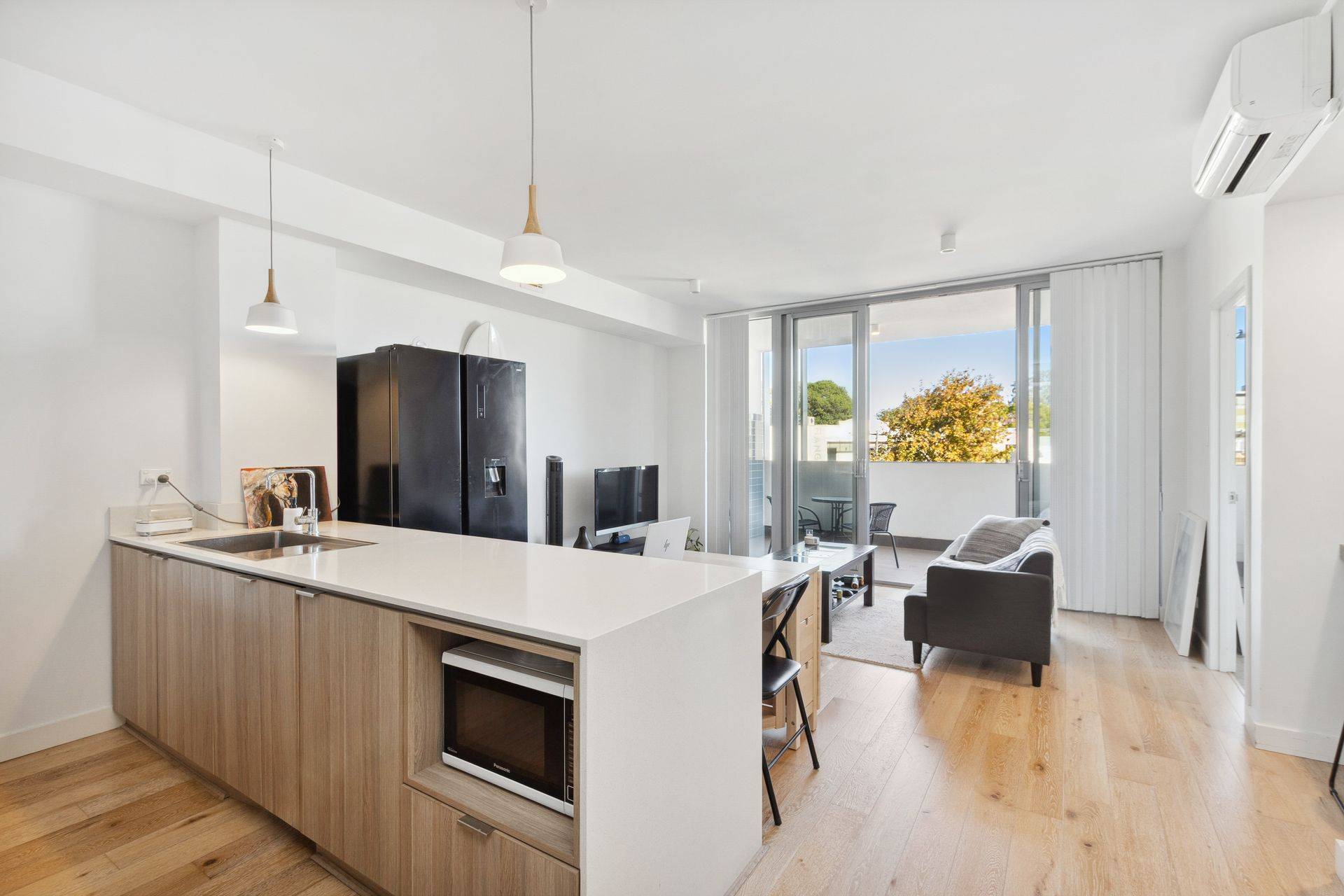 The modern kitchen is fully equipped with quality appliances, stone benchtops, nice cabinetry dishwasher and breakfast bar. Step out onto your own private balcony from the lounge and enjoy the fresh air and unwind after a long day!