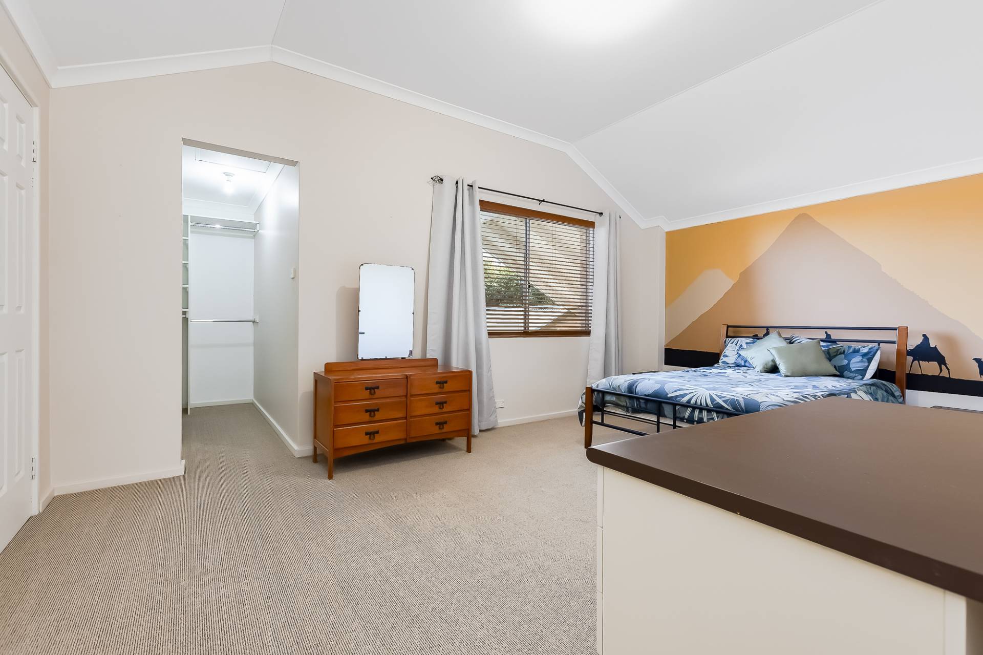 Upstairs, an additional living mezzanine area that provides a peaceful retreat feel, also ideal work-from-home setting. Also offering an additional "guest" bedroom that can be used as a second master or teen retreat. The room boasts a walk-in robe and ample room to relax.