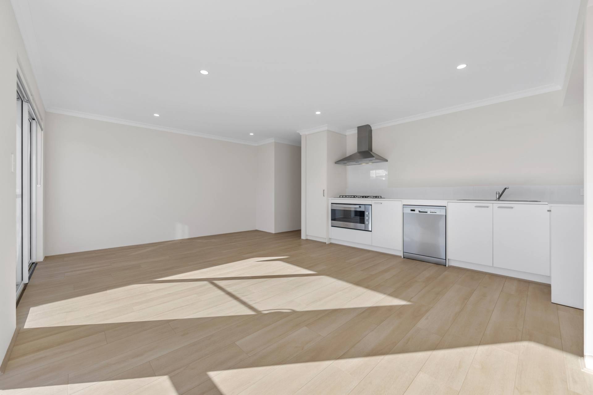 The open-plan living and dining area is light, bright, and finished in fresh neutral tones, giving you a calm, welcoming space that’s easy to style your way. The kitchen features a gas cooktop, stainless steel dishwasher, and sleek cabinetry with plenty of storage.