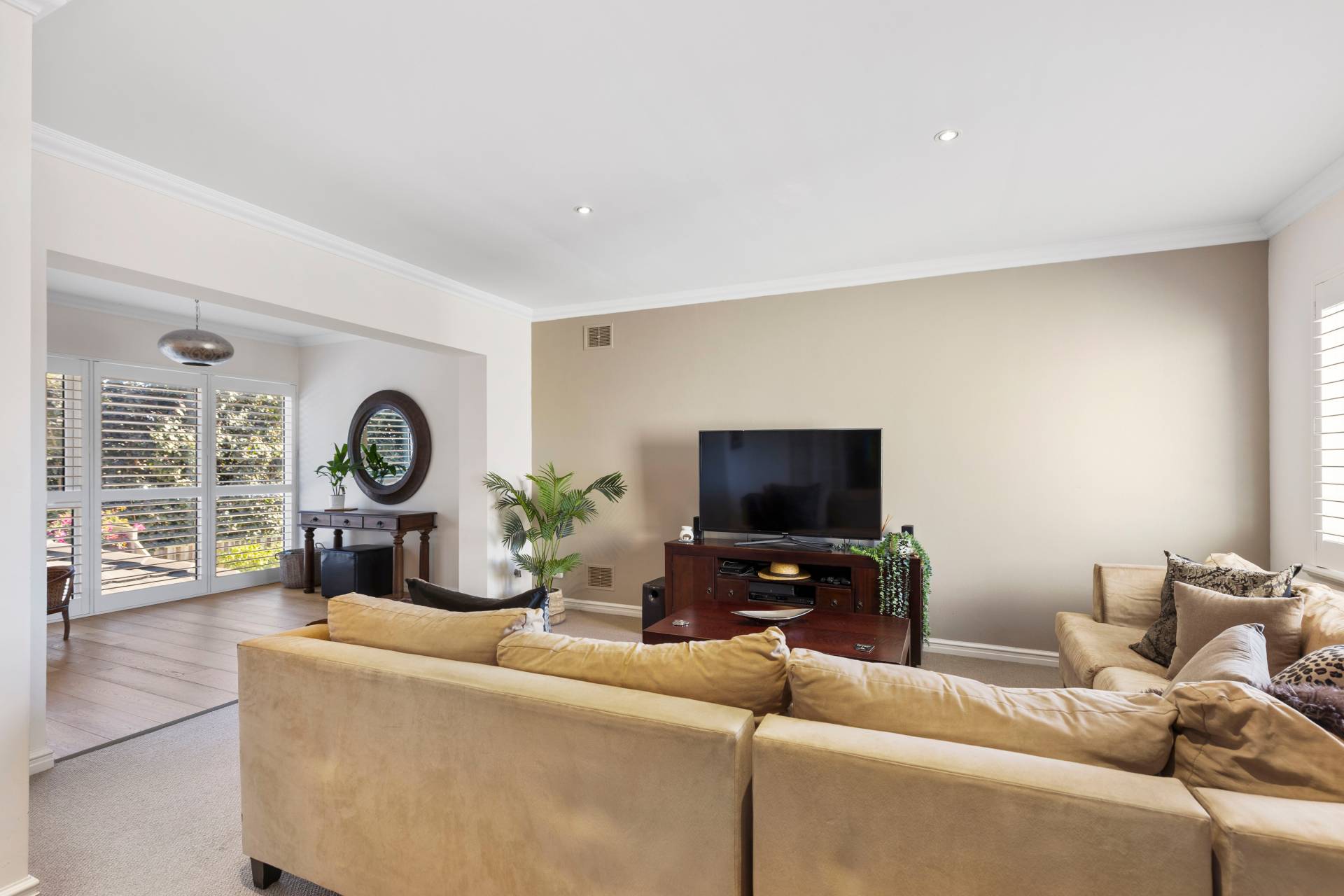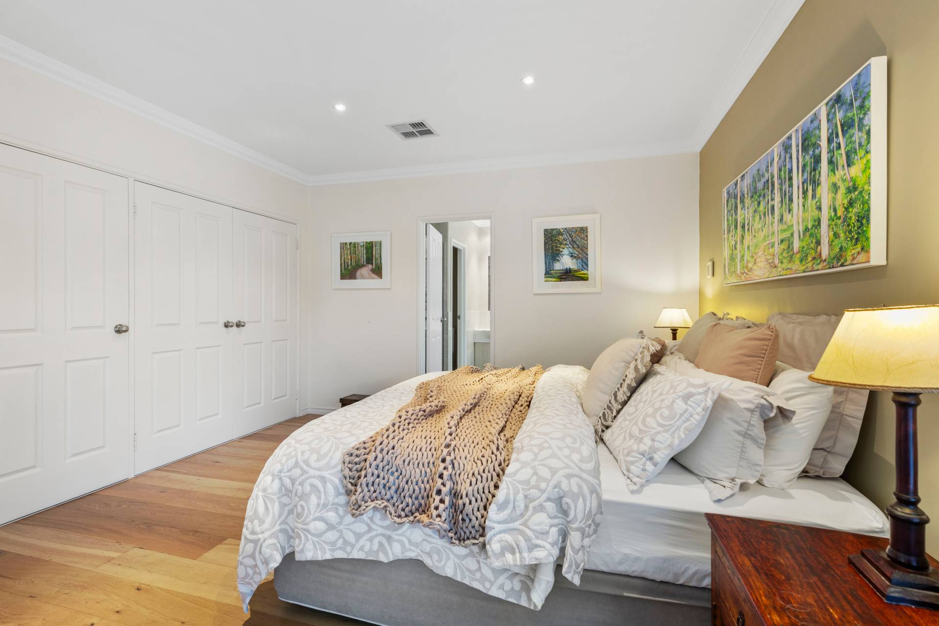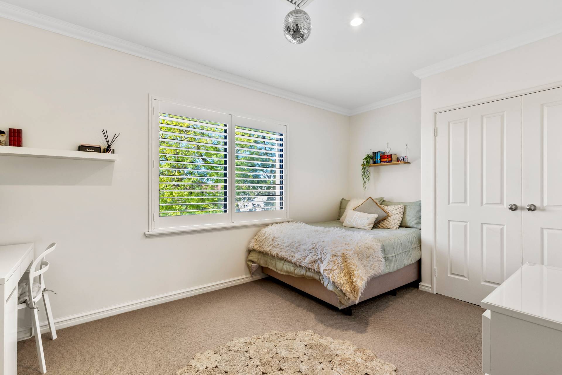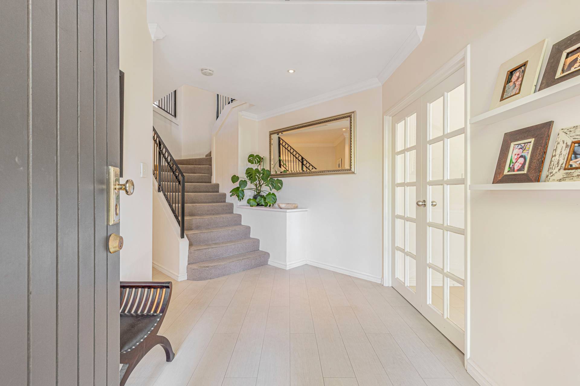 As you step through the front entry gate you're welcomed into a tranquil outdoor setting framed by manicured gardens, a soothing water feature, built-in timber bench and a cozy fire pit - all nestled beneath the shade of mature trees. Entering the home a wide tiled entry foyer and open staircase greets you with an immediate sense of space and natural light. To your right a quiet media room provides a perfect sanctuary for reading & relaxing or a possible second home office. Continue through the home and discover a spacious open-plan family and meals area overlooking the front and rear gardens.