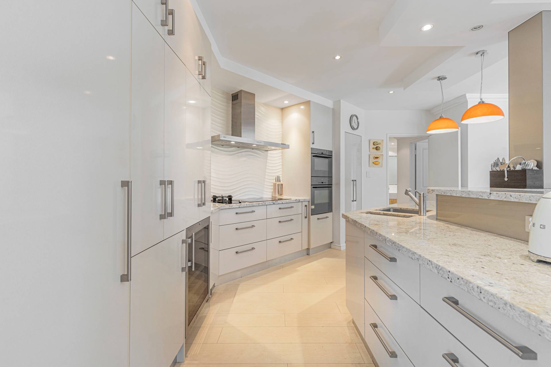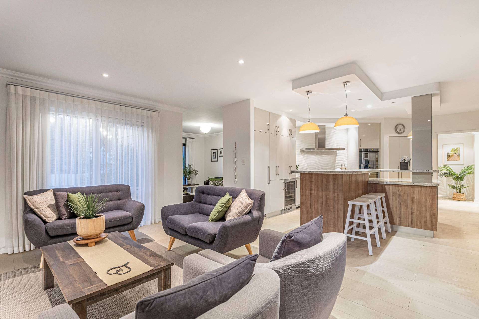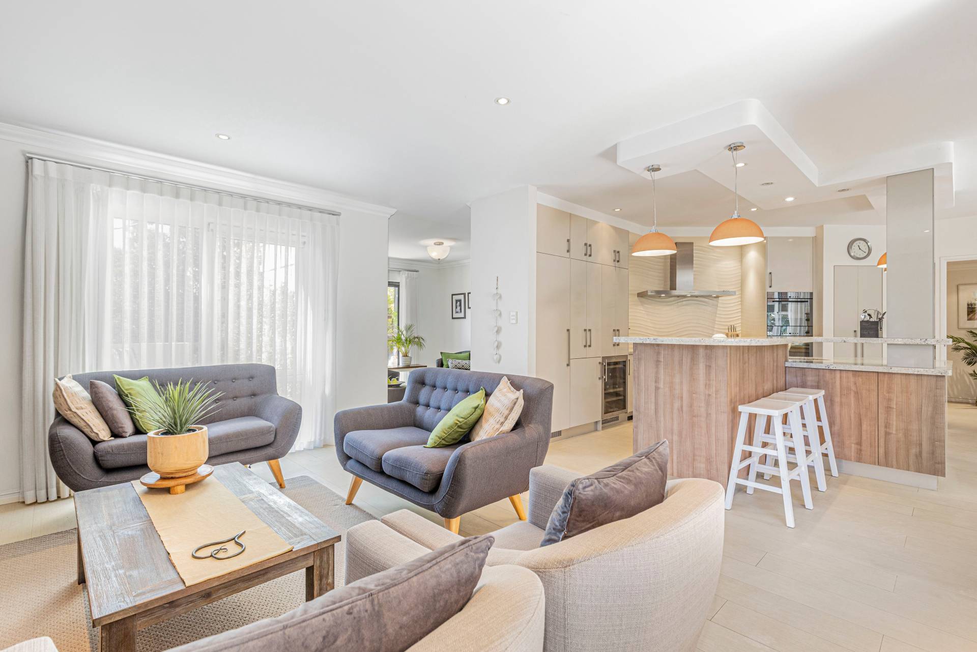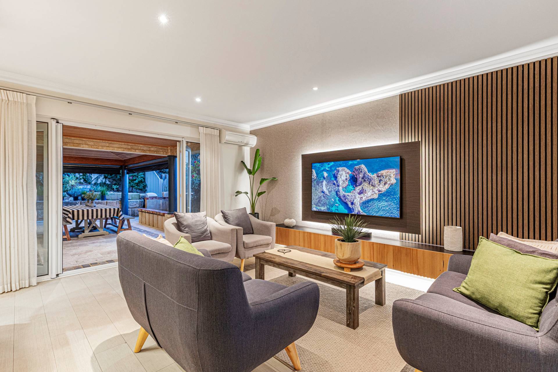 The heart of this zone is the high specification modern kitchen equipped with granite benchtops and the finest European appliances (Zug, Siemens & Liebherr), including double ovens, steam oven, induction & gas cooktops, a Liebherr integrated fridge & freezer plus a separate wine fridge—ideal for the passionate home chef or entertainer. The kitchen flows effortlessly into the main living zone and out onto the party sized, cedar-lined alfresco area - creating a seamless indoor-outdoor lifestyle experience that's perfect for year-round entertaining.