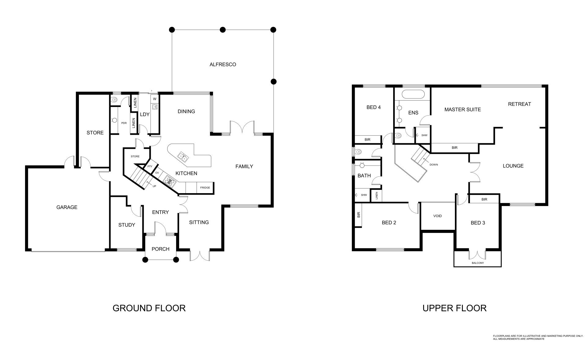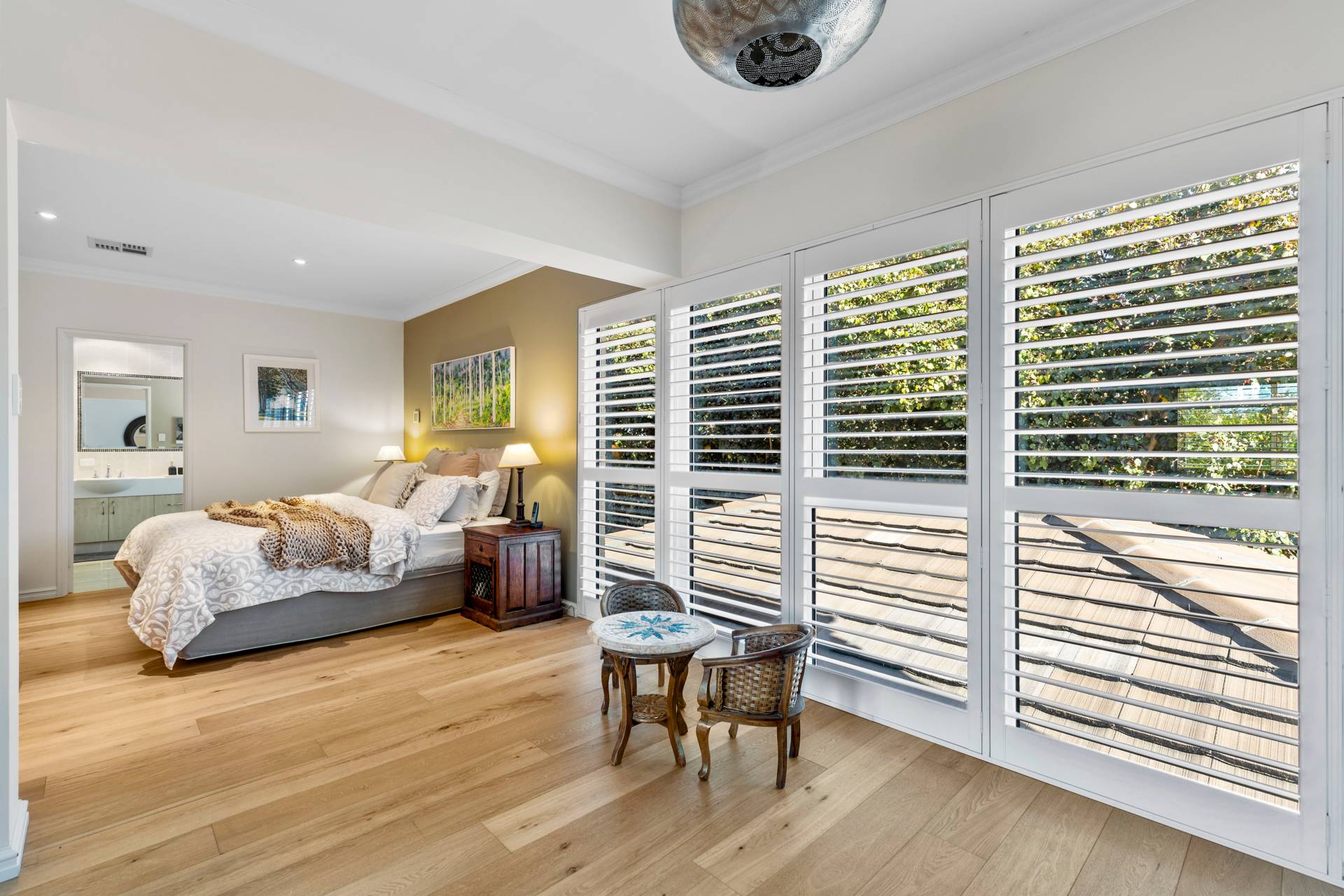 Upstairs, the first floor continues the theme of space and comfort, beginning with a large open landing that can serve as a study nook or teenager's retreat. The hotel sized master suite boasts warm American Oak flooring, a dedicated parents' retreat and a spacious ensuite bathroom - fully tiled and beautifully appointed incorporating a glass-screened shower, large bath, double vanities and a separate toilet. The three additional bedrooms are all generously sized and set apart for privacy, each with built-in robes and easy access to a well-appointed main bathroom with separate toilet.