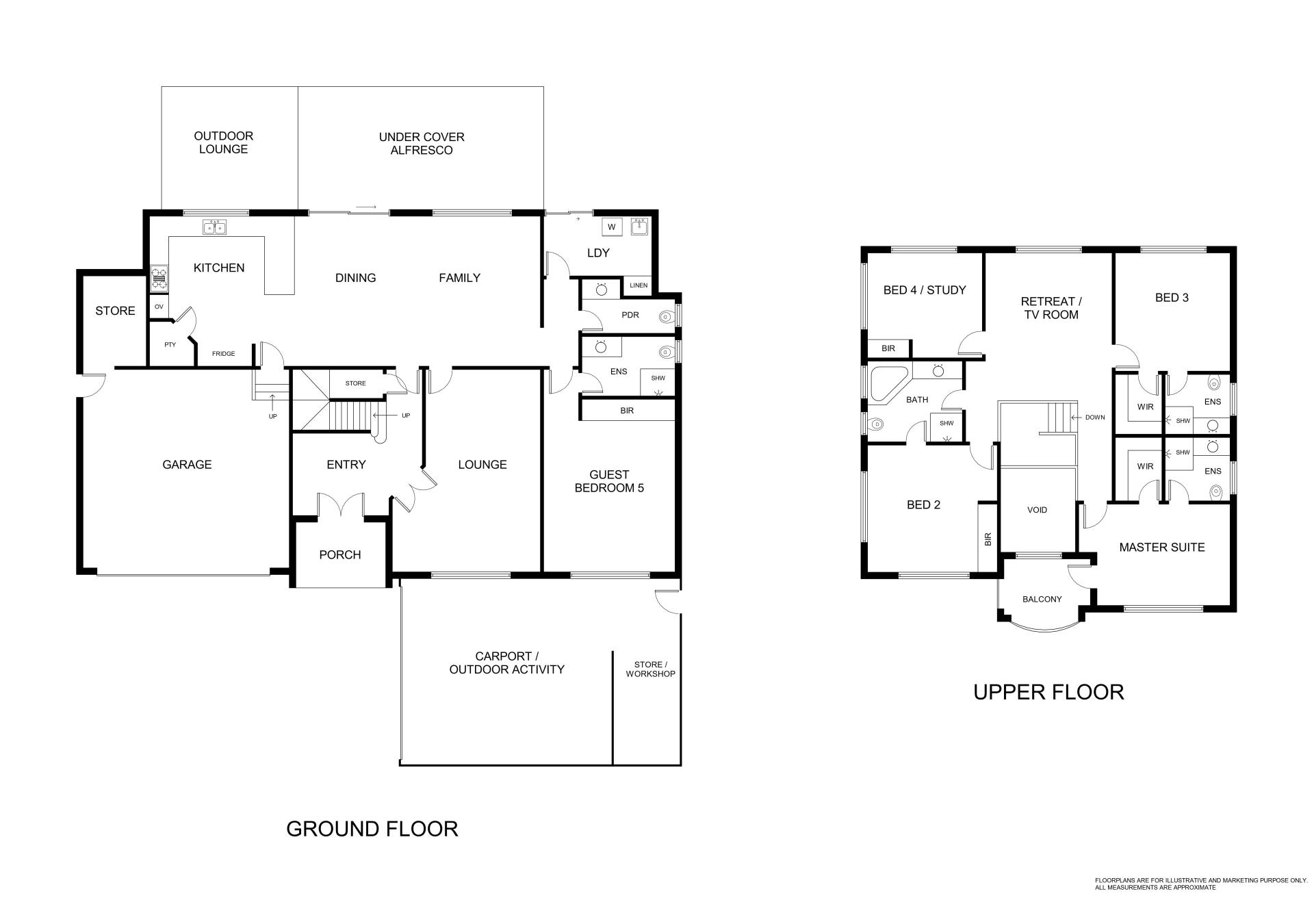 The 5 generous bedrooms are well spaced out for privacy. The bedroom located on the ground floor can be designated as the master bedroom, a 5th guest or grandparent's room with adjoining ensuite bathroom. The 4 bedrooms on the first level are located on each corner of the floor. Three of these bedrooms have an ensuite bathroom. All bedrooms have built-in or walk-in robes.