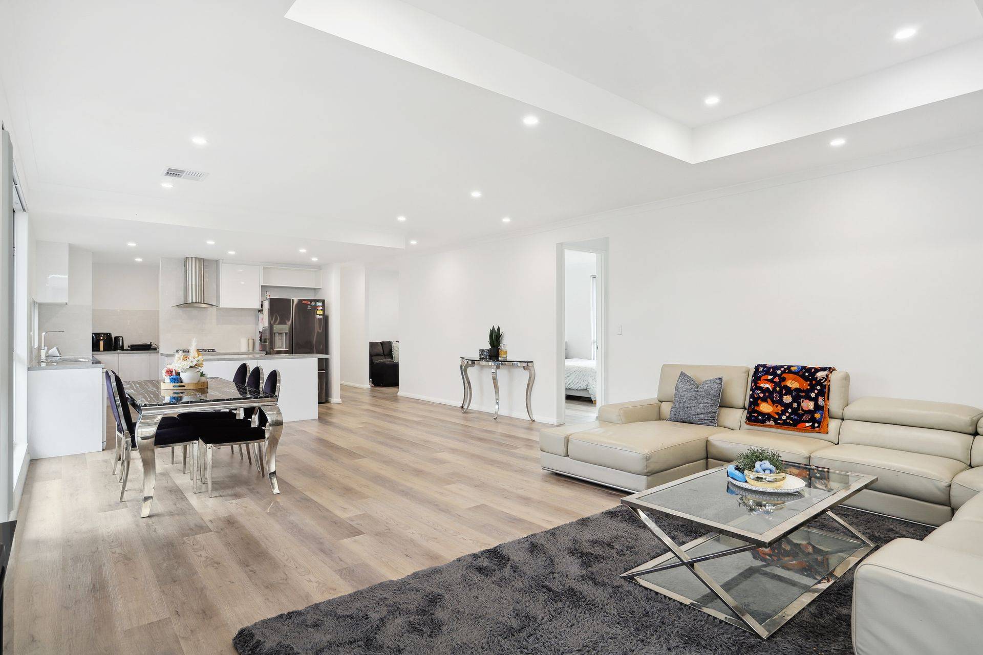 Expansive Floor Plan and Grand Doors: enjoy a very large open-plan layout that seamlessly connects the living, dining, and kitchen areas. There's room for everyone to relax, celebrate and thrive in this generously designed home. The main living zone even features an elegant coffered ceiling detail, adding a touch of luxury to your everyday moments. Interior doors are notably tall—around 2400 mm—reinforcing the sense of space and grandeur throughout.