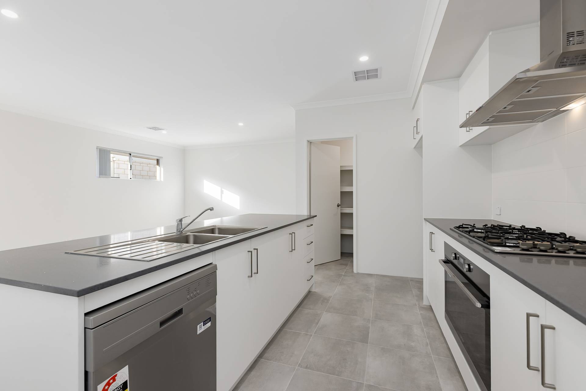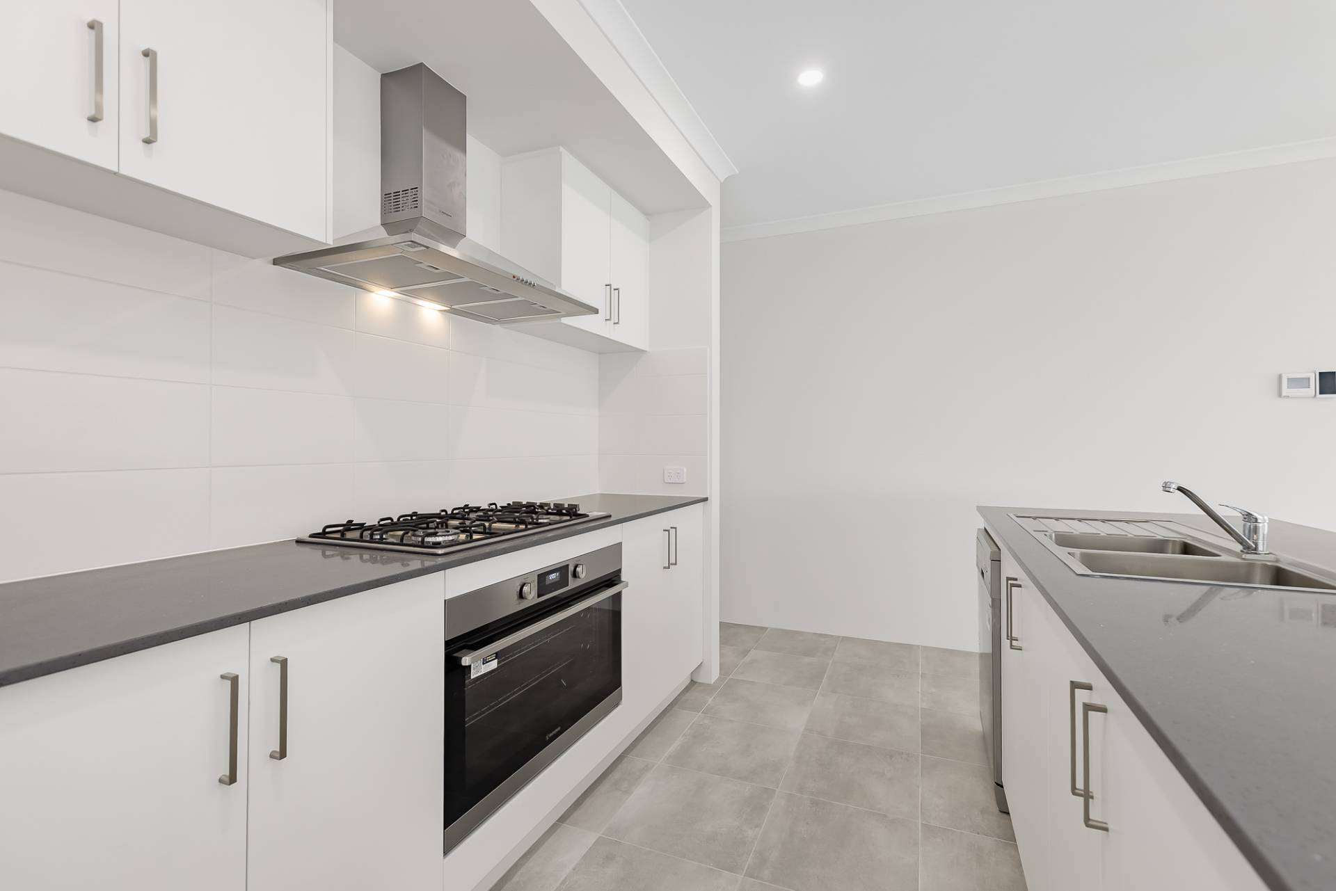 • Modern kitchen featuring gas cooktop and oven, stone benchtops, dishwasher and sit-up breakfast bar.