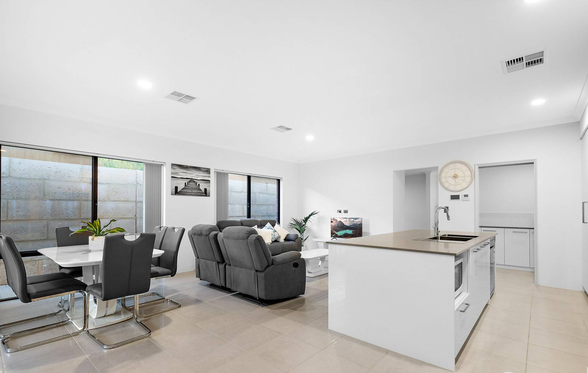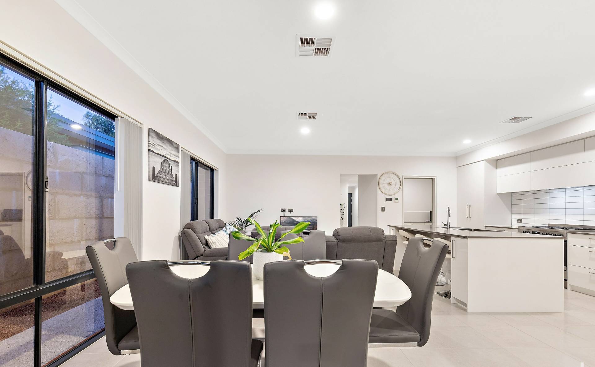 Welcome to 4 Trinity Way, Wellard — on a quiet no through road, this stunning family home in the sought-after Wedge Estate, combines thoughtful design, top-quality craftsmanship, and modern comfort. Built in 2023 by Home Group WA, this immaculate residence offers all the luxury finishes you seek and is designed for effortless family living.