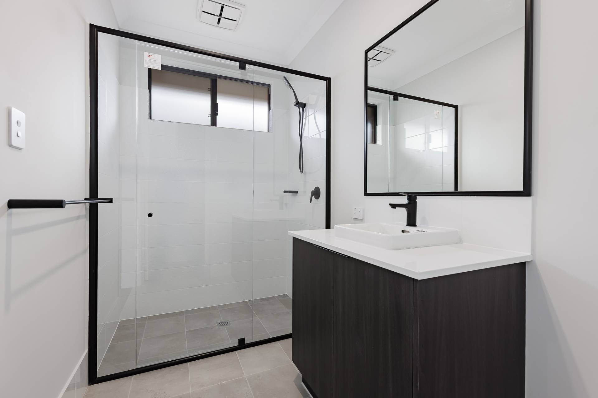 - Two Stylish Bathrooms – Ensuite with shower, vanity, and toilet; main bathroom with a separate shower and bath.