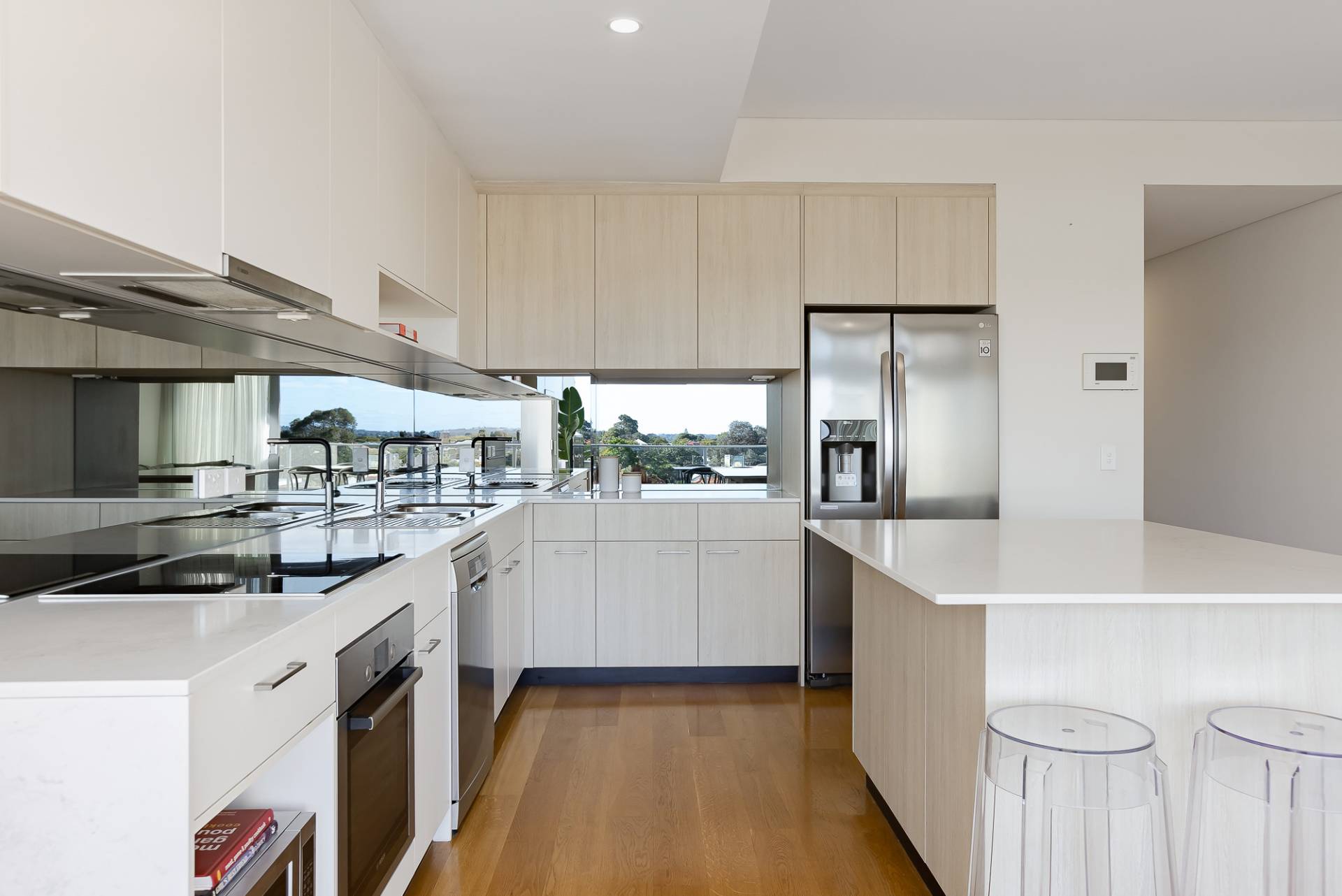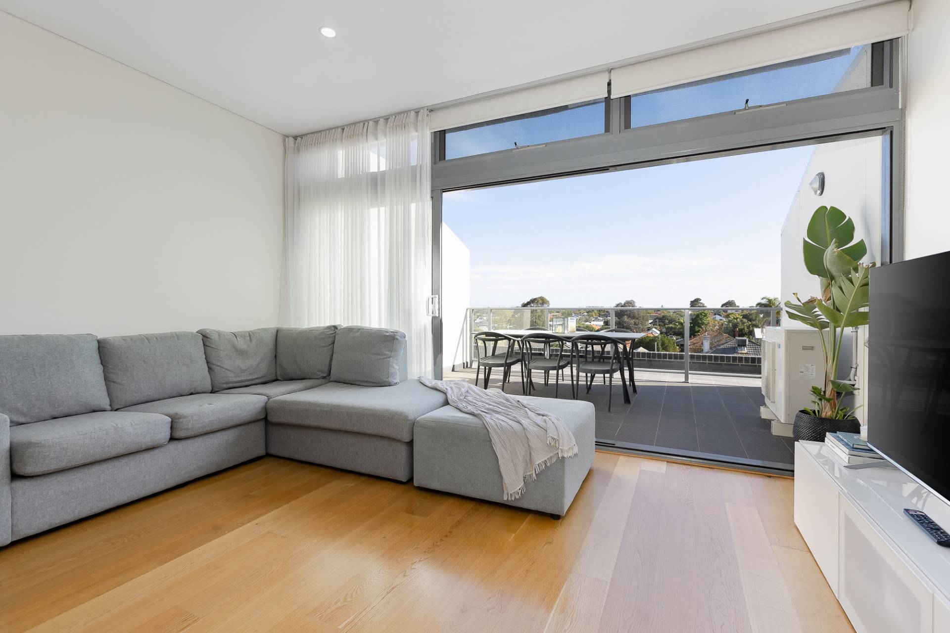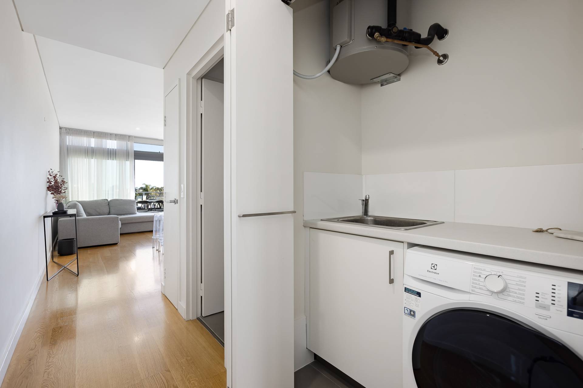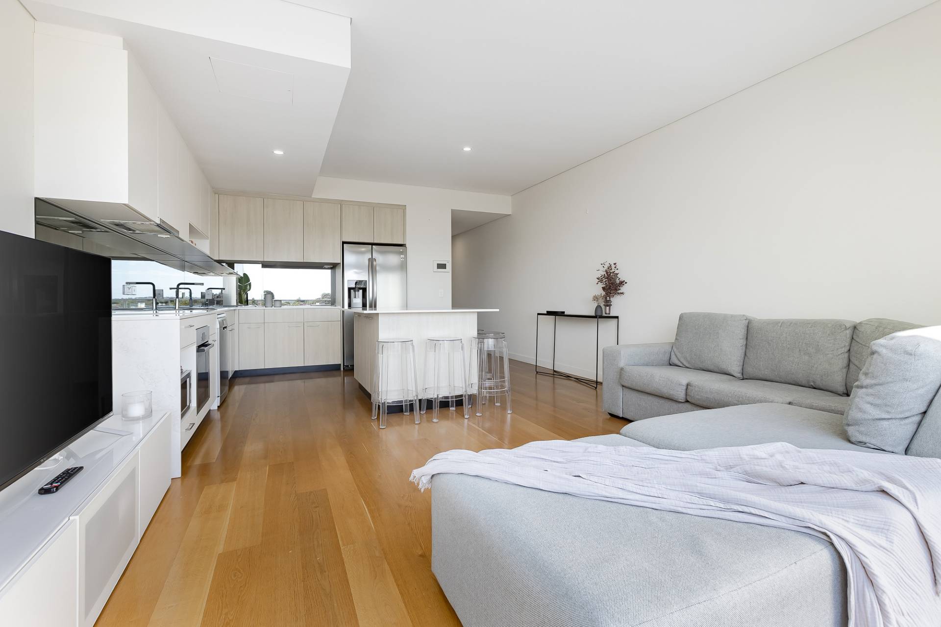 Inside, the open-plan living space is bathed in natural light, seamlessly flowing out to a generous terrace with leafy treetop views, ideal for relaxed entertaining or enjoying Perth’s endless summer evenings. The gourmet kitchen features sleek stone benchtops, ample storage, quality stainless steel appliances, a breakfast bar, and modern finishes that cater to everyday convenience and effortless entertaining. A spacious bedroom, modern bathroom, and well-considered inclusions such as timber flooring, full-height windows, and quality window treatments create a cohesive and welcoming environment.
