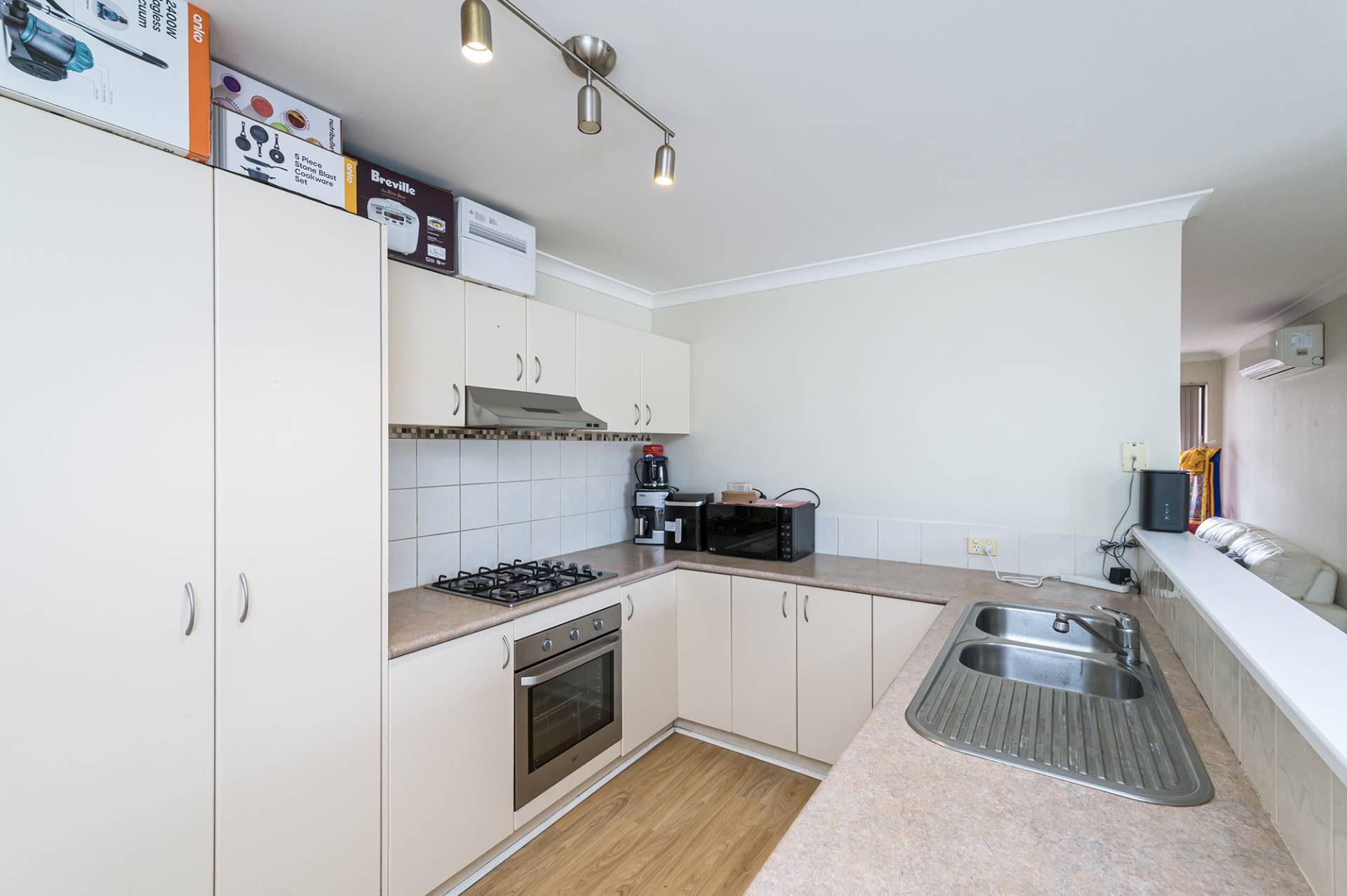 The kitchen forms the heart of the home, offering stainless steel appliances and generous bench space, and flows seamlessly into the open-plan living and dining area—complete with split system air-conditioning for year-round comfort and an ideal setting for both relaxed living and entertaining.