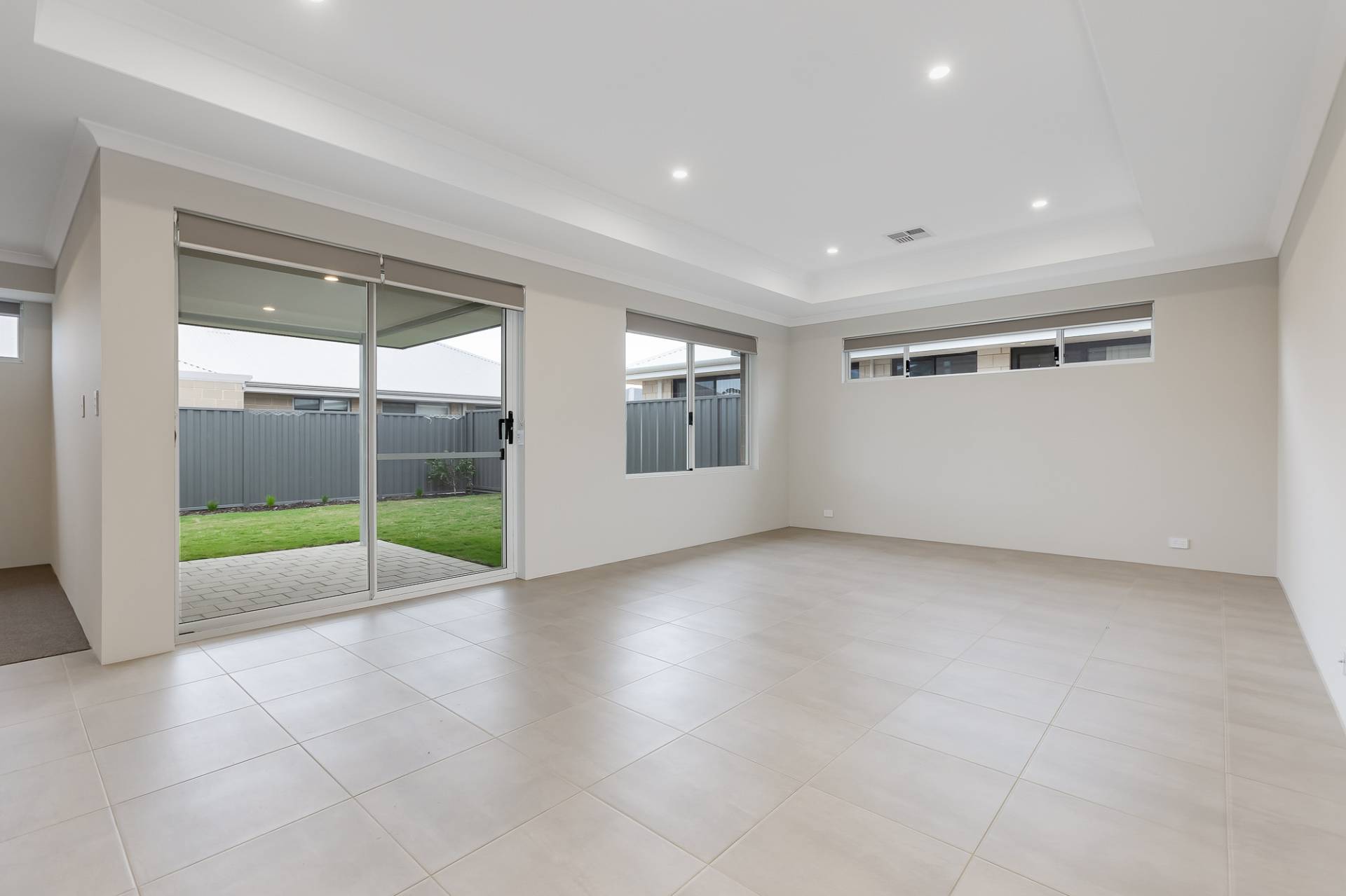 An open plan living and dining area flows seamlessly to the paved alfresco, creating a perfect space for indoor-outdoor entertaining.