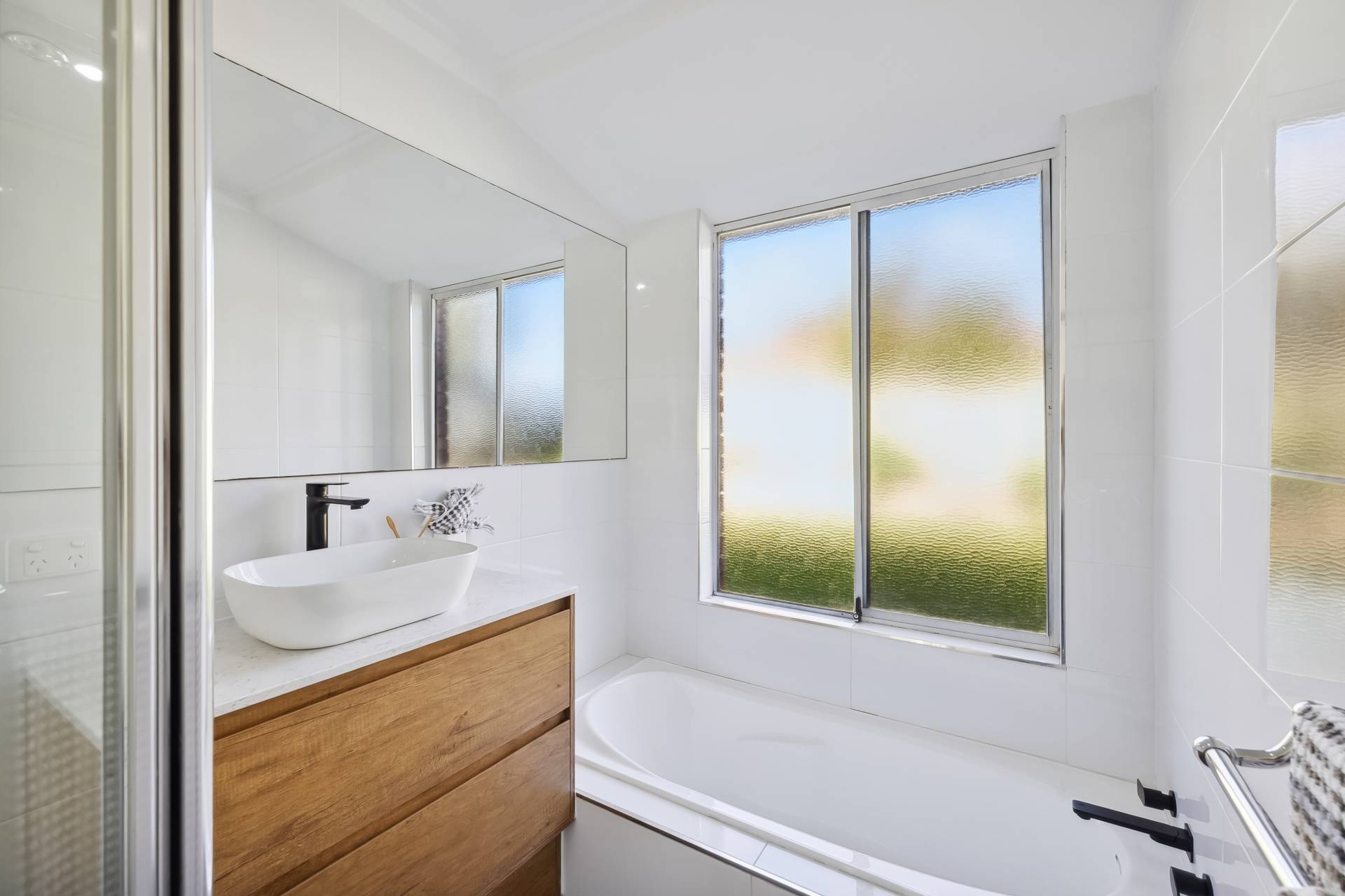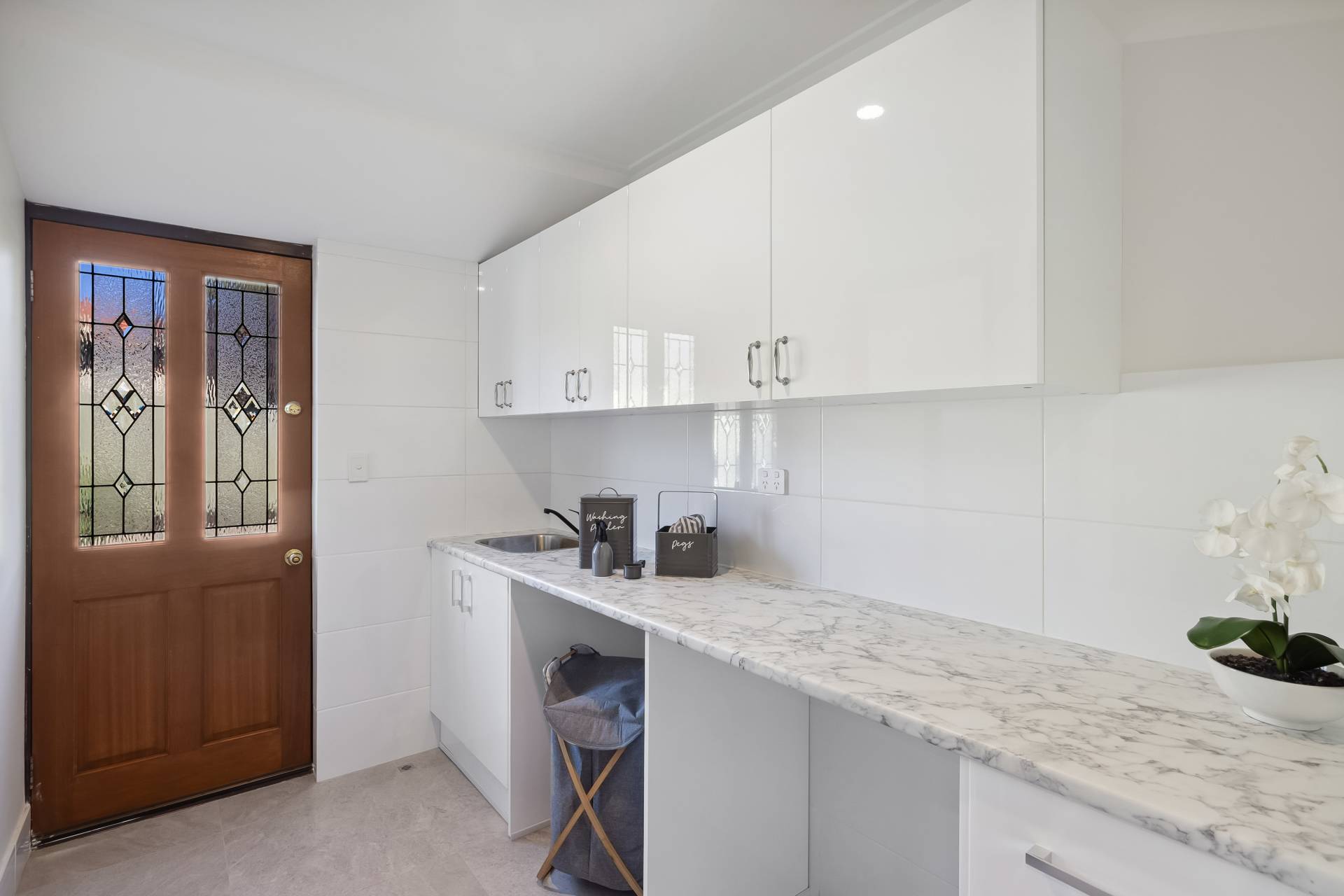 The main bathroom has been stylishly updated and offers a bathtub and a separate WC. The spacious laundry has also been renovated with ample cabinetry and a charming leadlight door that opens to the backyard.