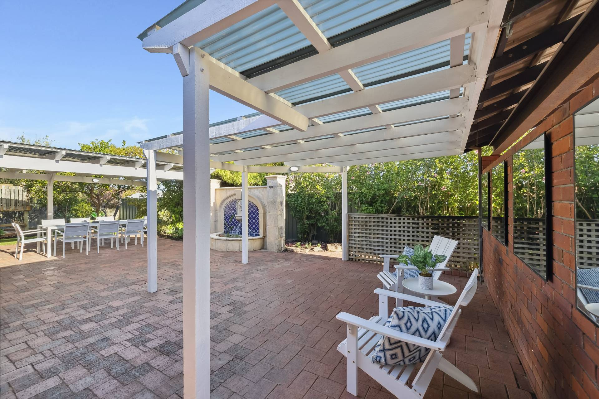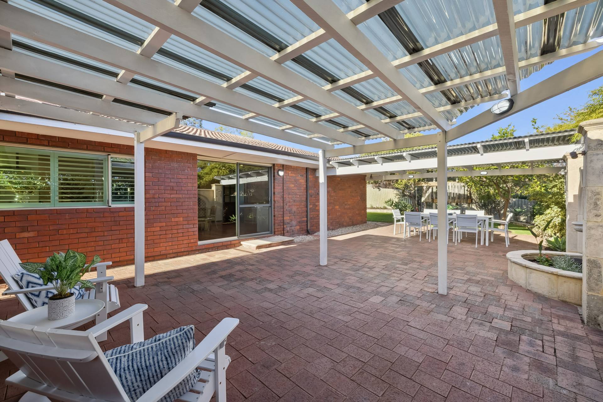Outdoors, enjoy a large reticulated rear yard with lush new lawn and an expansive pergola perfect for entertaining. A garden shed provides extra storage for your convenience. A double carport and plenty of additional driveway space complete the package.