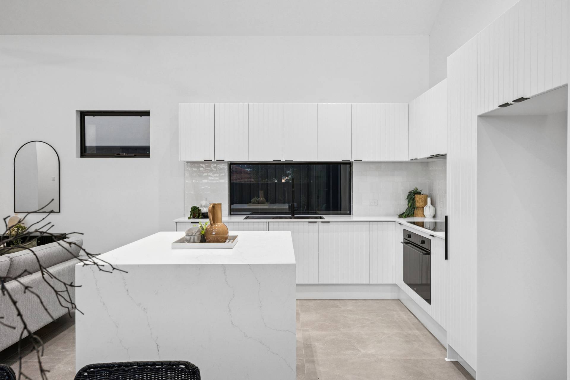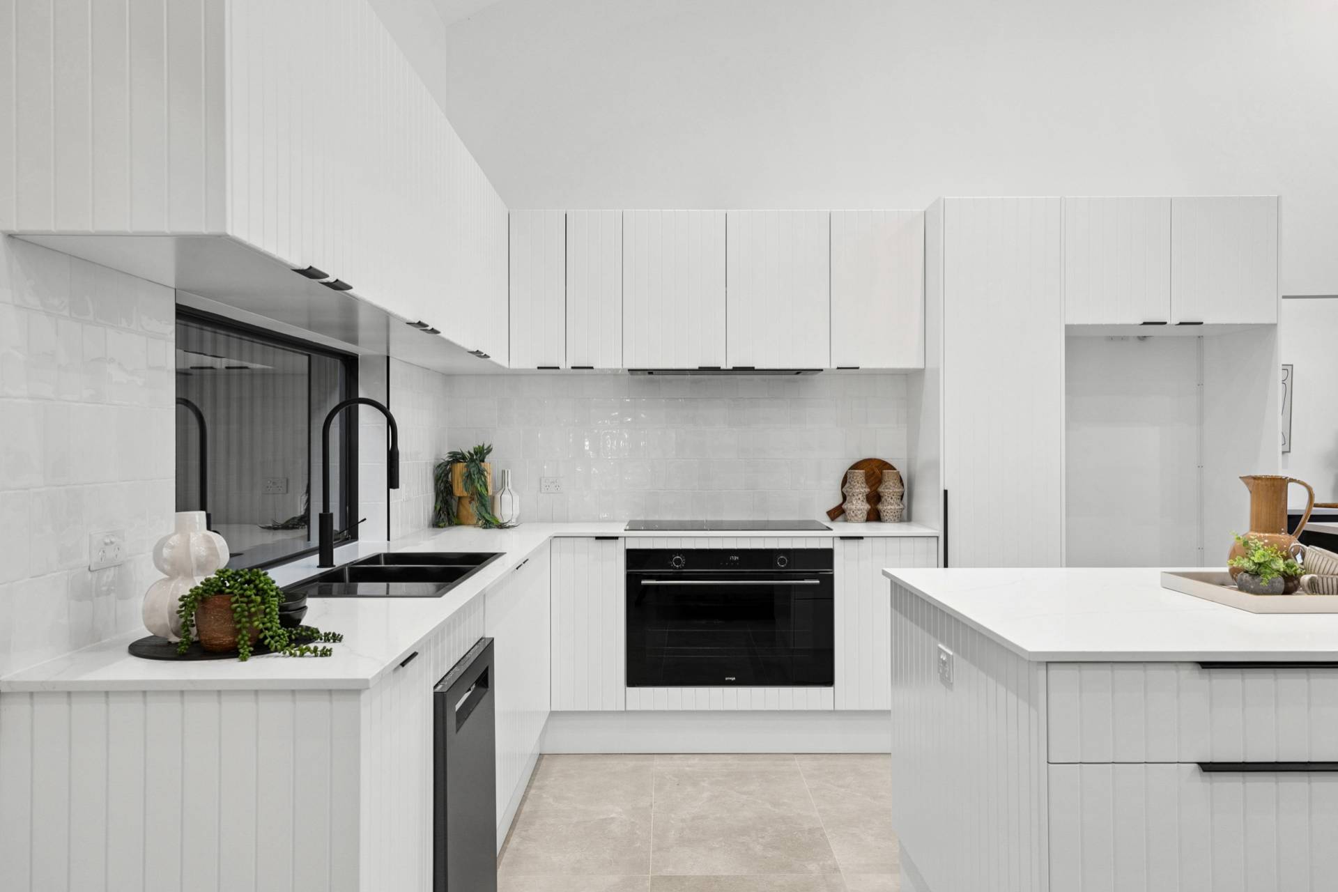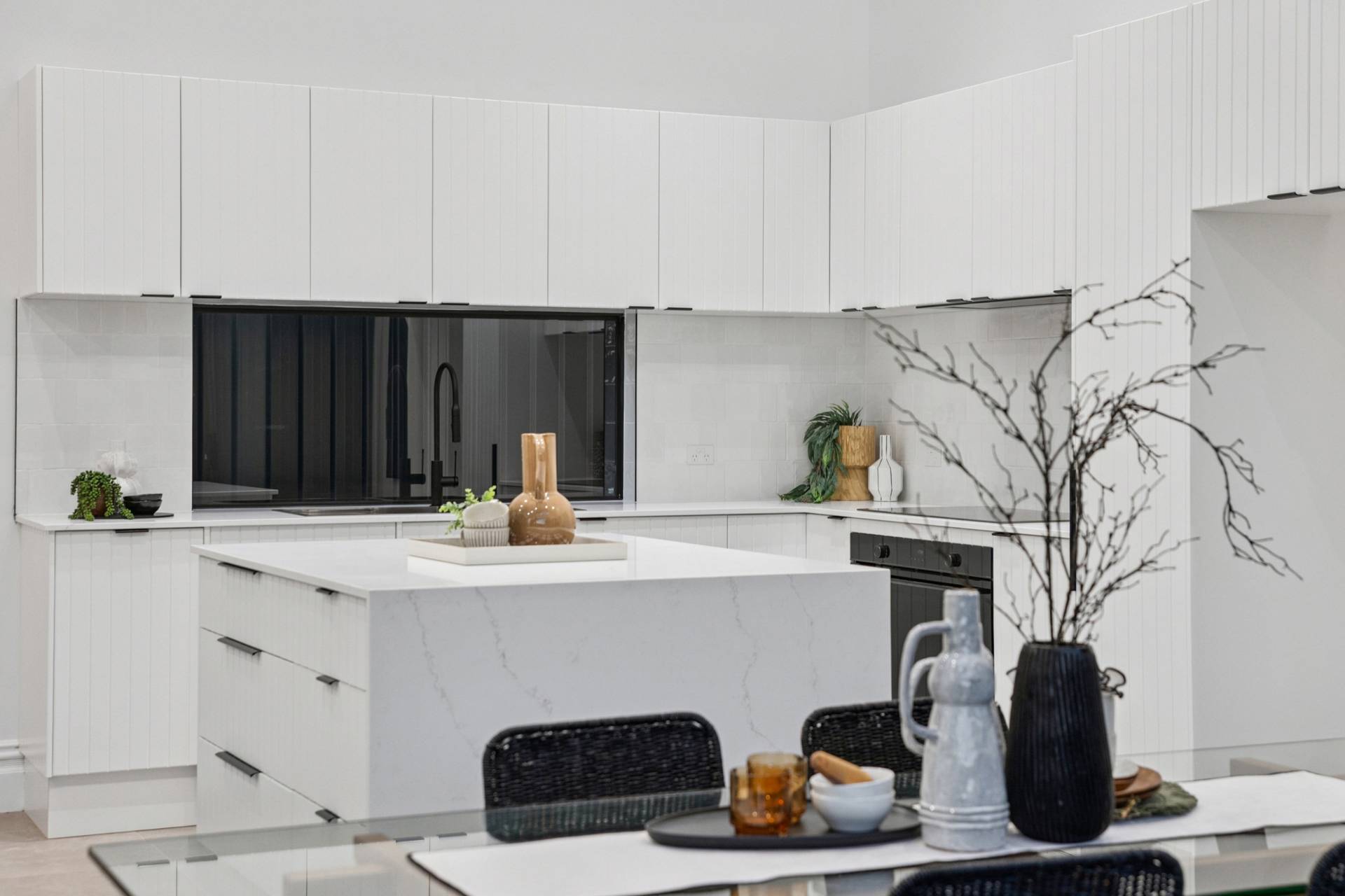 • Chefs' kitchen with top-tier appliances, sleek stone benchtops, an induction cooktop, carbon filter rangehood, Bosch dishwasher and fridge plumbing