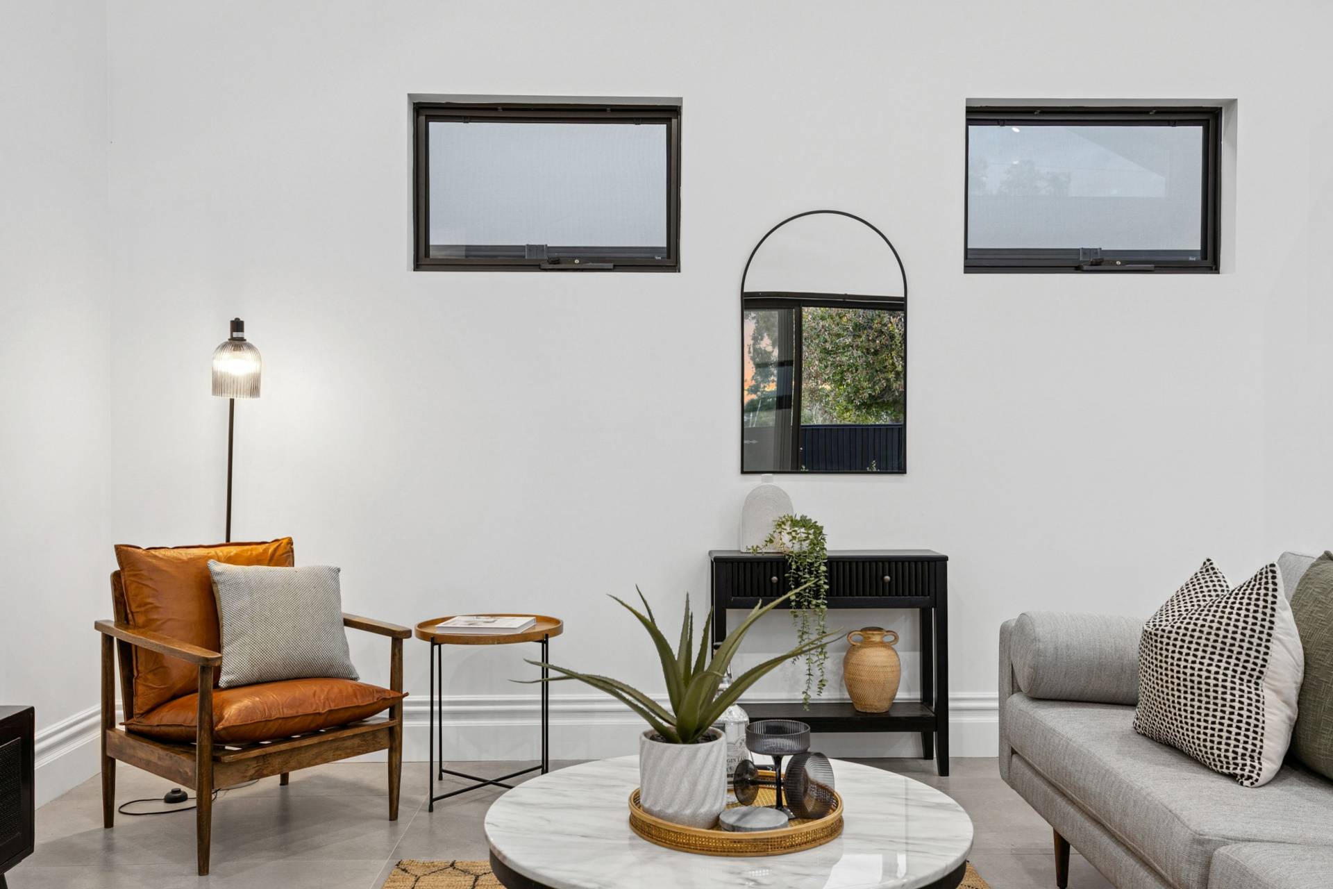 Tucked away at the rear of the property, the upper-level studio is a private and versatile retreat that offers endless potential. Carefully crafted to reflect the charm of the original home, it showcases timeless features such as high skirting boards, ornate cornices, and traditional door frames that beautifully preserve its classic character with modern style. With its own private entrance via the garage and rear laneway, this self-contained haven includes a light-filled lounge, a spacious bedroom, a sleek kitchenette complete with sink, and a luxurious bathroom finished with elegant Italian tiles. Durable waterproof hybrid flooring with a 6-star energy rating, clever layout, and sweeping city views enhance its appeal. Whether used as a guest suite, teen retreat, home office, or space for extended family, this beautifully finished studio is ideal for flexible, multi-generational living.