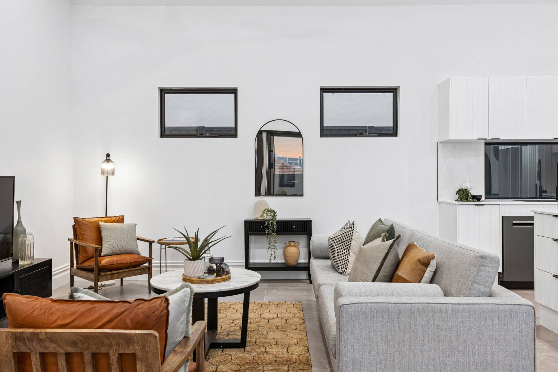 Seamless indoor-outdoor living is effortlessly achieved via expansive glass sliding doors that lead to an alfresco entertaining area. Surrounded by easy-care, reticulated gardens, this inviting space is perfect for year-round gatherings, relaxed family weekends, or tranquil moments.