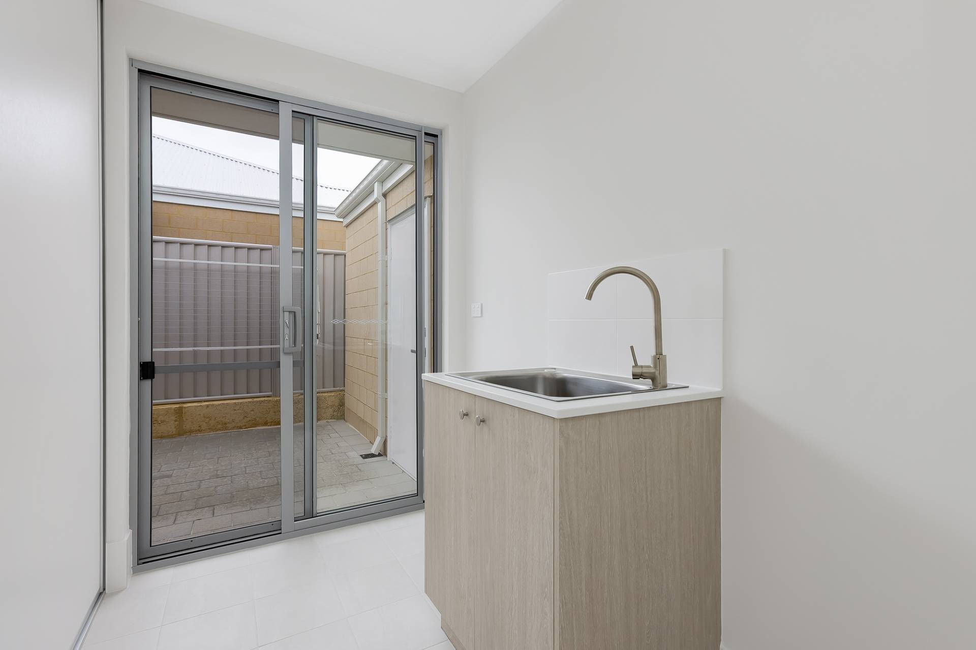 Low-maintenance backyard with fully reticulated lawns