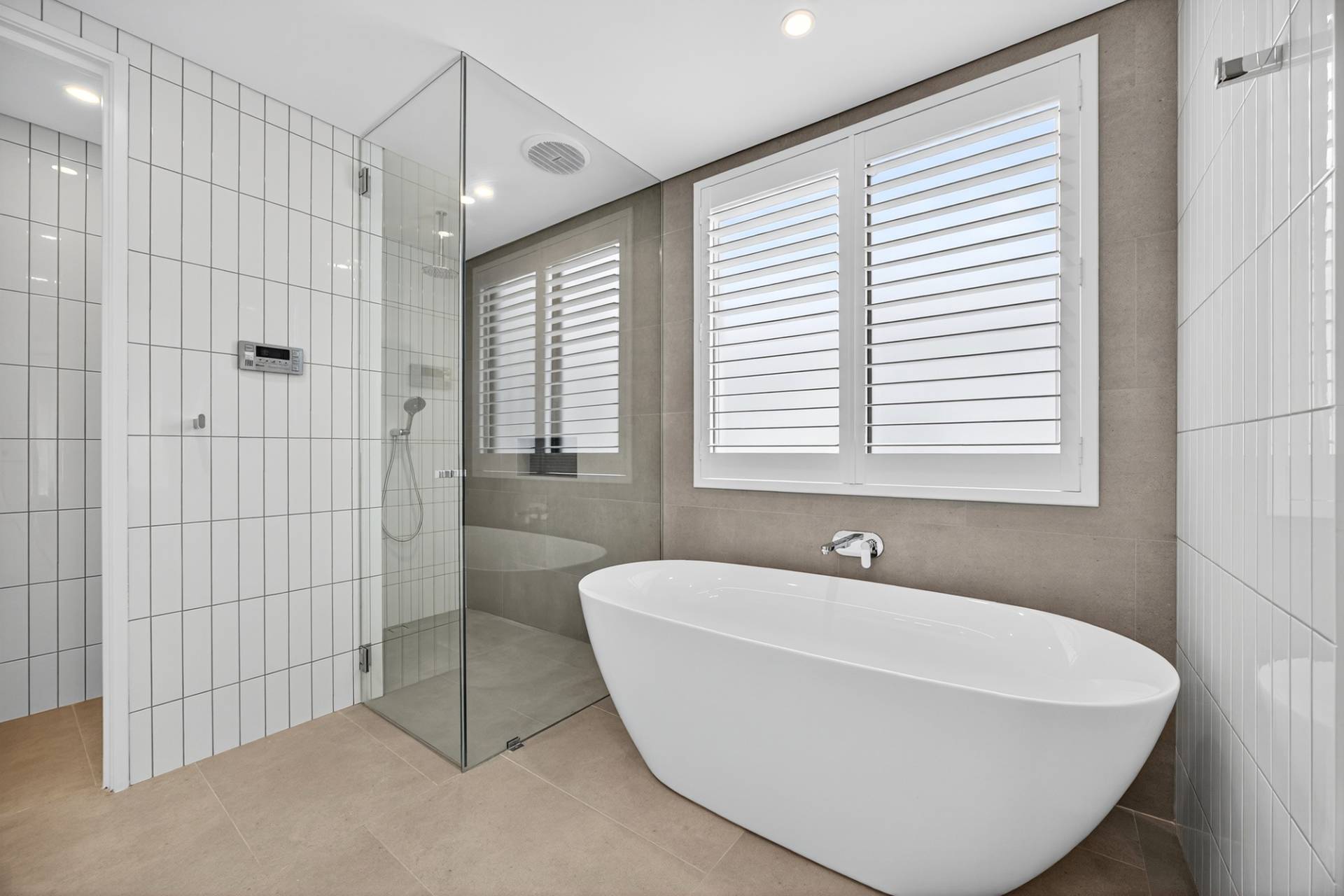 • Master suite with walk in robe, bathtub, double basins and heated floors