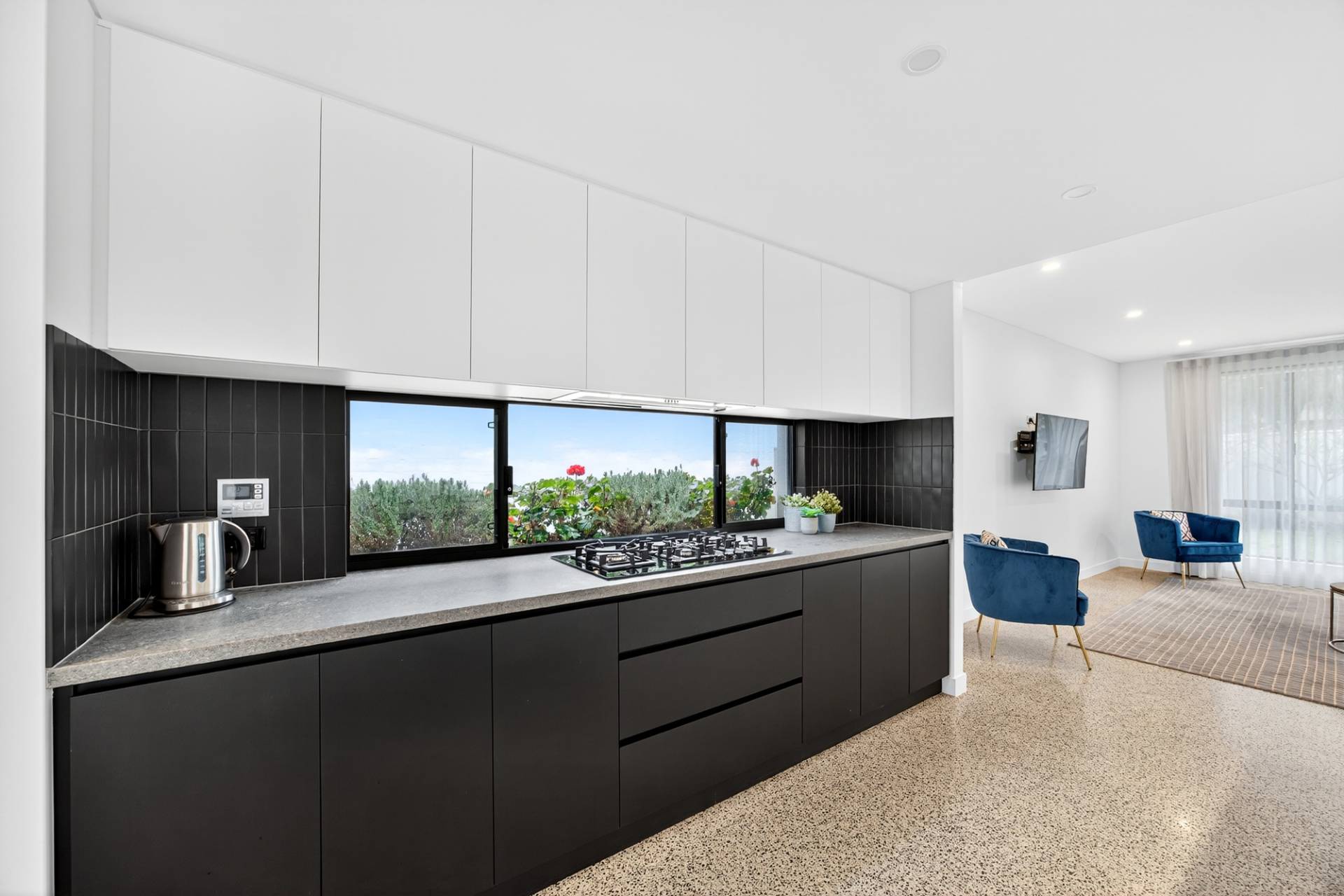 • Gourmet kitchen with ample storage and bench space, with gas cooktop
