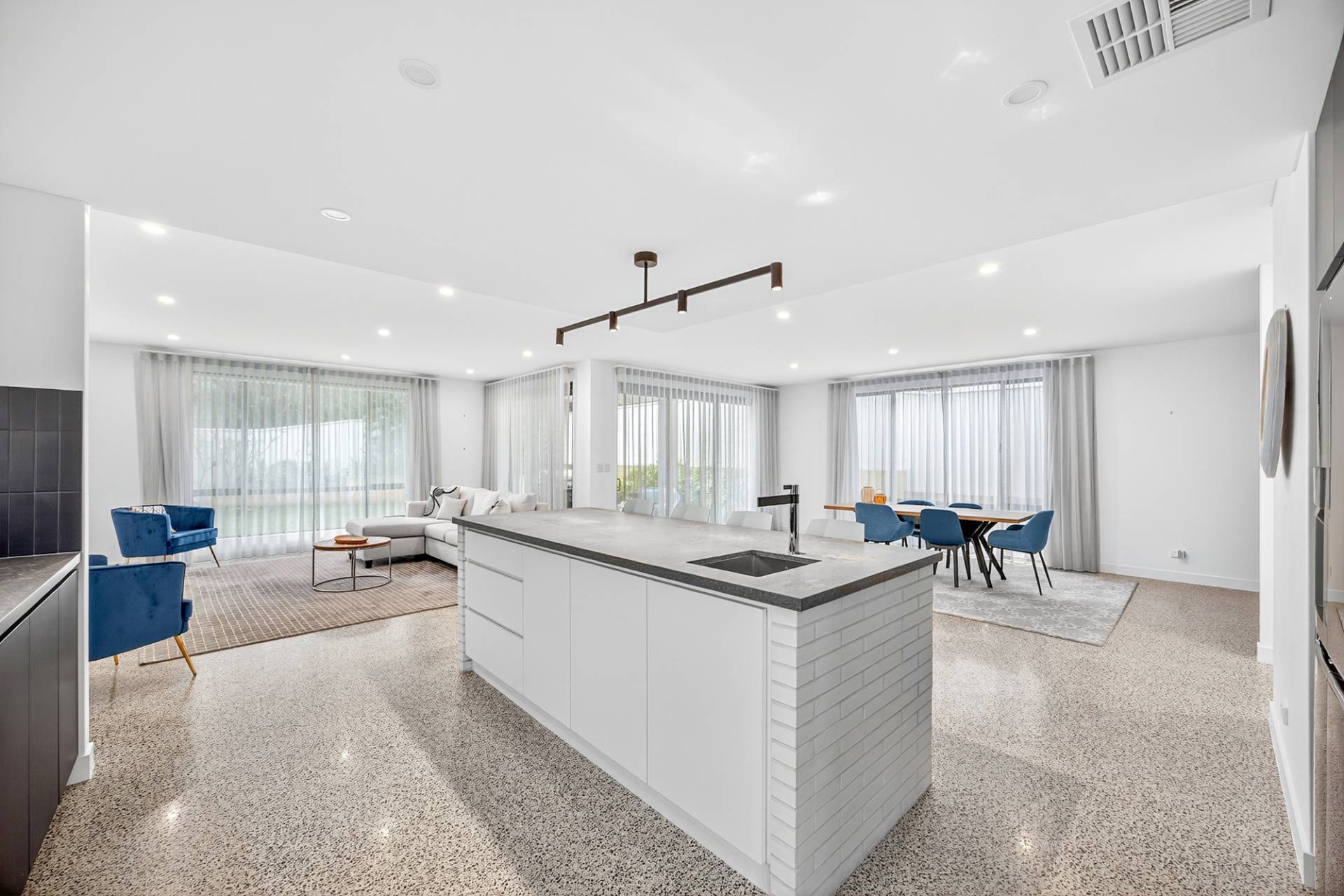 Introducing 28 Dilkara Way City Beach! This fully furnished coastal residence boasts a chic design with the perfect blend of beachside luxury and convenient lifestyle. Featuring four well sized bedrooms and three bathrooms, with a guest suite or a second master bedroom on the ground floor enabling you to live entirely on one level! The ground floor features a big open plan living area, with kitchen, scullery, meals and lounge area opening onto the north facing sun drenched rear gardens with gate access, through to only one of three green ribbons of parkland in the suburb that meander from the eastern end of the suburb all the way down to the beachfront in the highly sought-after Parks District.