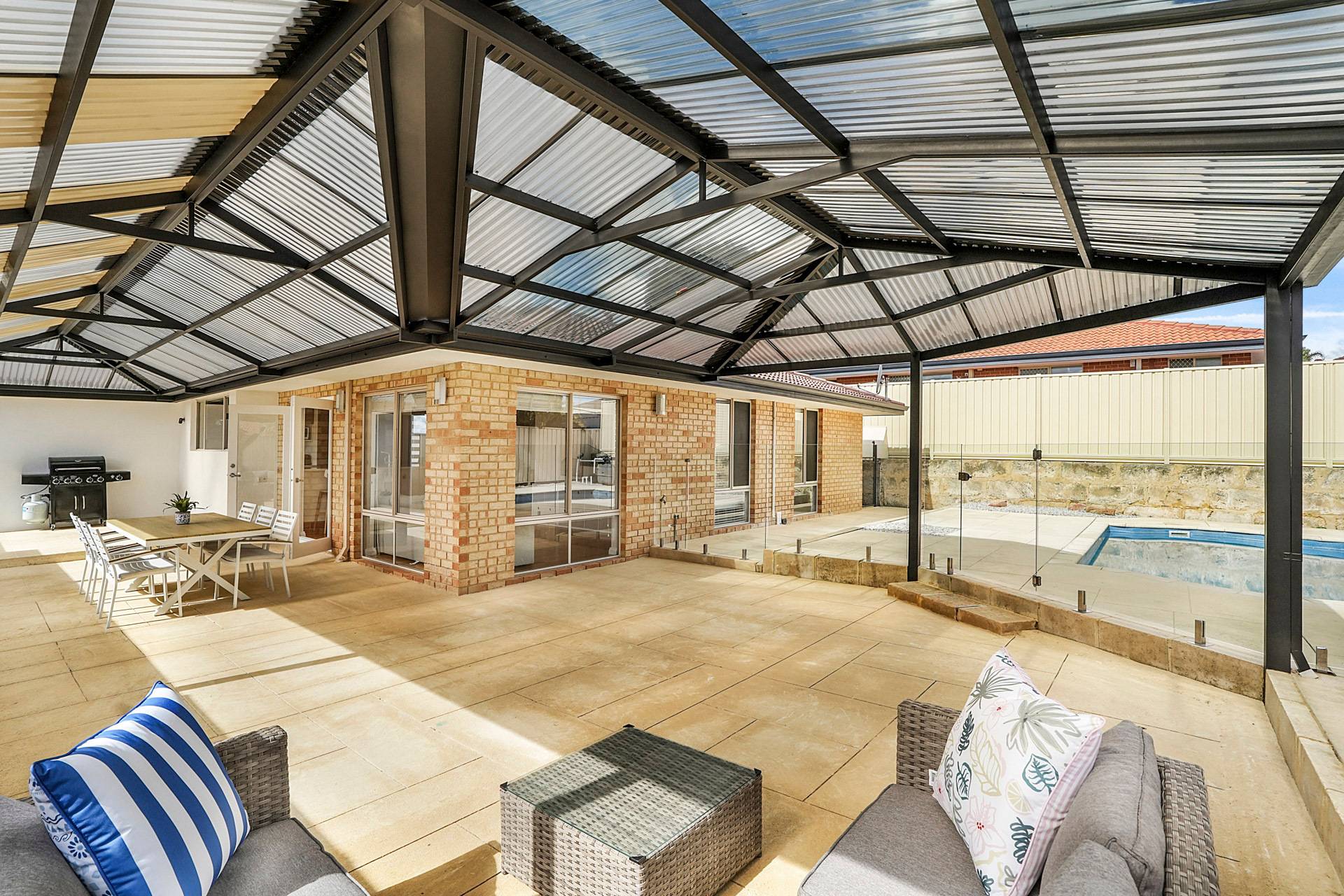 - In the backyard you will find limestone pavers under a sprawling undercover alfresco that wraps around the majority of the backyard, giving you the ability to enjoy it all year round