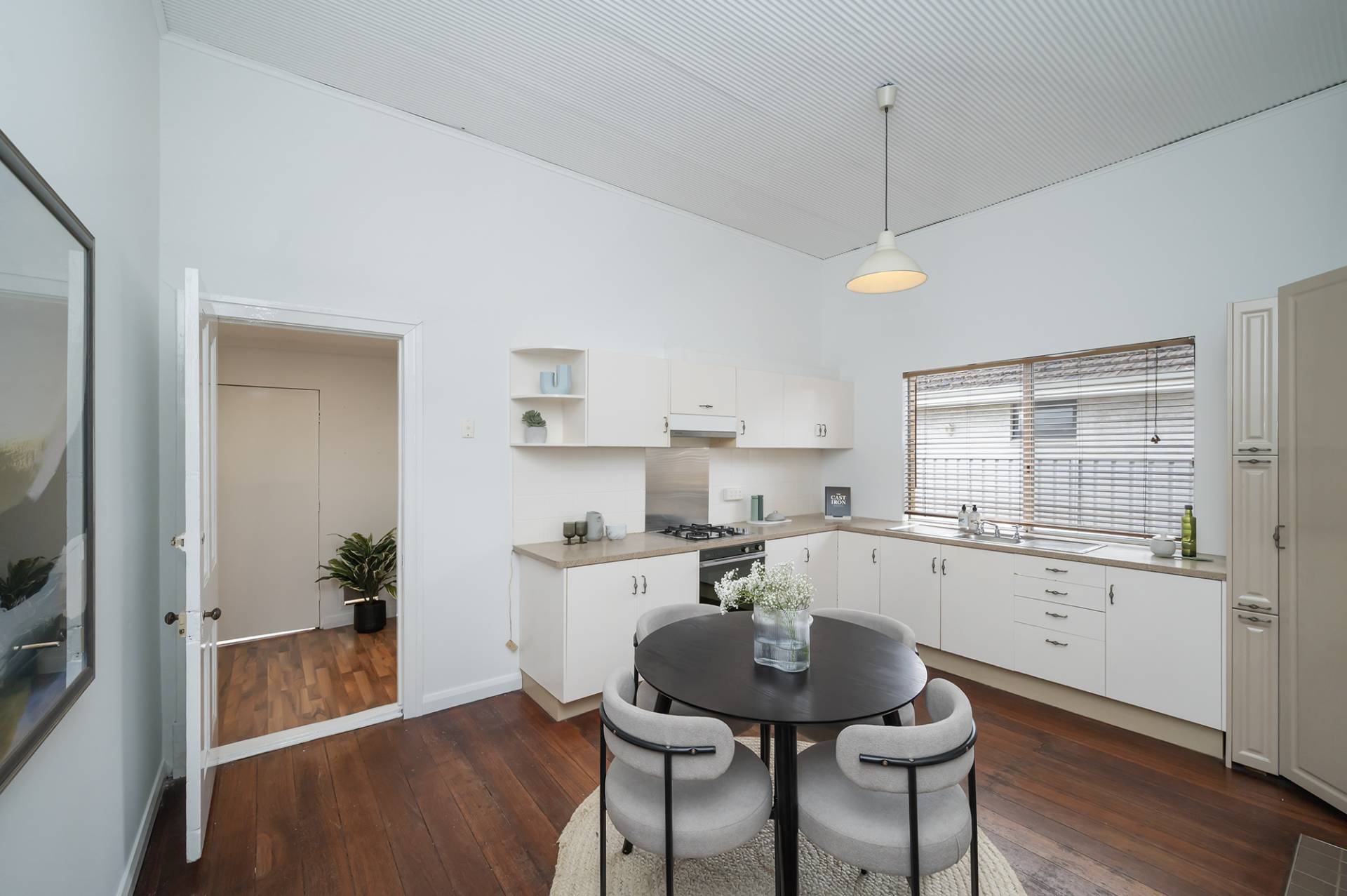 Step inside and you'll immediately appreciate the high ceilings, solid timber floors, and ornate detailing that define the home's 1900s charm. A spacious living area at the front of the home flows into a modernised kitchen and meals space.