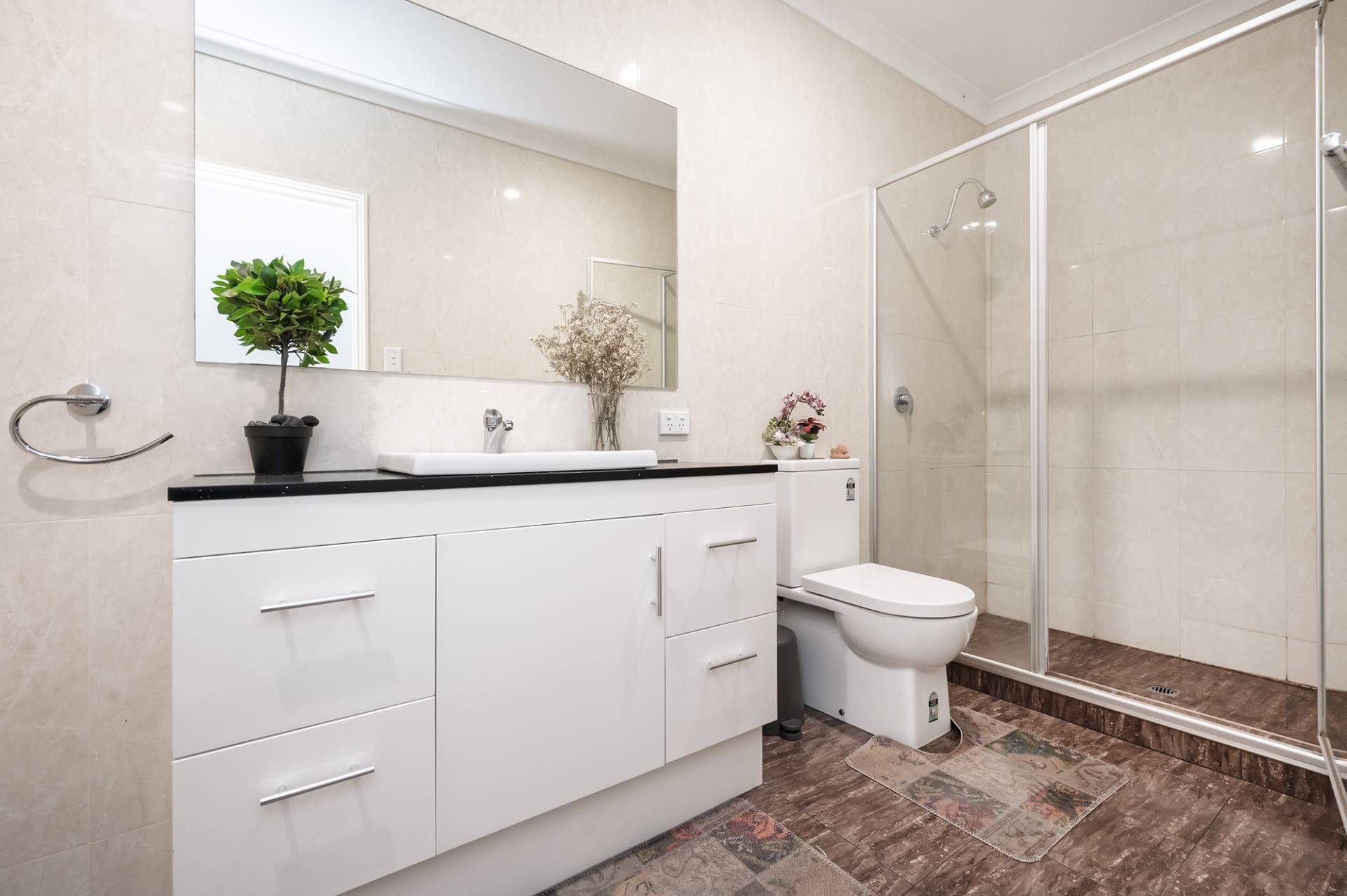 Each of the three spacious bedrooms comes complete with built-in wardrobes, providing ample storage and comfort. The master suite is a standout, with its private ensuite featuring dual vanities—perfect for busy mornings. The second bathroom continues the theme of thoughtful design, with floor-to-ceiling tiles, a bath, and a separate shower catering to both relaxation and functionality.