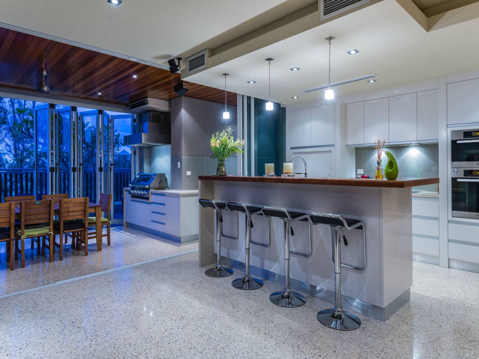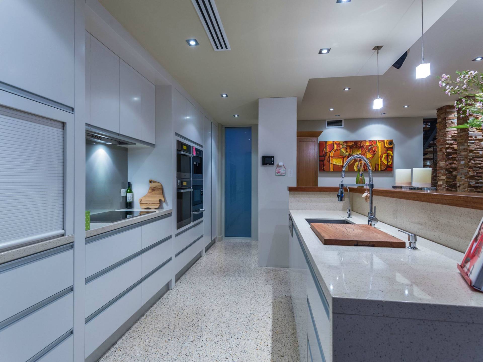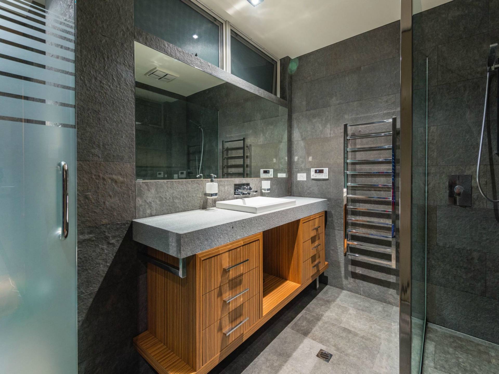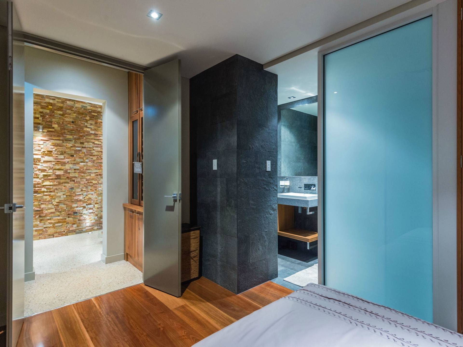 As an appetiser to the refinements that complete this home you'll find the bathrooms are finished in Grigio Neferiti- Exfoliated and Brushed granite tiles. The ensuite is finished in Bisazza glass mosaics and is holder of New Bathroom project of the Year award WA for 2010. This award recognises innovation and functionality.
