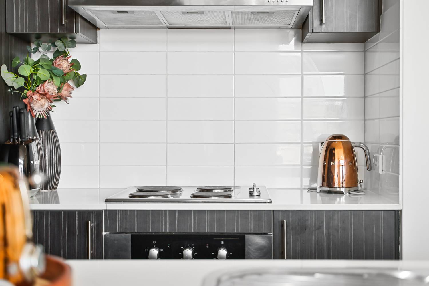 • Contemporary kitchen with ample storage, stainless steel appliances, and dishwasher