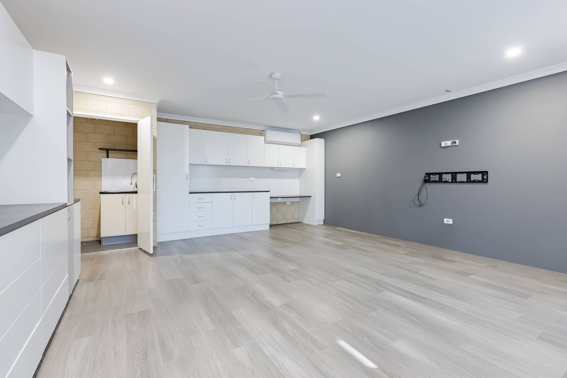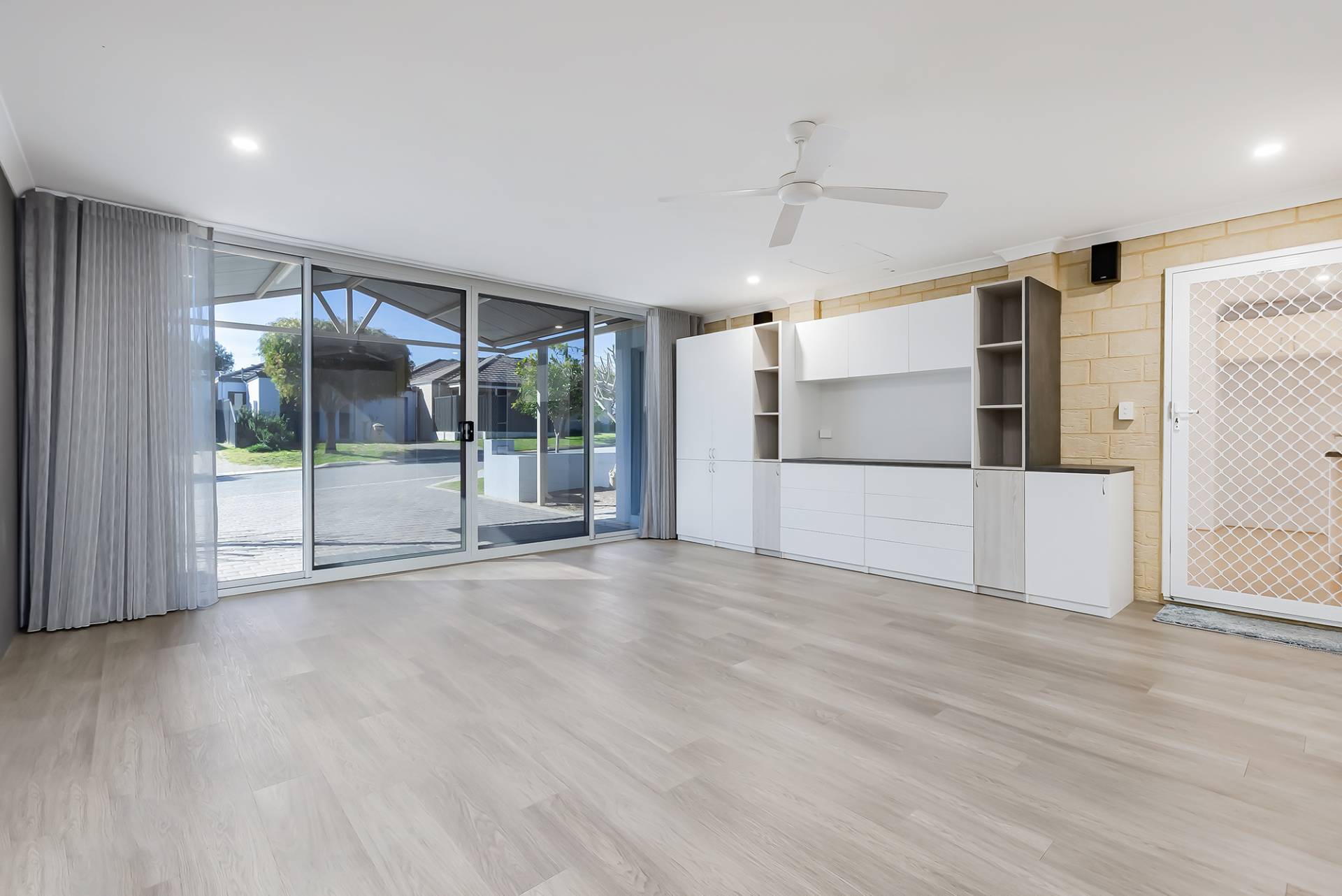 Inside, you’ll find three generous bedrooms, all with built-in robes. The master has its own ensuite, while the family bathroom is sleek and functional. But the real star? The converted theatre room — complete with built-in cabinetry, ceiling fan, and split system air-con — perfect for movie nights, gaming marathons, or just a space to kick back in style.