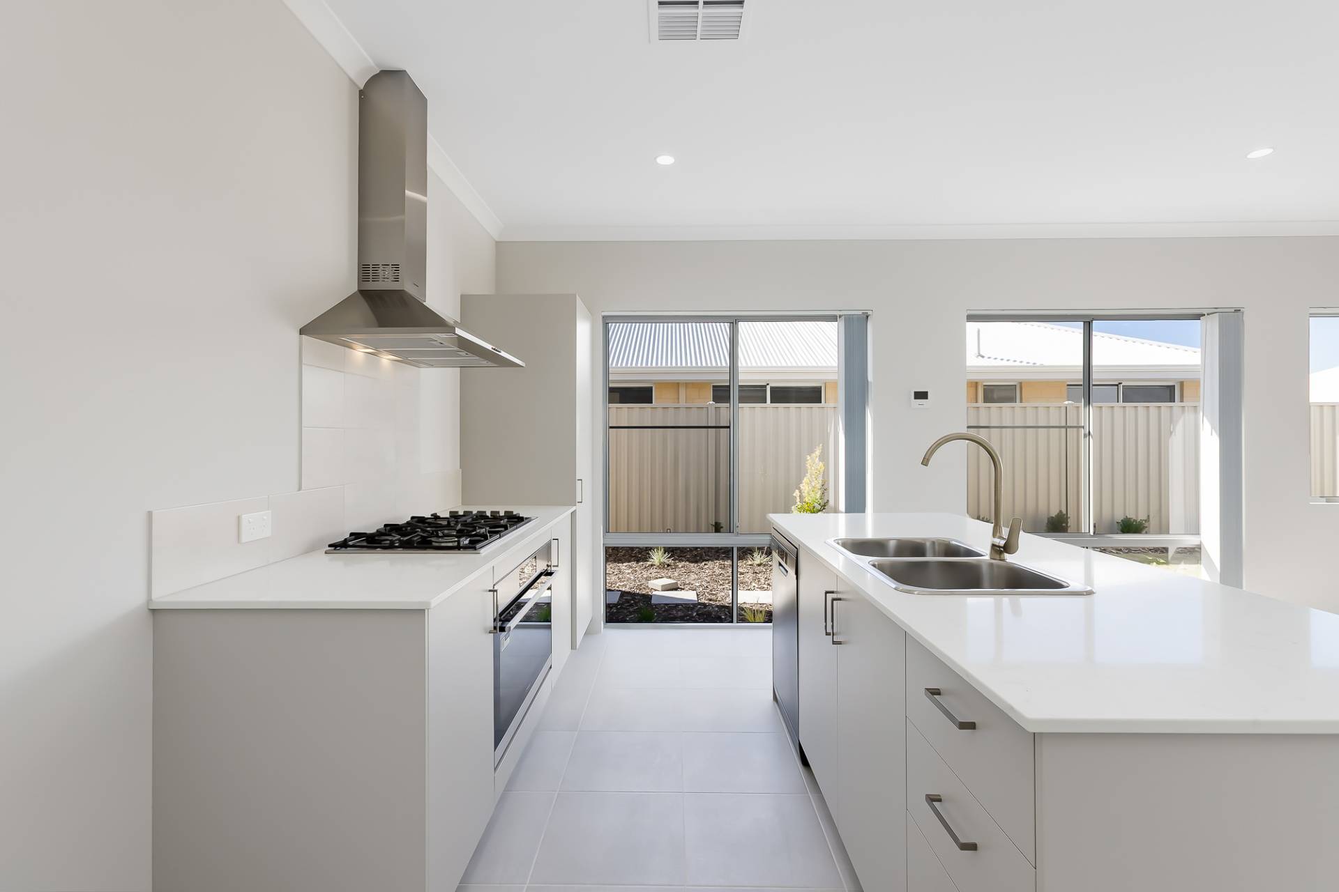 -Modern kitchen with 900mm gas cooktop, oven, dishwasher, dual sinks & breakfast bar