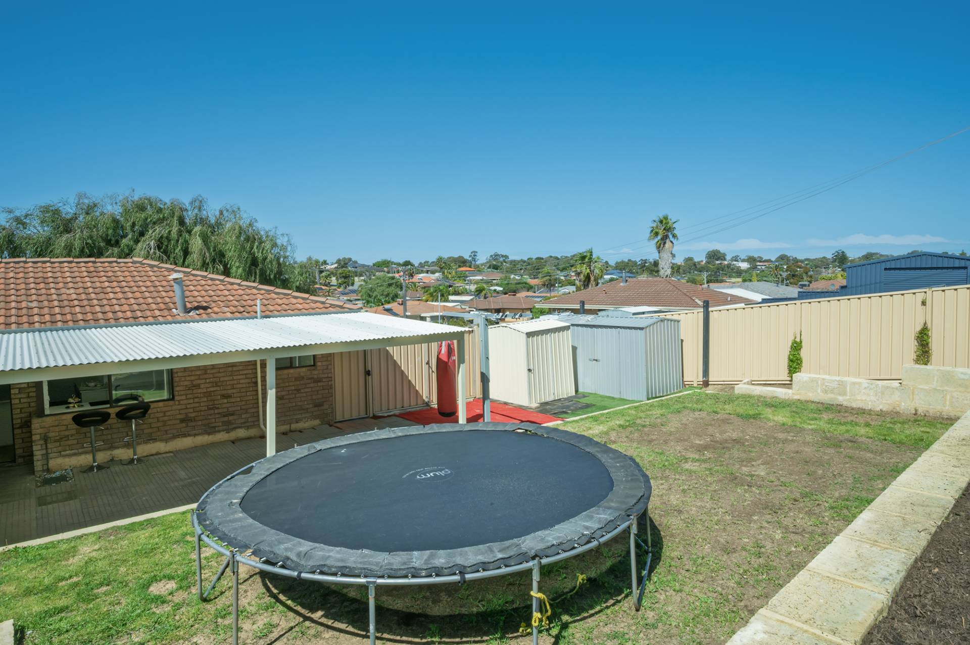 The expansive backyard is a standout feature, offering plenty of space for entertaining, play, and future plans. The raised entertaining area at the back corner of the property has an amazing view out over to the west of Perth, perfect spot to spend with a drink at sunset. With wide open lawns and side access, there's ample flexibility for a pool, workshop, caravan, or even a granny flat—giving buyers the opportunity to adapt the property to suit their lifestyle needs.