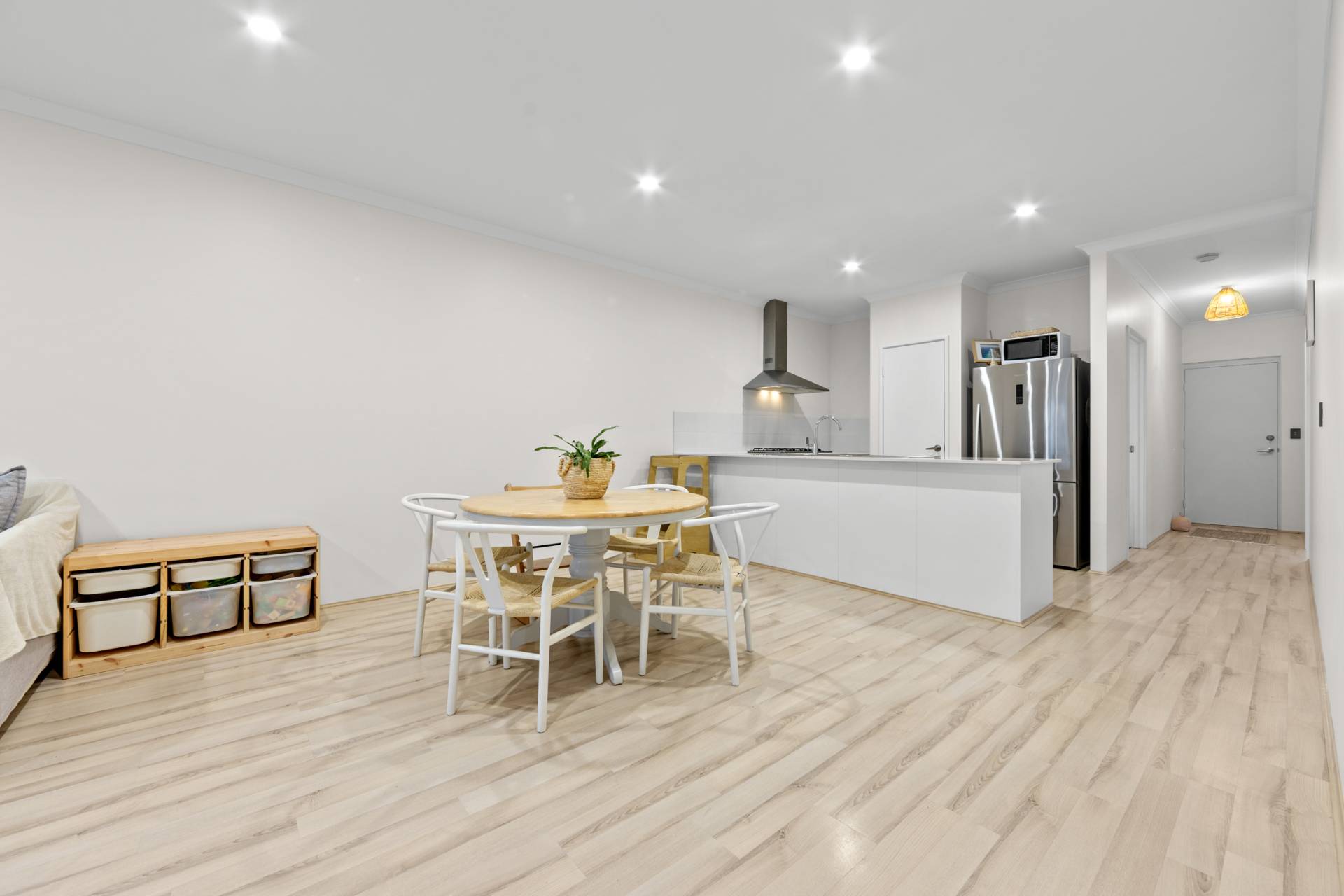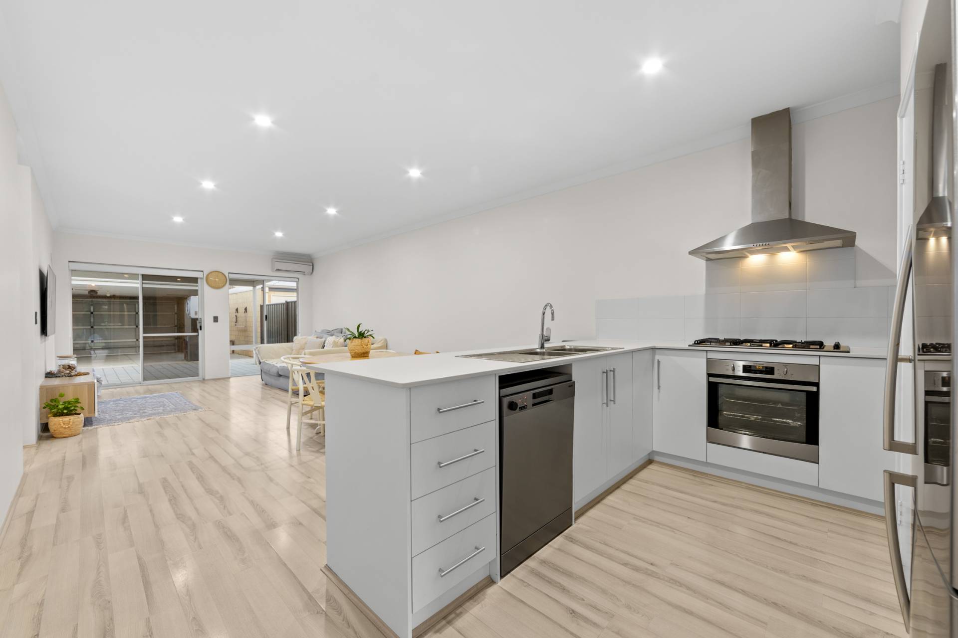 Open plan kitchen, living and dining areas with timber style flooring Well-appointed