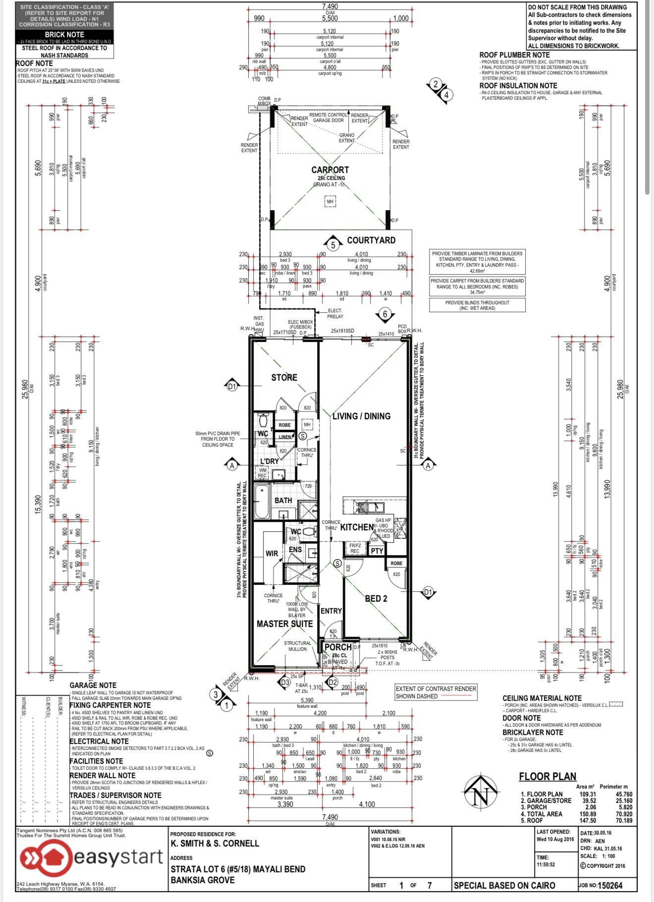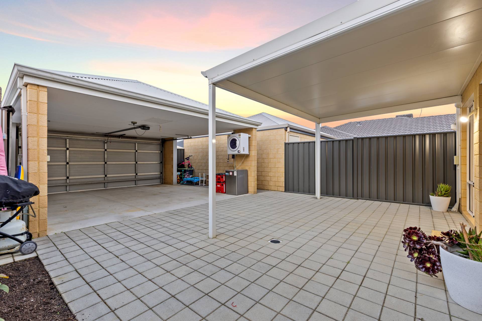 From the living room, slide open your doors and out onto a sunny courtyard, just the right size for a family alfresco area, BBQ's or place to unwind, and easily large enough to accommodate garden furniture and potted plants, or even a trampoline for the kids. All three bedrooms are of a good size, offering the comfort of carpeted flooring and built-in-robes with the main bedroom enjoying some extra space plus walk-in robes and ensuite. A double garage opens from Mayali Bend, offering dual entry to the home with easy access to the patio making trips from the shops a breeze.