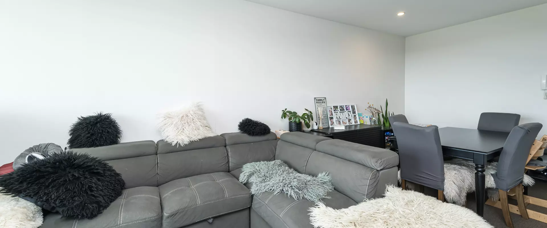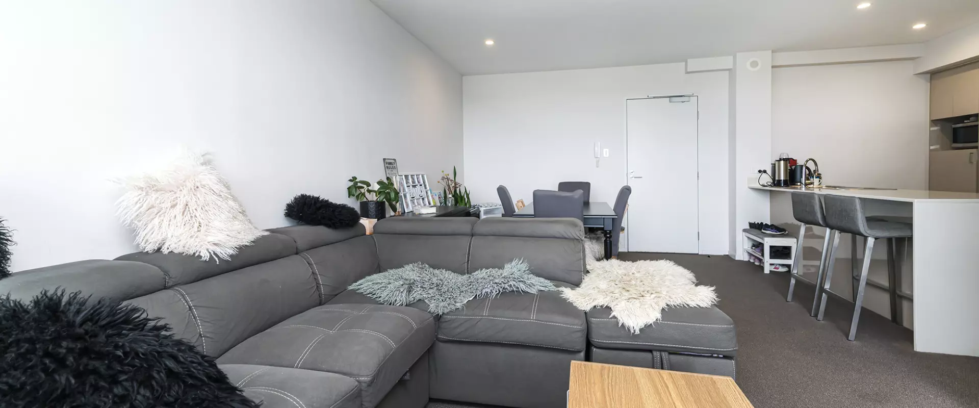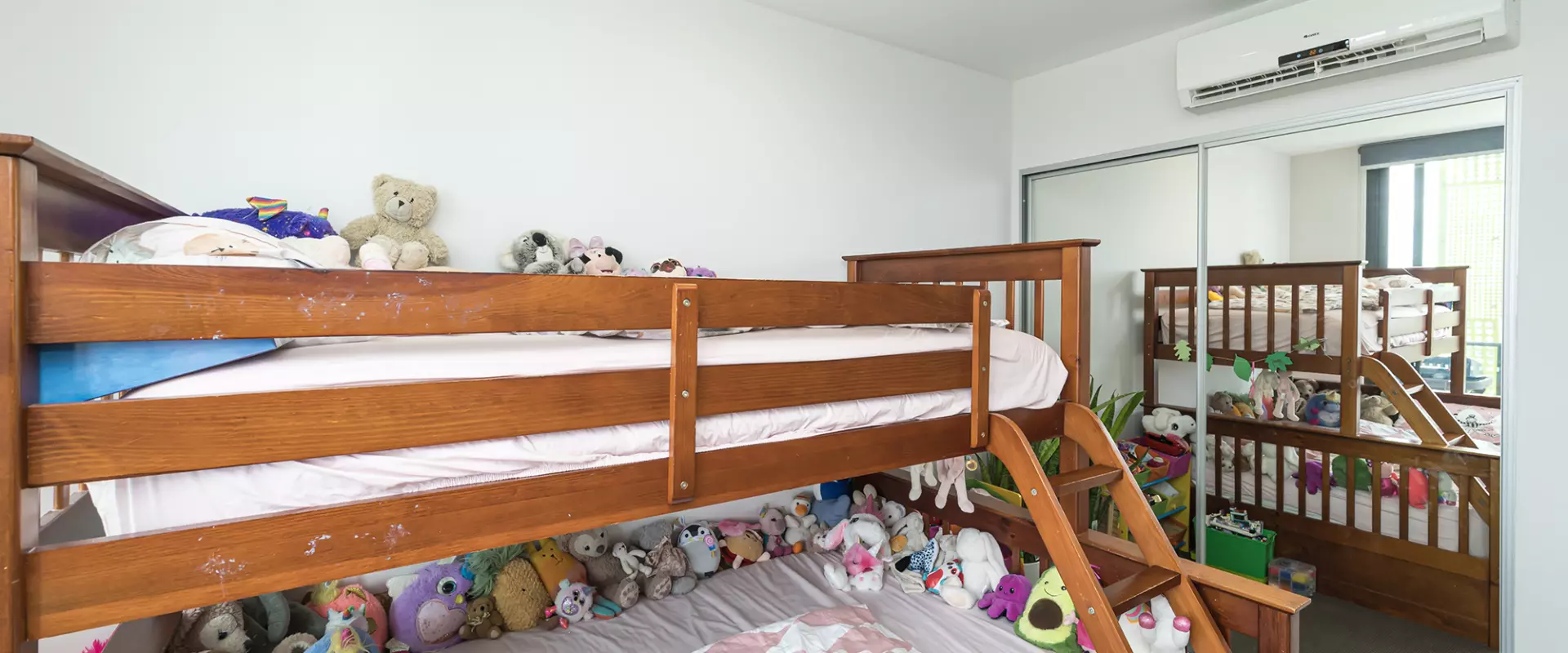 Reverse-cycle air conditioning in the living area and both bedrooms ensures a comfortable environment all year round. In the kitchen, find stainless steel appliances, including a fridge, induction cooktop and under-bench oven, sleek glass splashbacks, and ample storage.