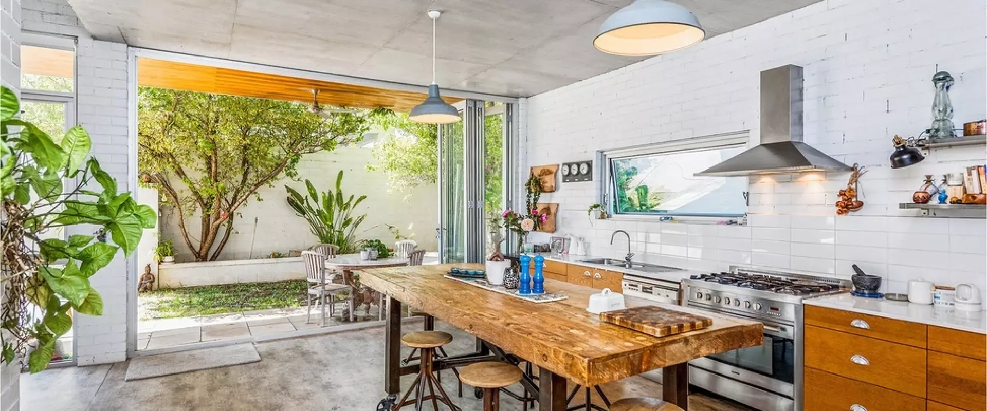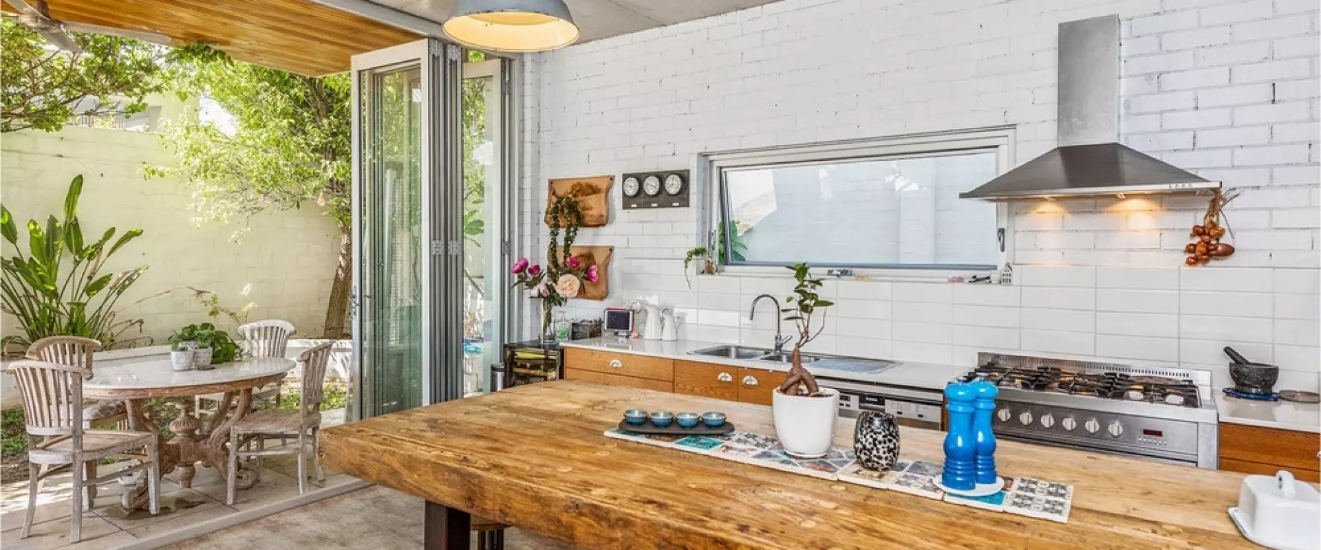 • Concertina doors opening the kitchen to outdoor patio & gardens