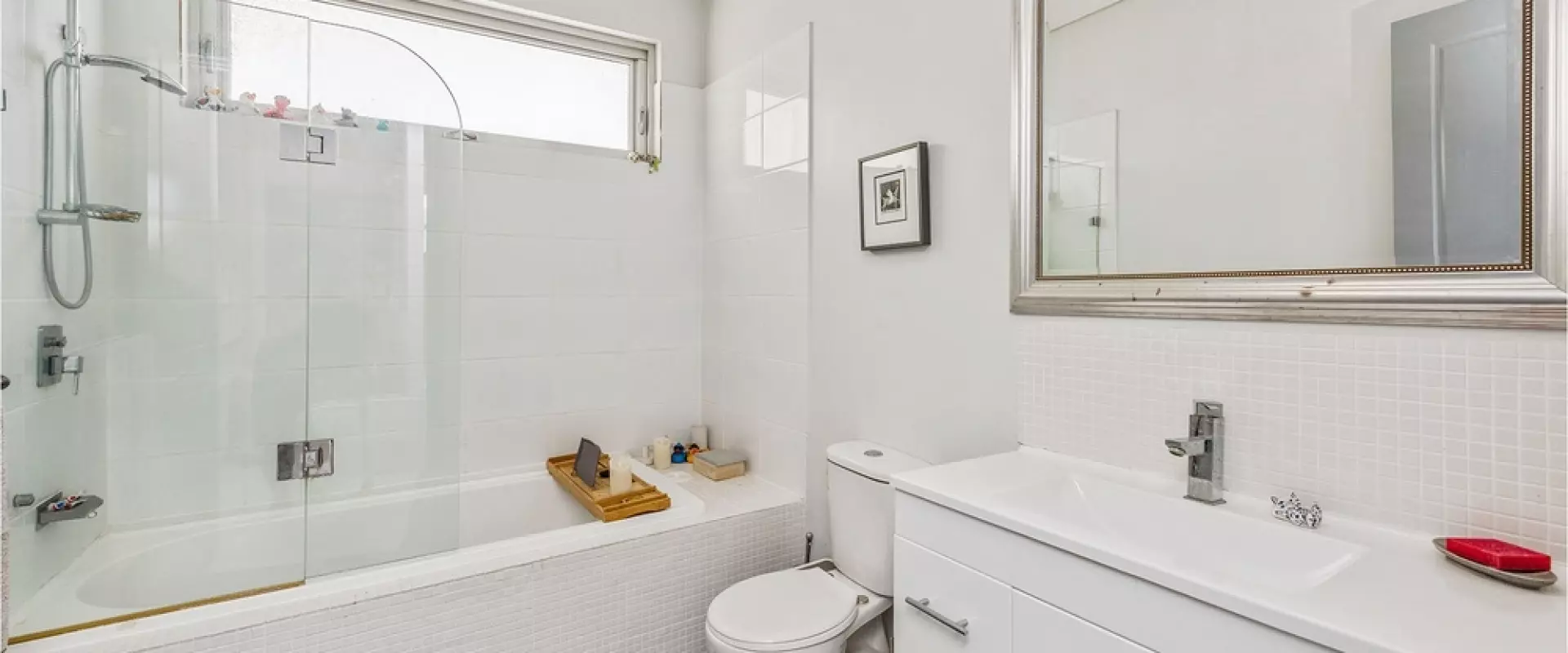 • Ensuite with shower/bathtub combo & art deco mirror