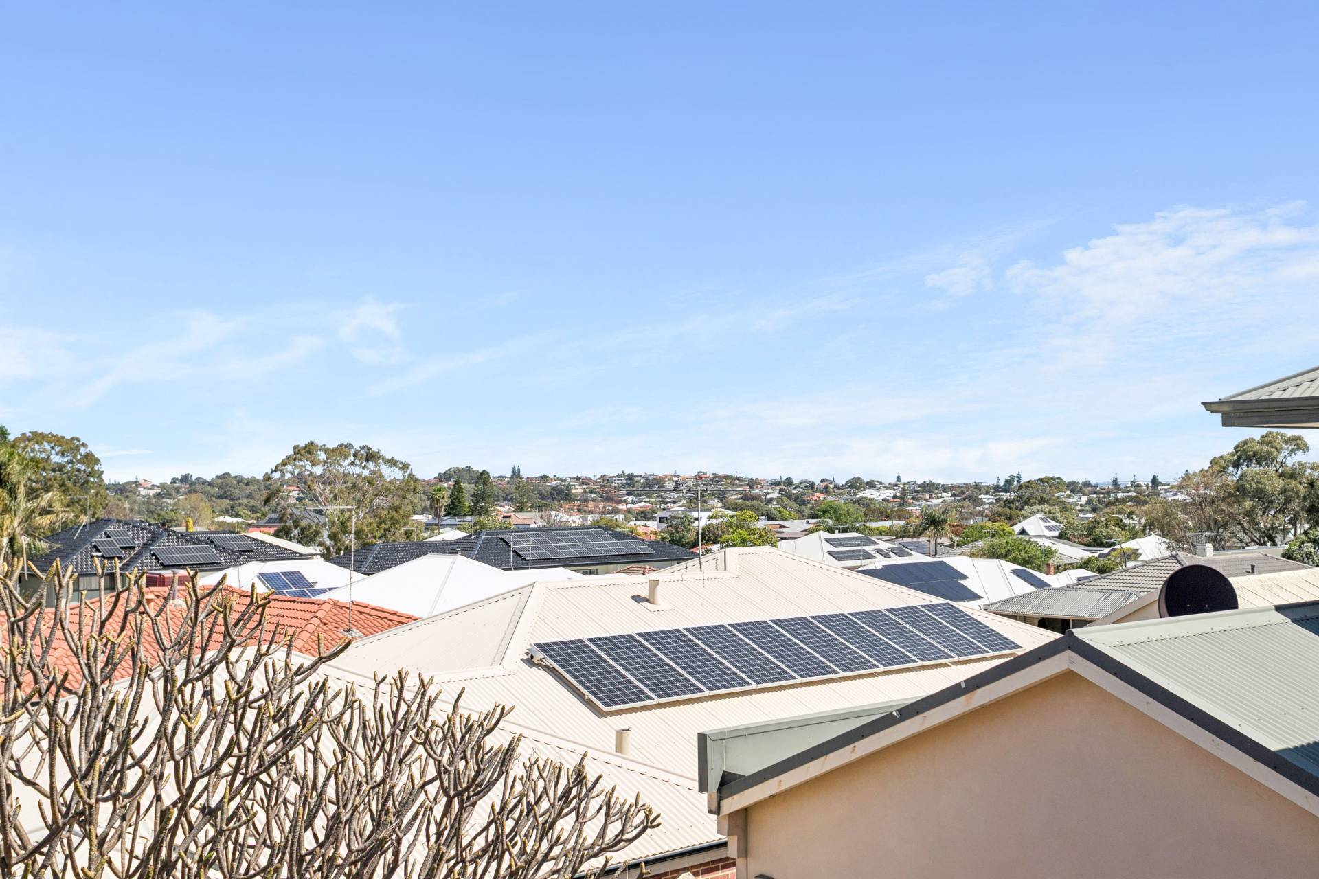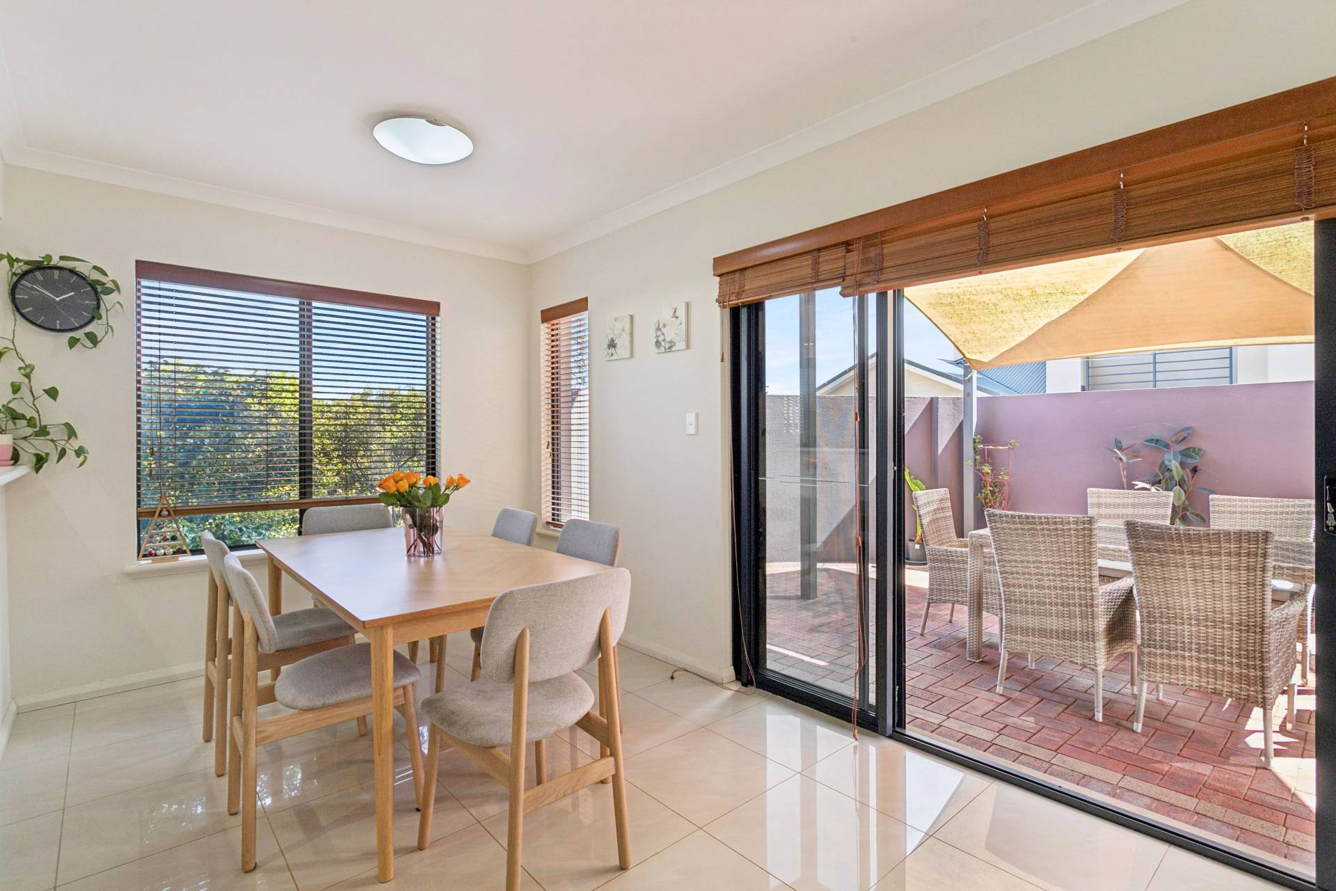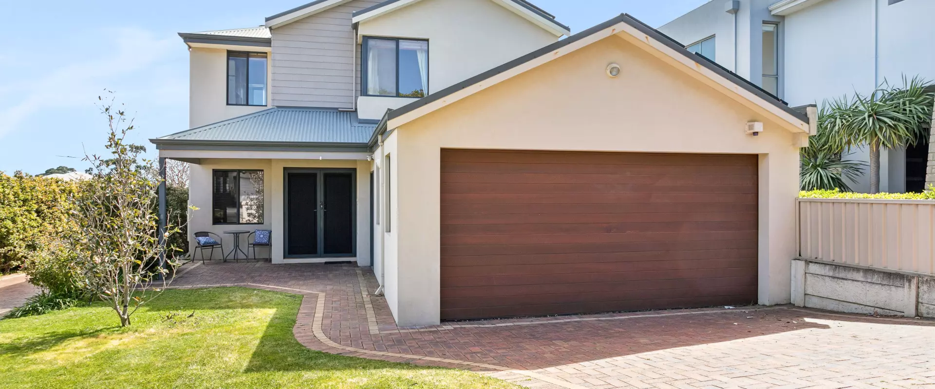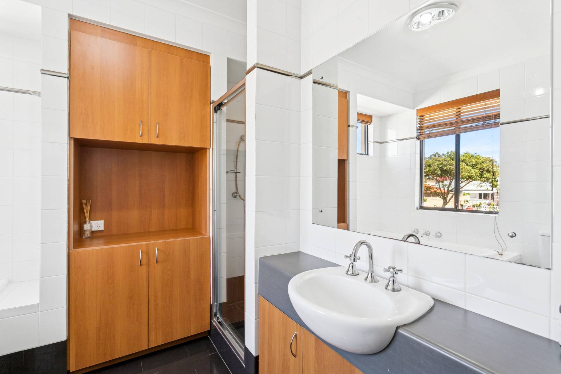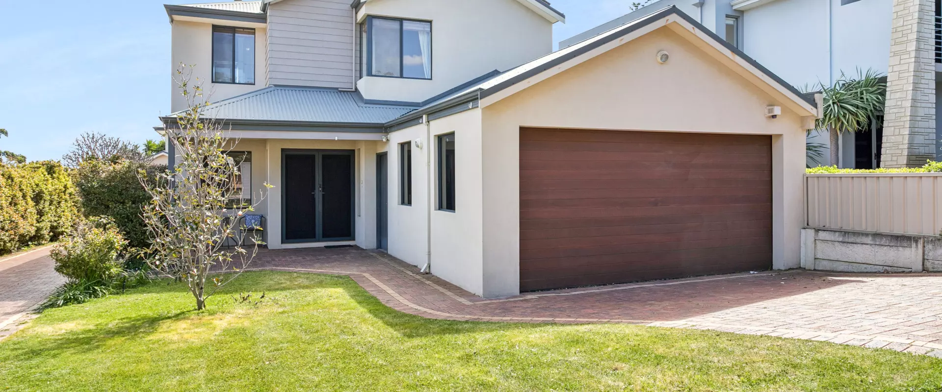 Upstairs, high ceilings and a wide hallway enhance the sense of space. Three well-appointed bedrooms include a stunning master suite with cathedral ceilings, walk-in robe, and spa-ensuite. A generous media room/4th bedroom connects seamlessly to the west-facing balcony, the perfect spot to soak up sunsets over Rottnest. Two additional bedrooms with built-in robes share a stylish bathroom with full-height tiling and bath.