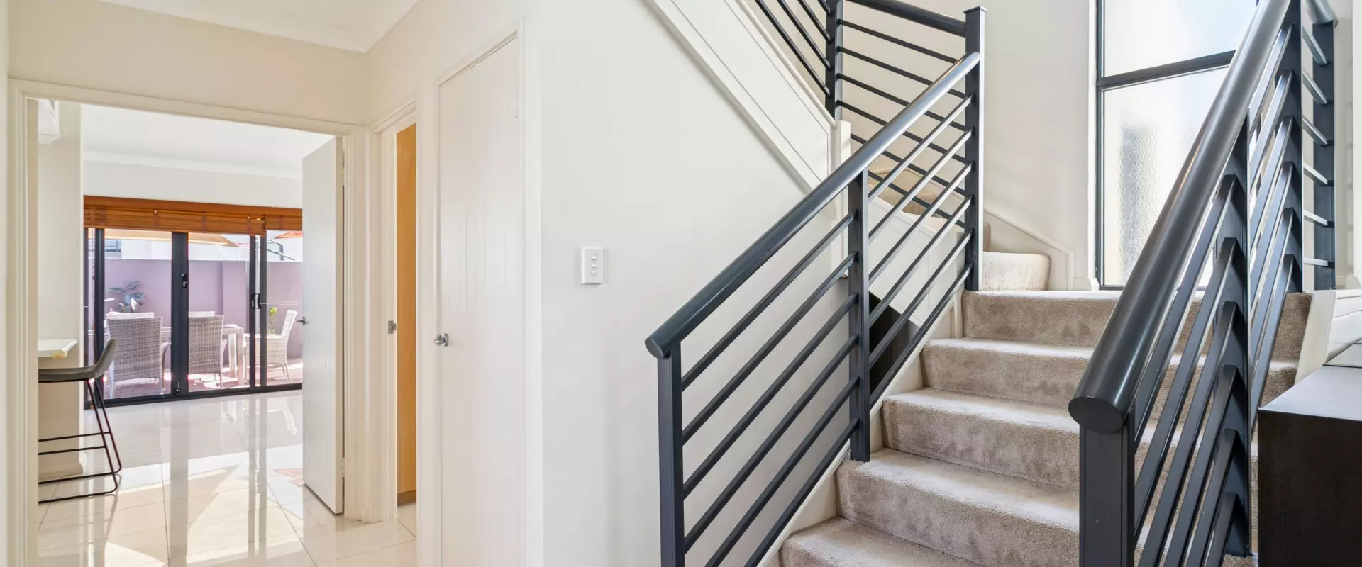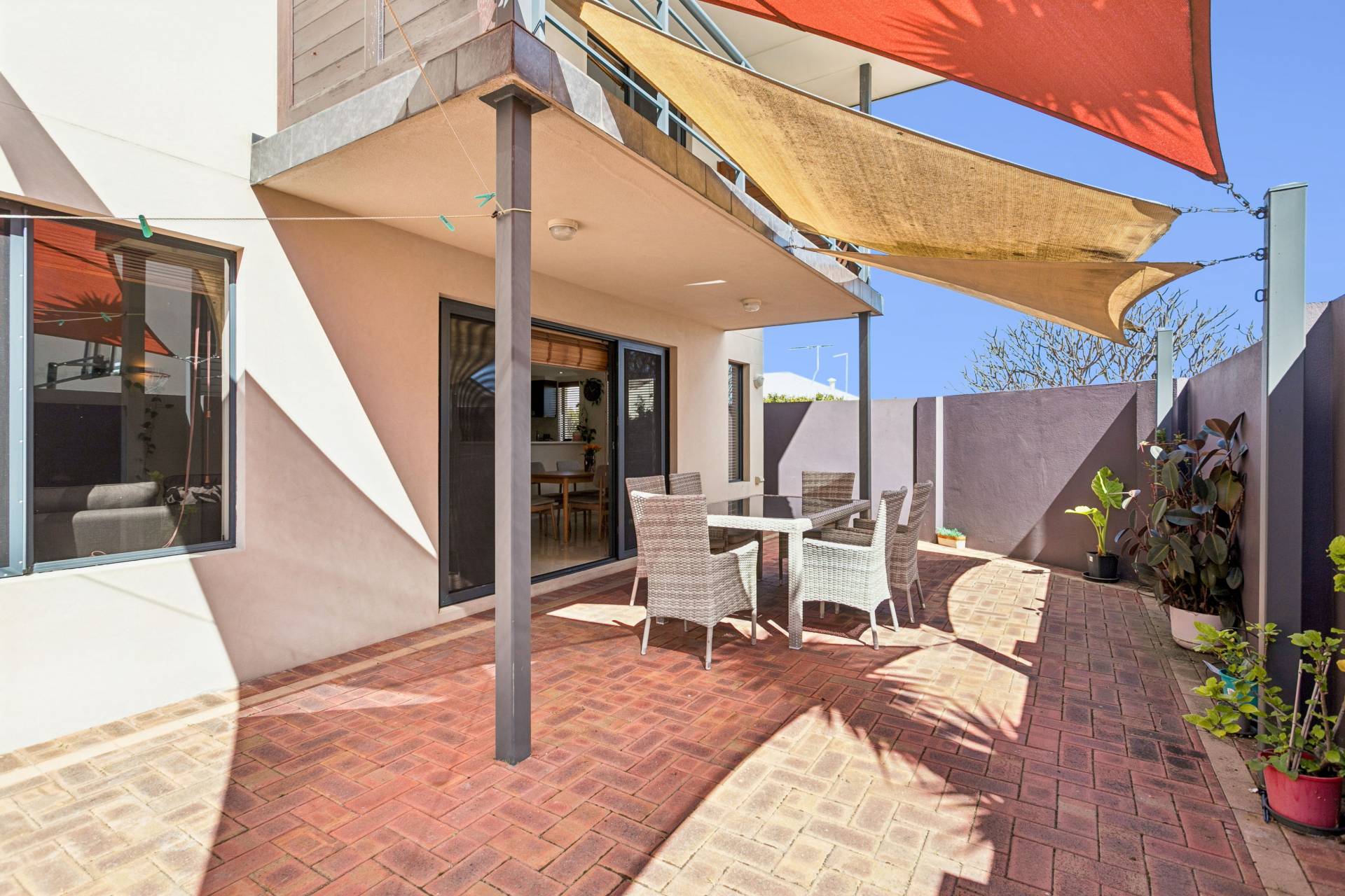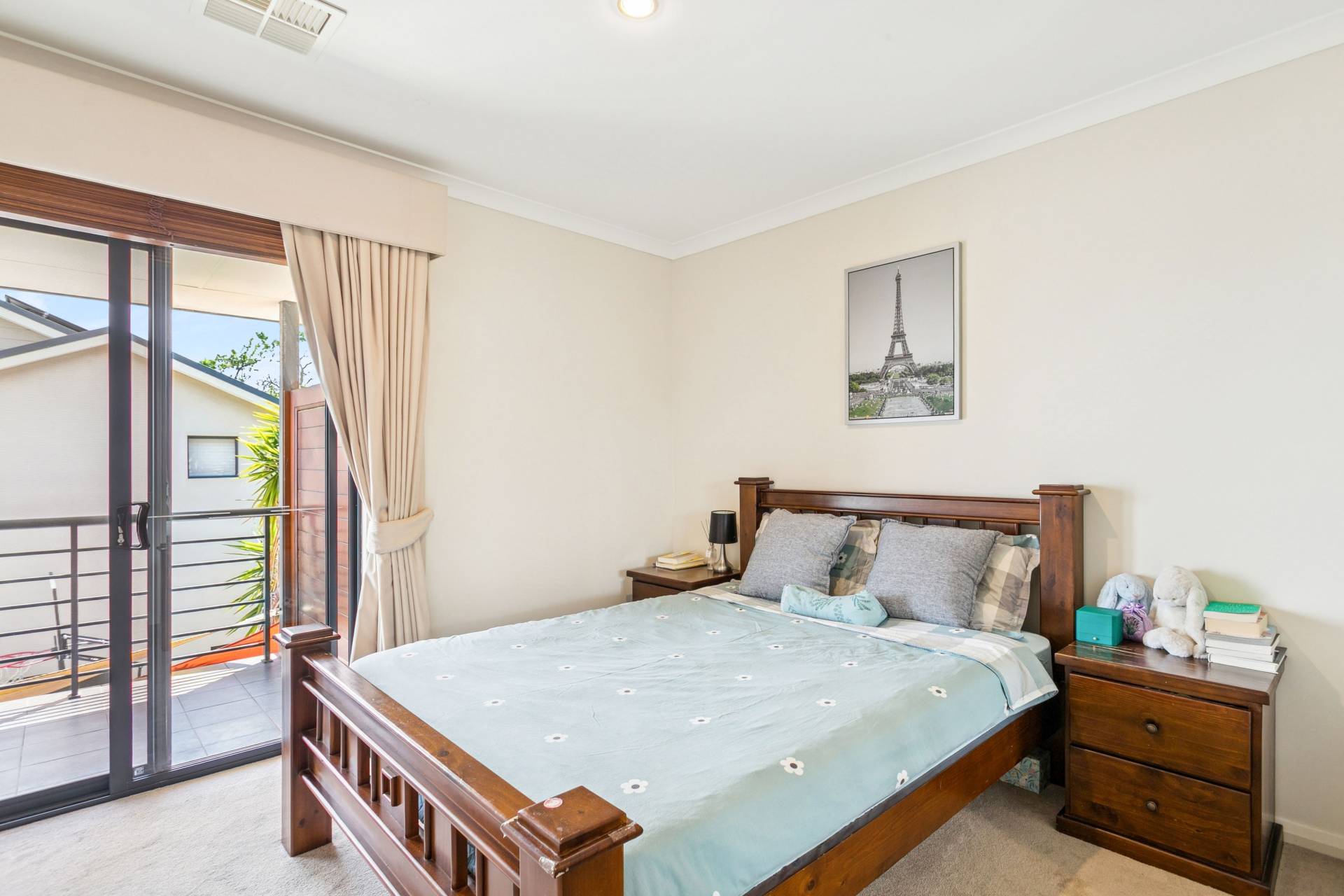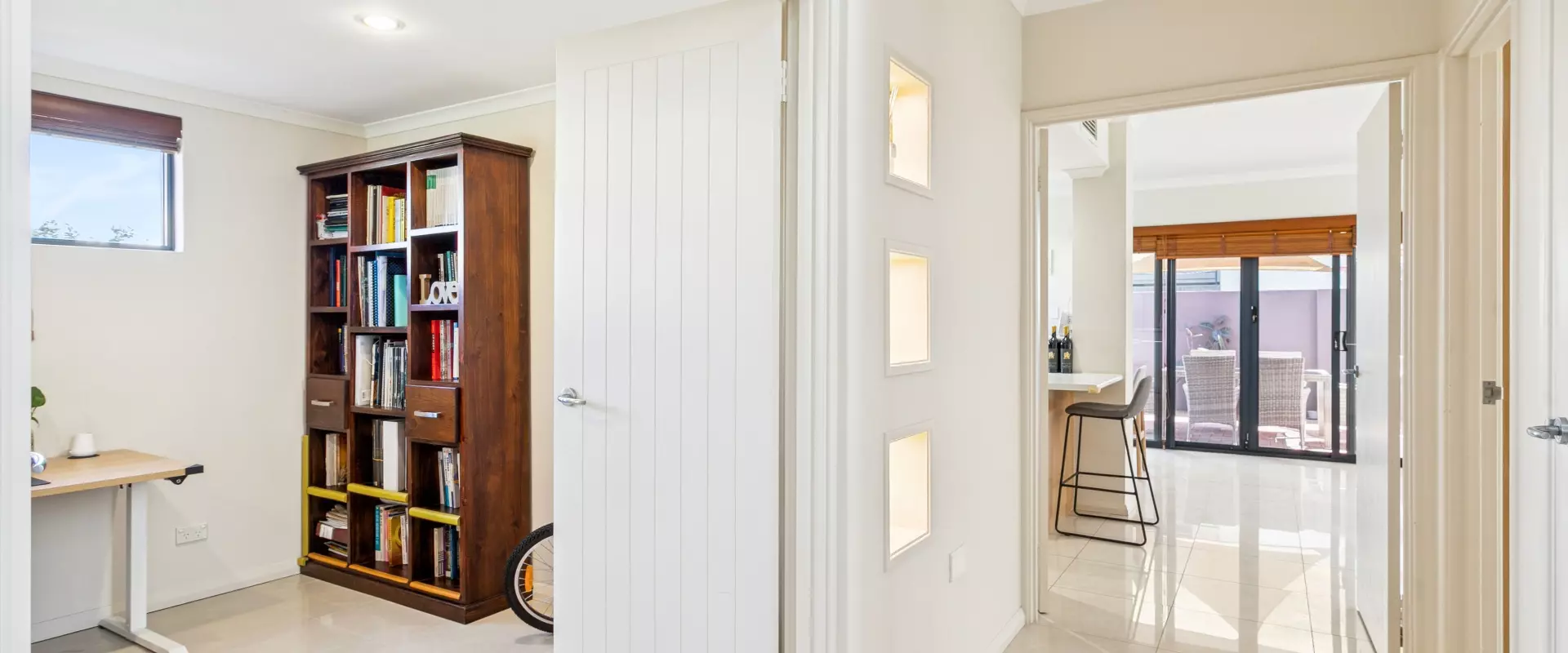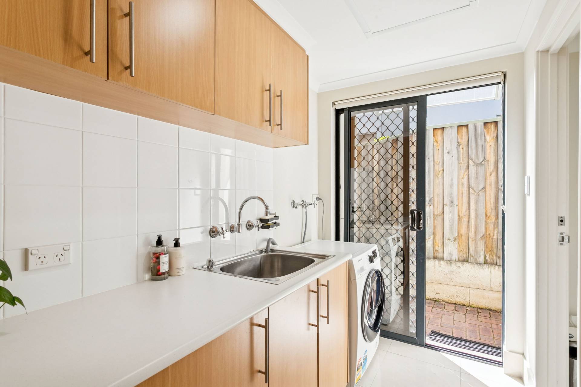 Upstairs, high ceilings and a wide hallway enhance the sense of space. Three well-appointed bedrooms include a stunning master suite with cathedral ceilings, walk-in robe, and spa-ensuite. A generous media room/4th bedroom connects seamlessly to the west-facing balcony, the perfect spot to soak up sunsets over Rottnest. Two additional bedrooms with built-in robes share a stylish bathroom with full-height tiling and bath.