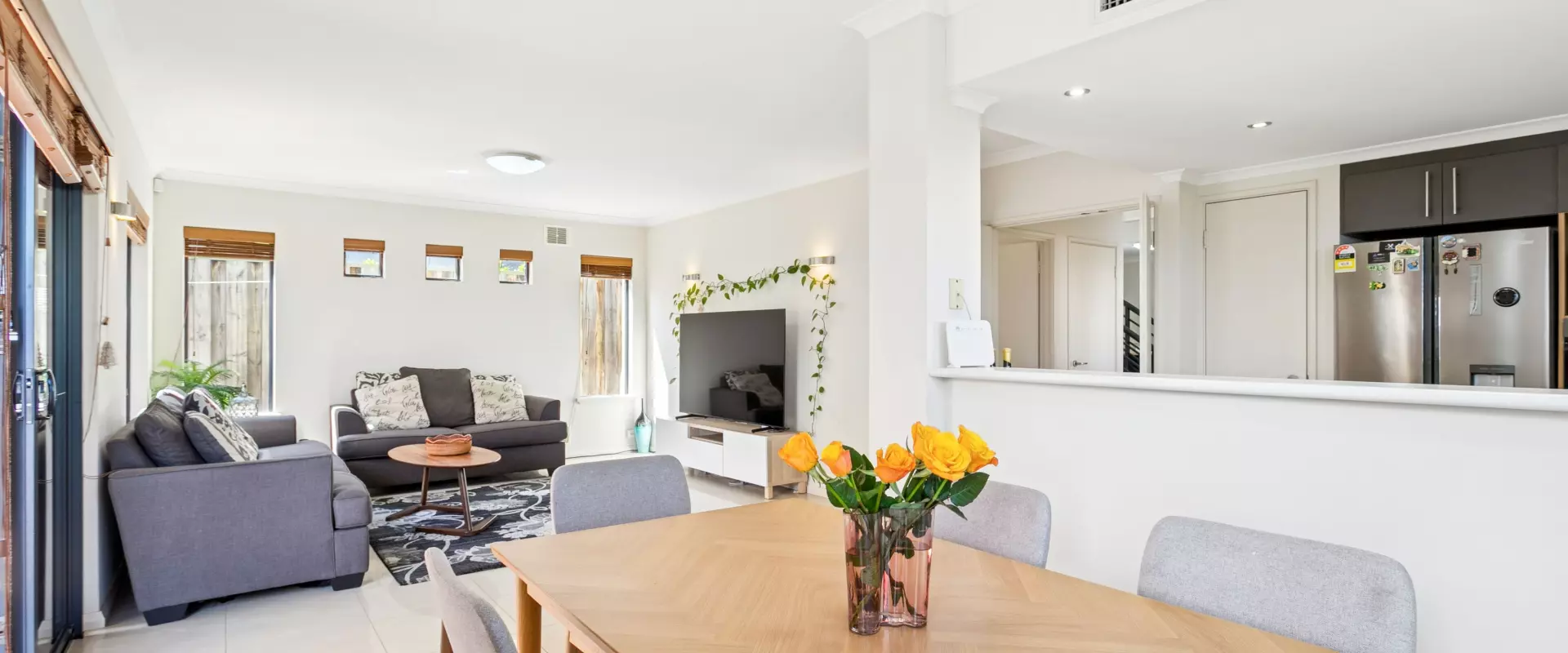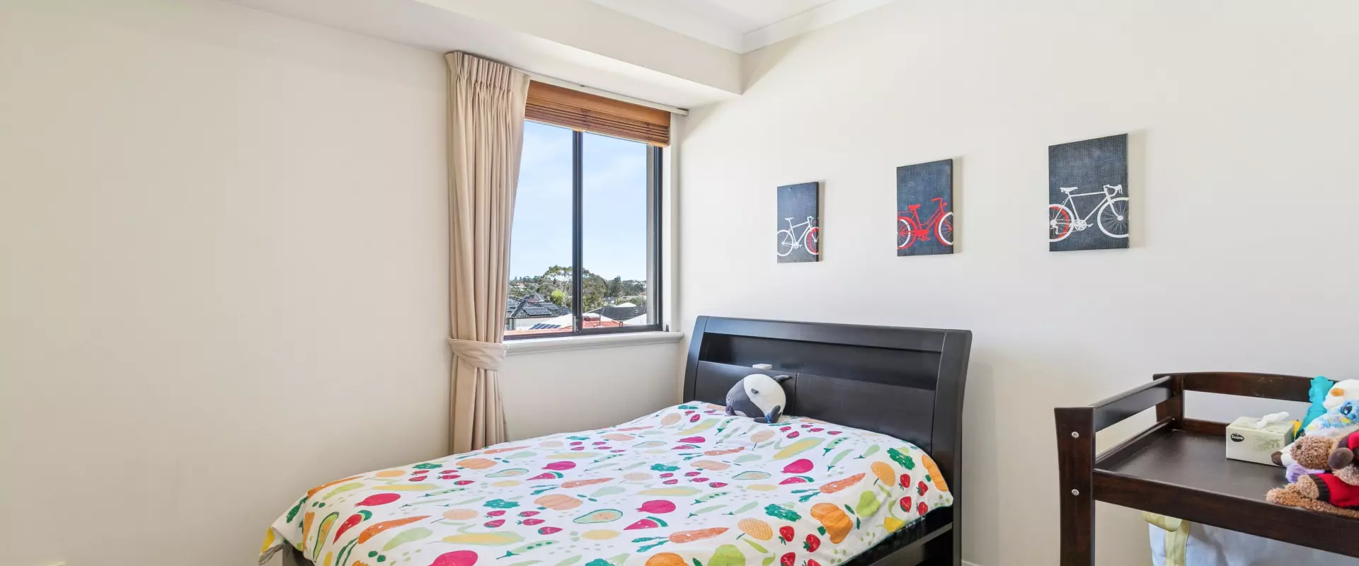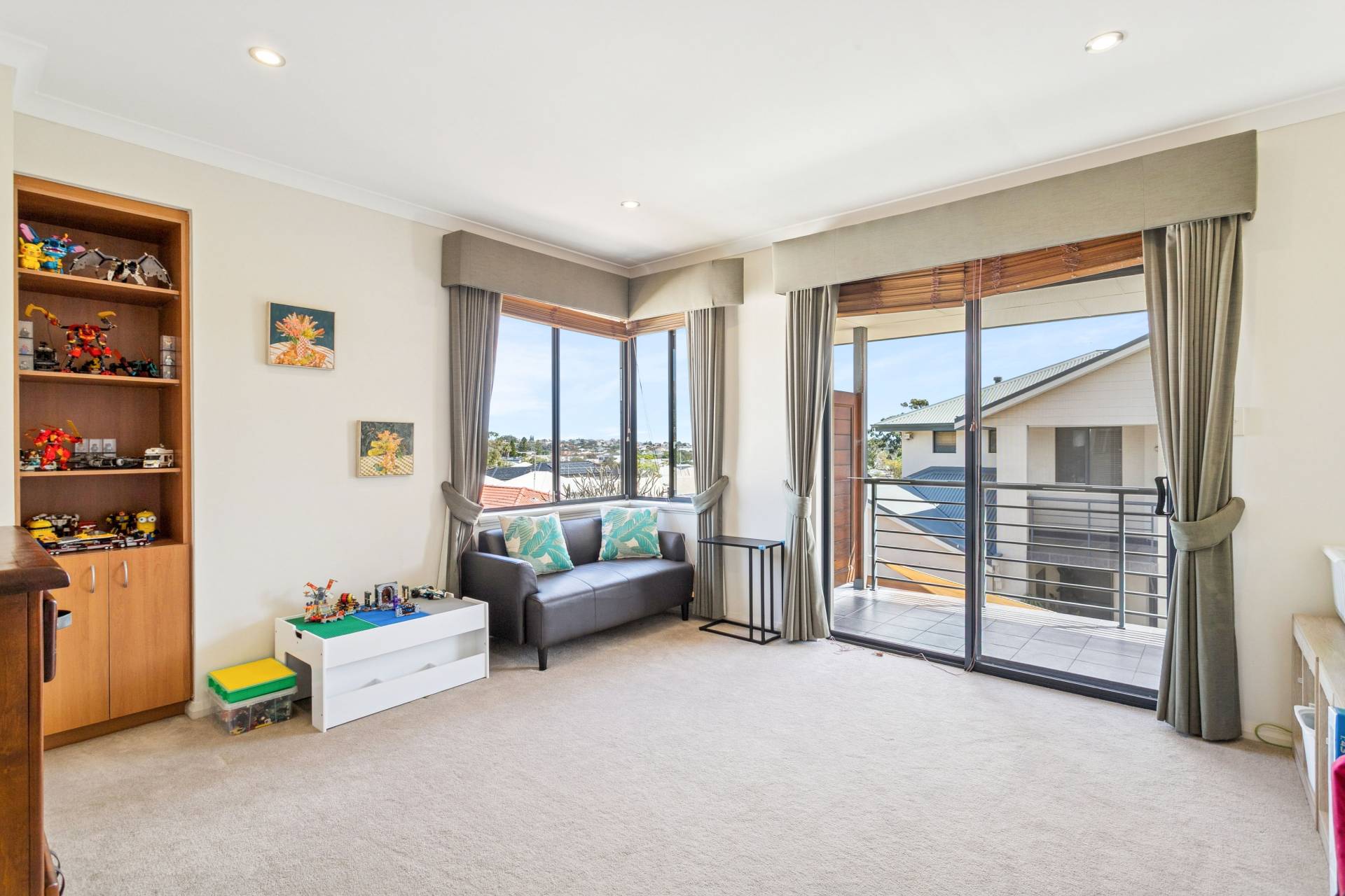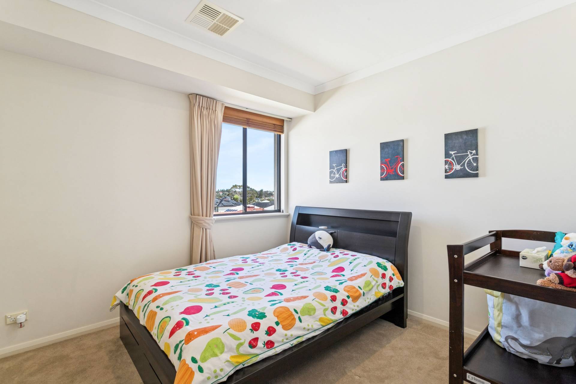 Upstairs, high ceilings and a wide hallway enhance the sense of space. Three well-appointed bedrooms include a stunning master suite with cathedral ceilings, walk-in robe, and spa-ensuite. A generous media room/4th bedroom connects seamlessly to the west-facing balcony, the perfect spot to soak up sunsets over Rottnest. Two additional bedrooms with built-in robes share a stylish bathroom with full-height tiling and bath.