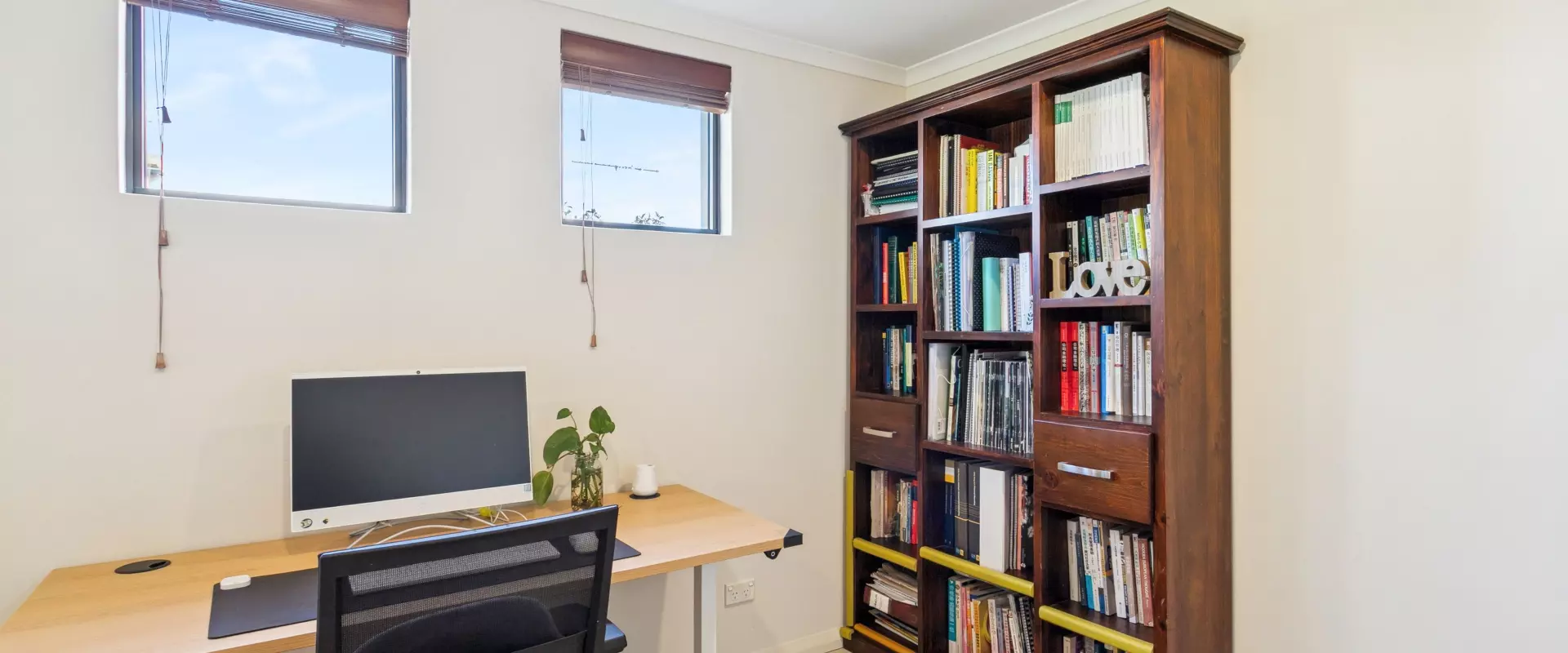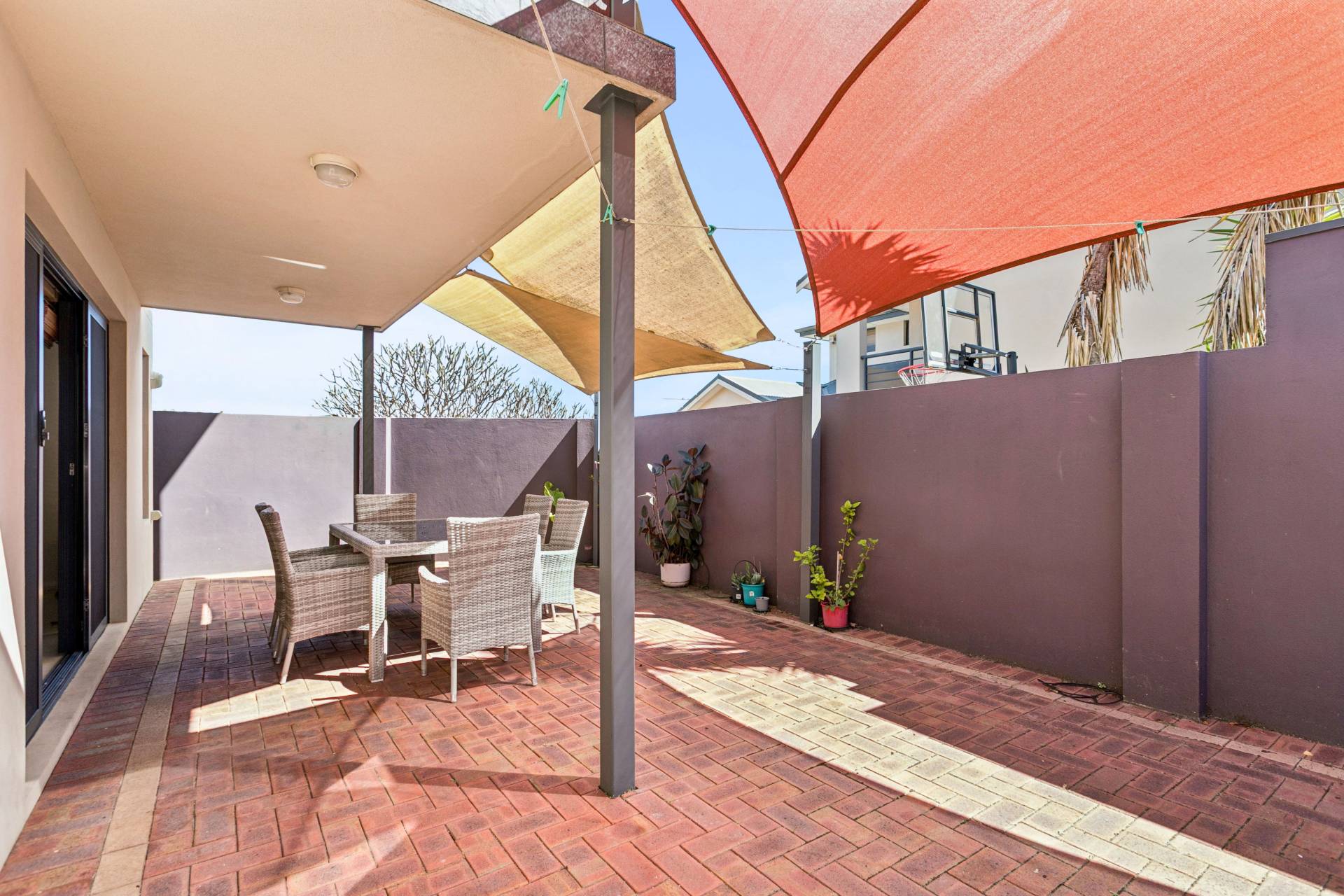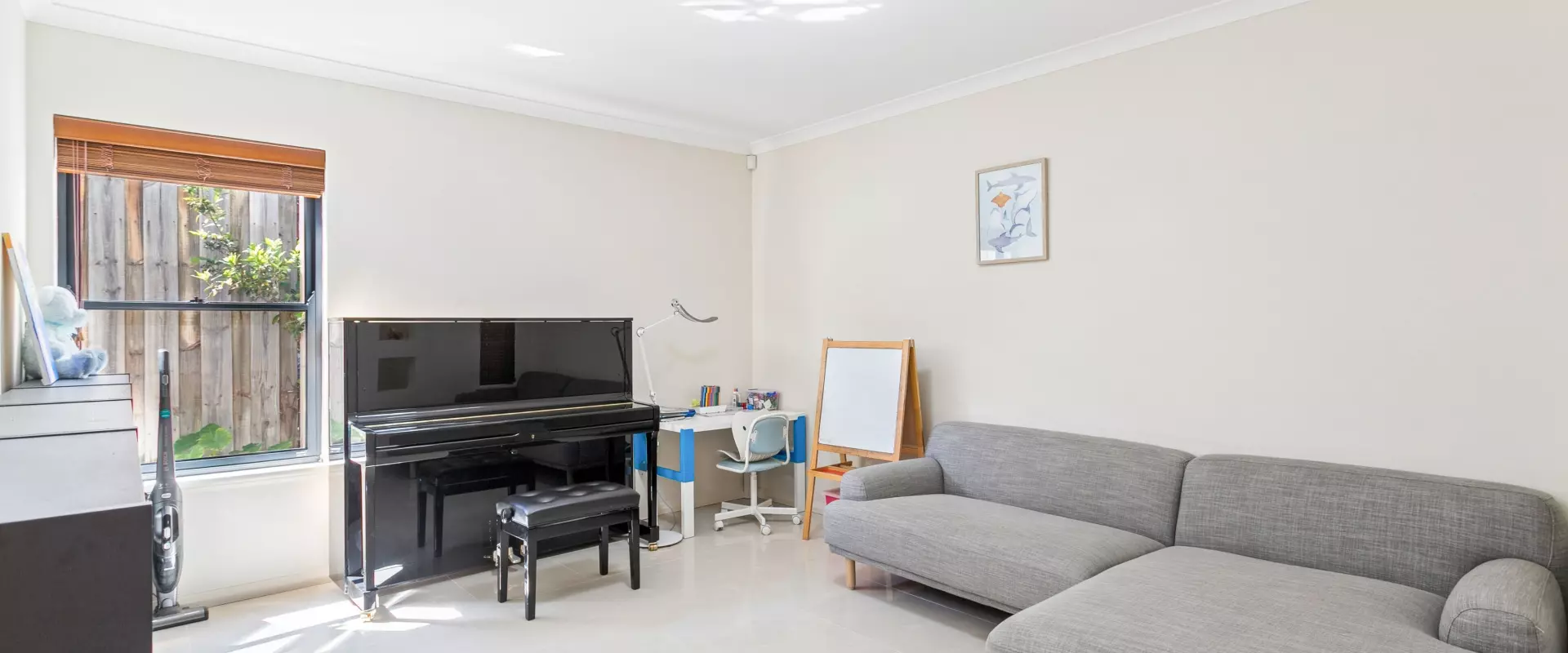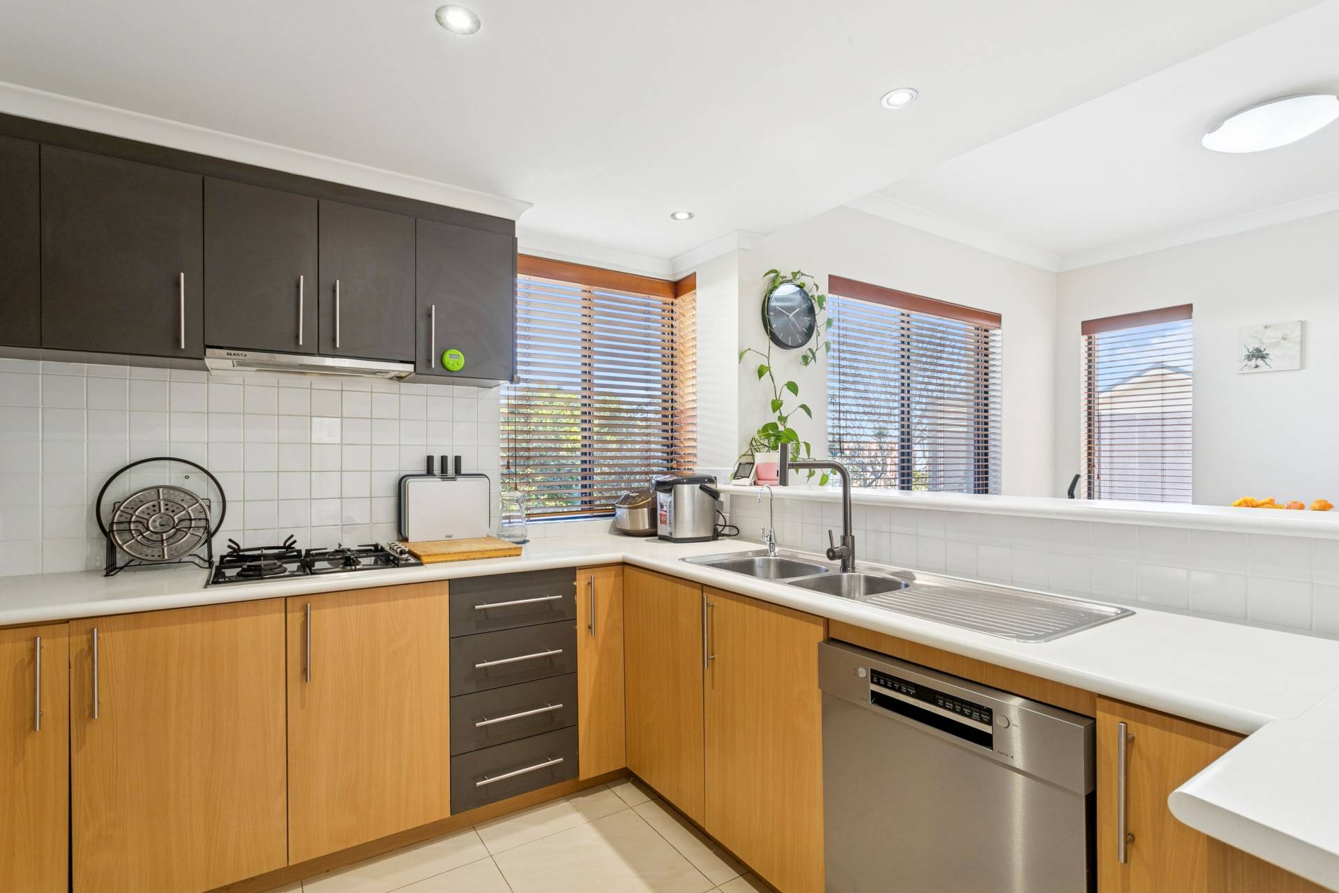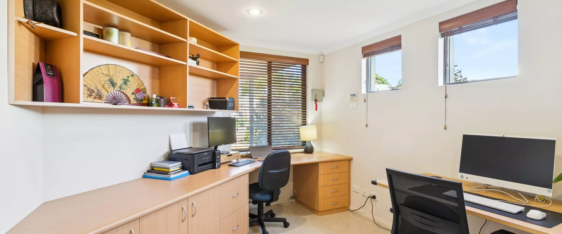 Upstairs, high ceilings and a wide hallway enhance the sense of space. Three well-appointed bedrooms include a stunning master suite with cathedral ceilings, walk-in robe, and spa-ensuite. A generous media room/4th bedroom connects seamlessly to the west-facing balcony, the perfect spot to soak up sunsets over Rottnest. Two additional bedrooms with built-in robes share a stylish bathroom with full-height tiling and bath.