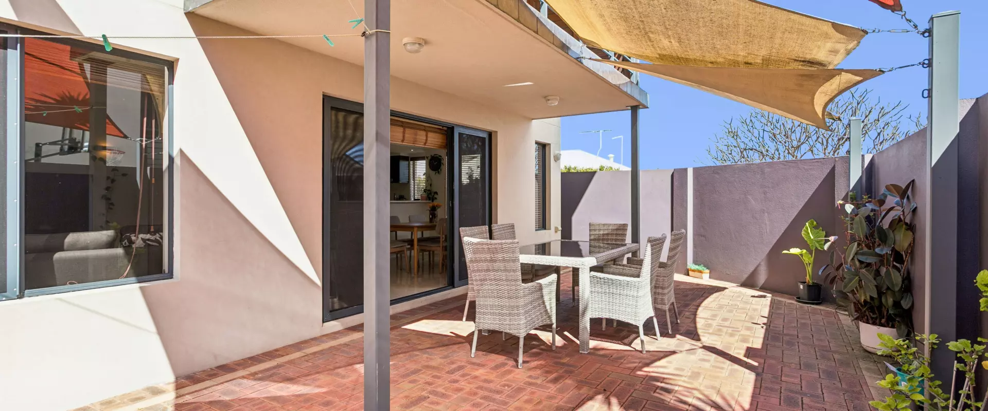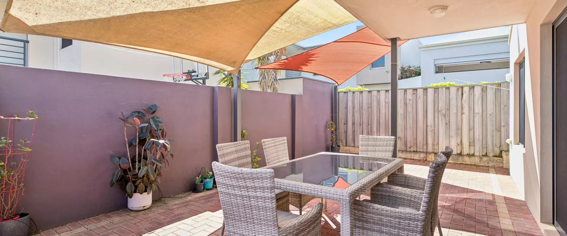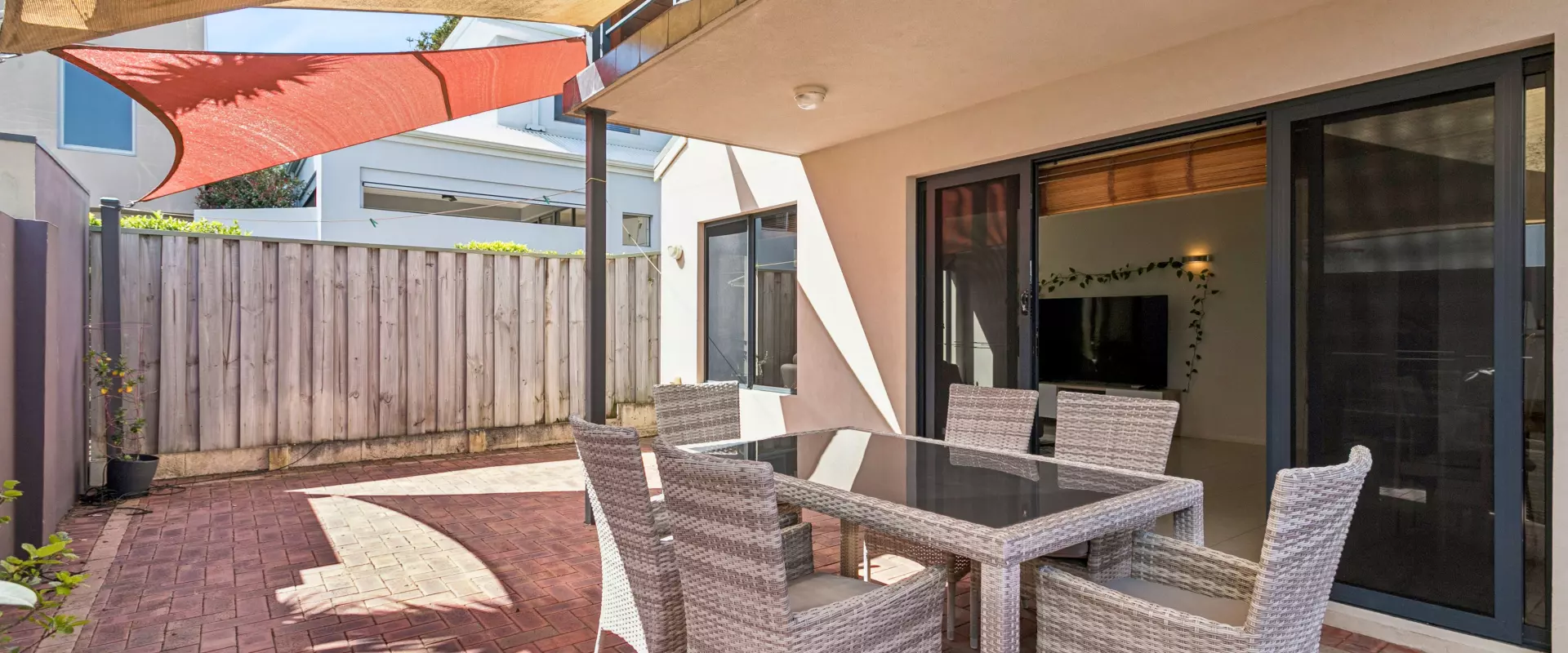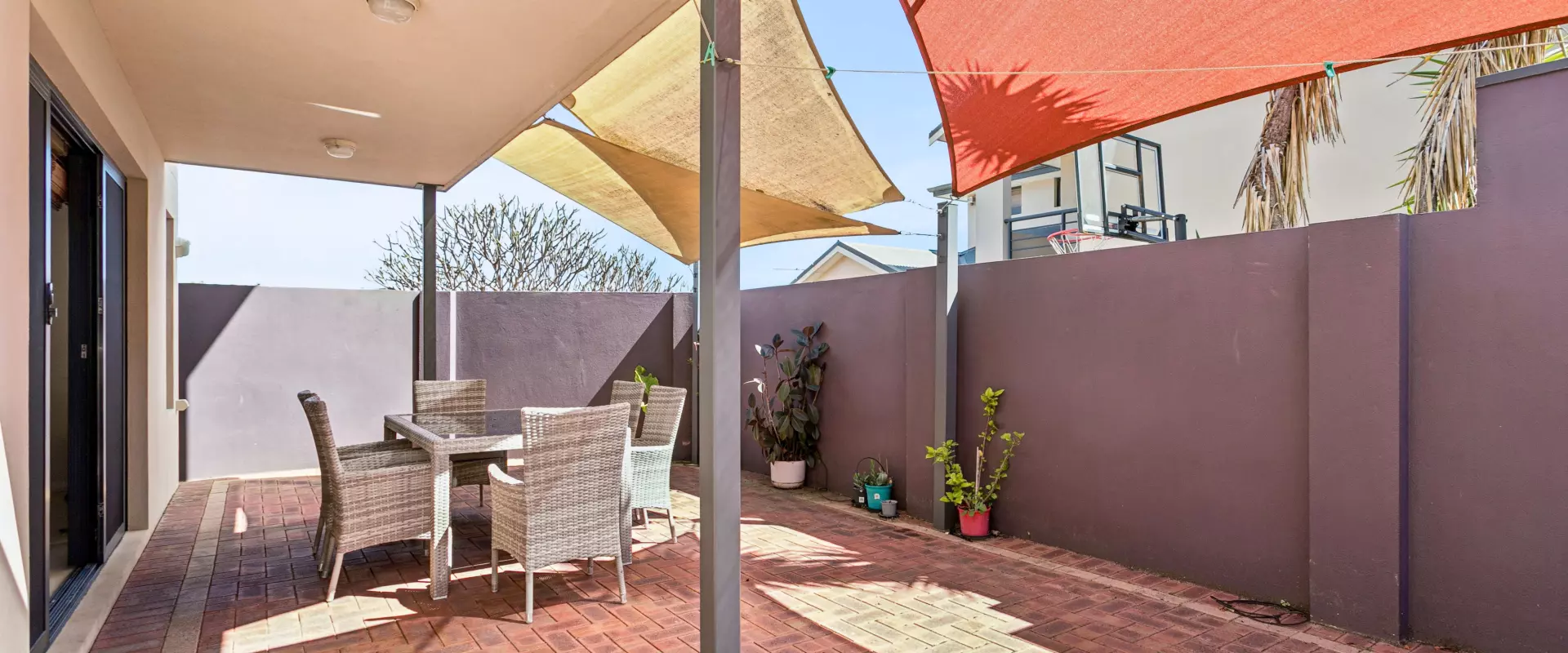 Peaceful alfresco courtyard plus west-facing balcony with ocean outlook