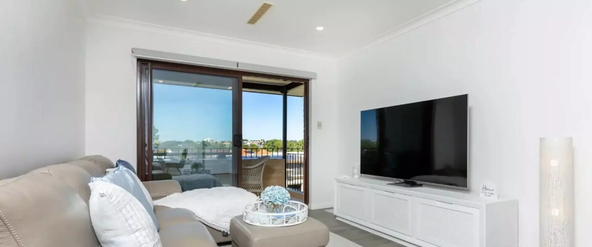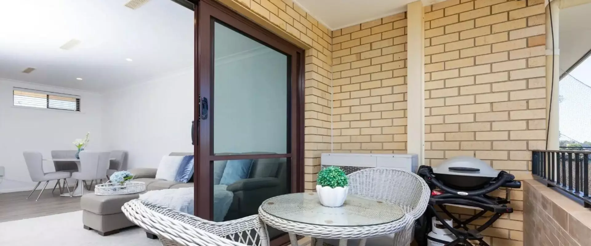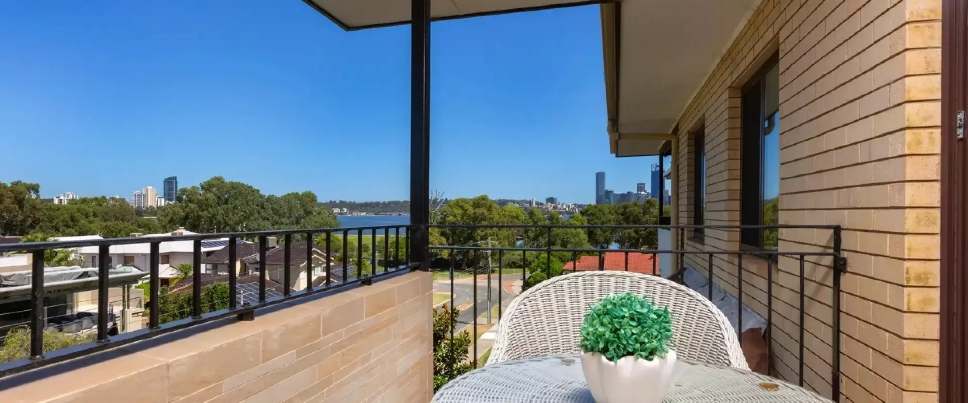 • Stone-tiled balcony with gorgeous views across to Hurlingham Lake and the Swan River.