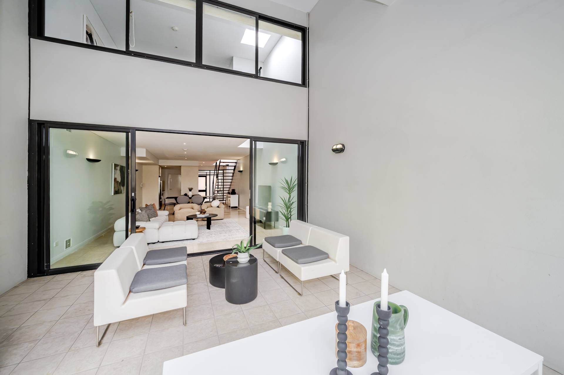 Accommodation has been thoughtfully designed. Two bedrooms are serviced by two full bathrooms, while an additional powder room downstairs brings the total to three toilets, ensuring convenience for family and guests. Both bedrooms include large walk-in wardrobes, providing ample storage without compromising on style. A standout feature is the large study, offering the perfect retreat for working from home or a creative studio.