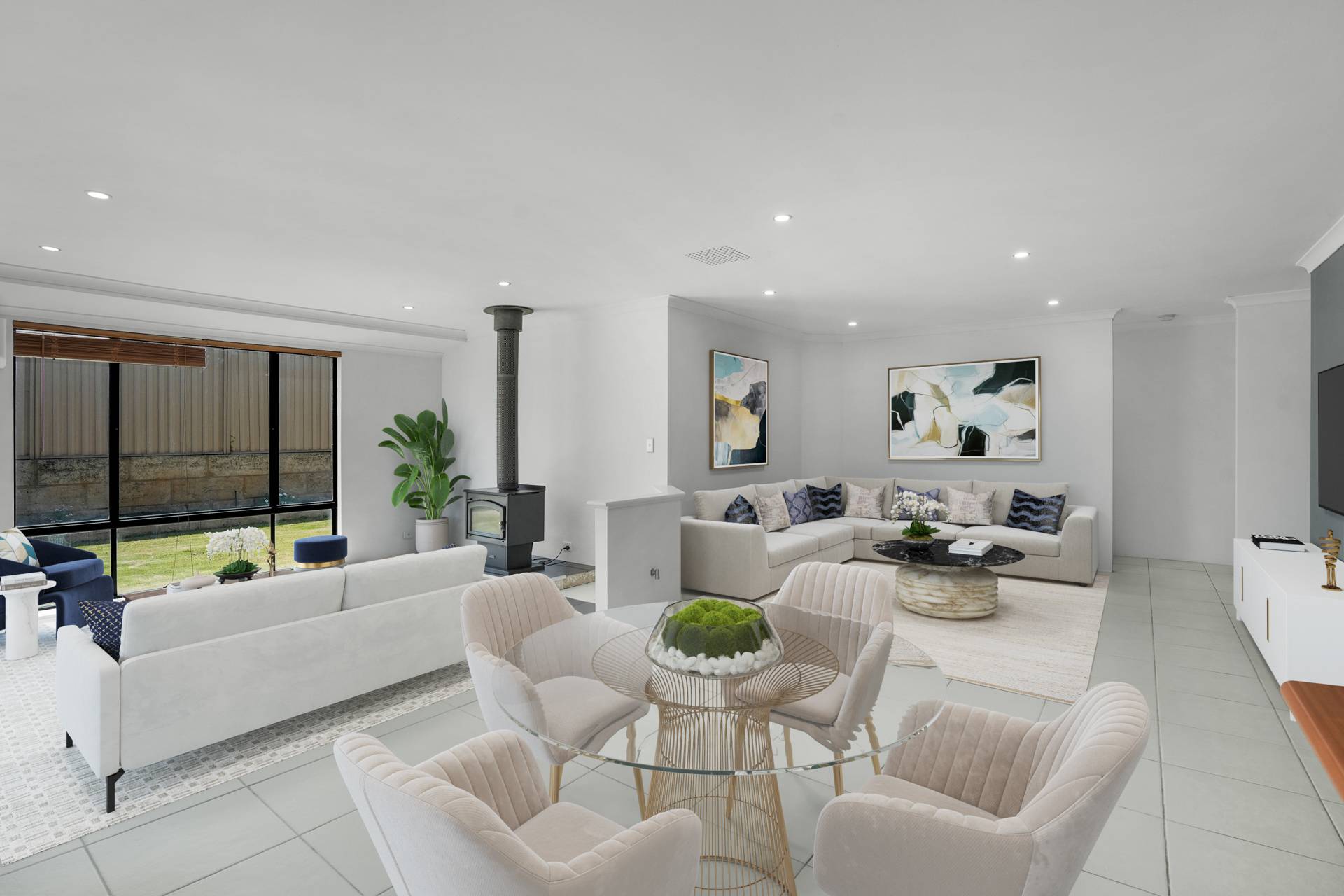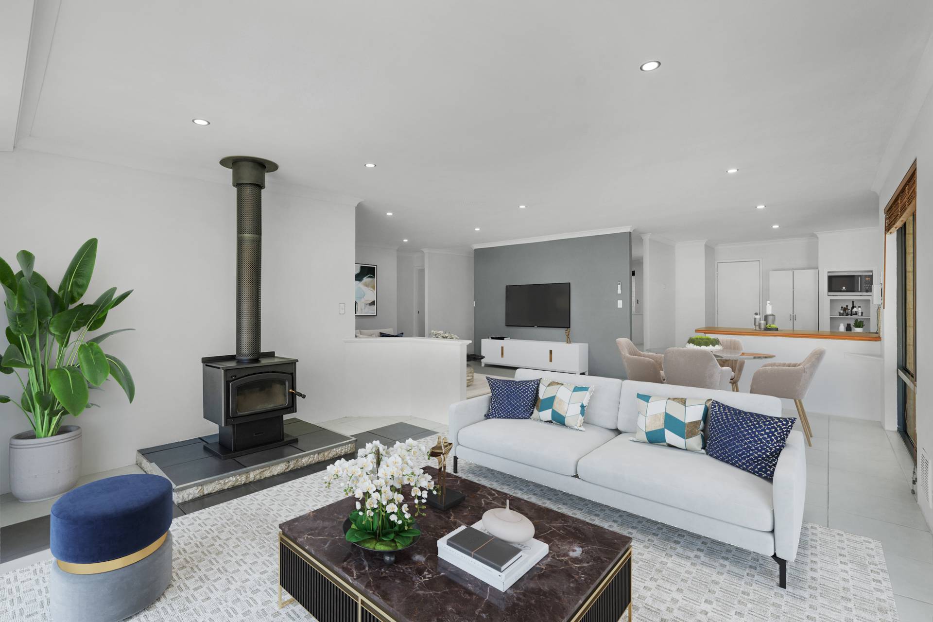 - Casual meals area and family room overlooks the outdoor entertaining area and incorporates a cosy wood fire place