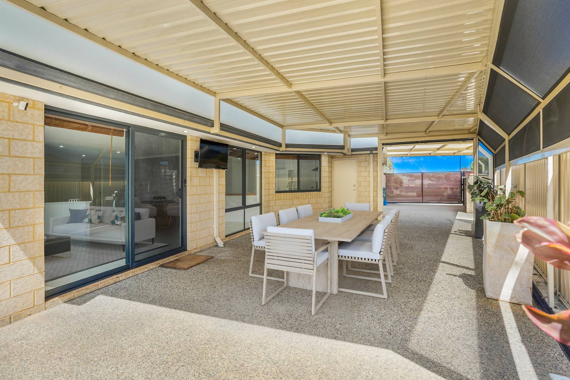 - Sweeping undercover alfresco area allows for year round use thanks to pull down weather blinds