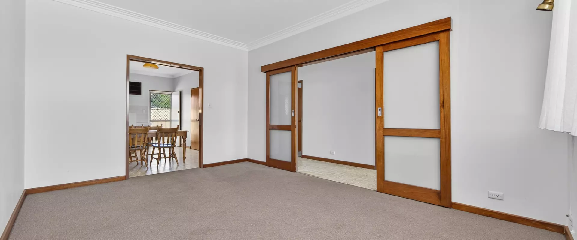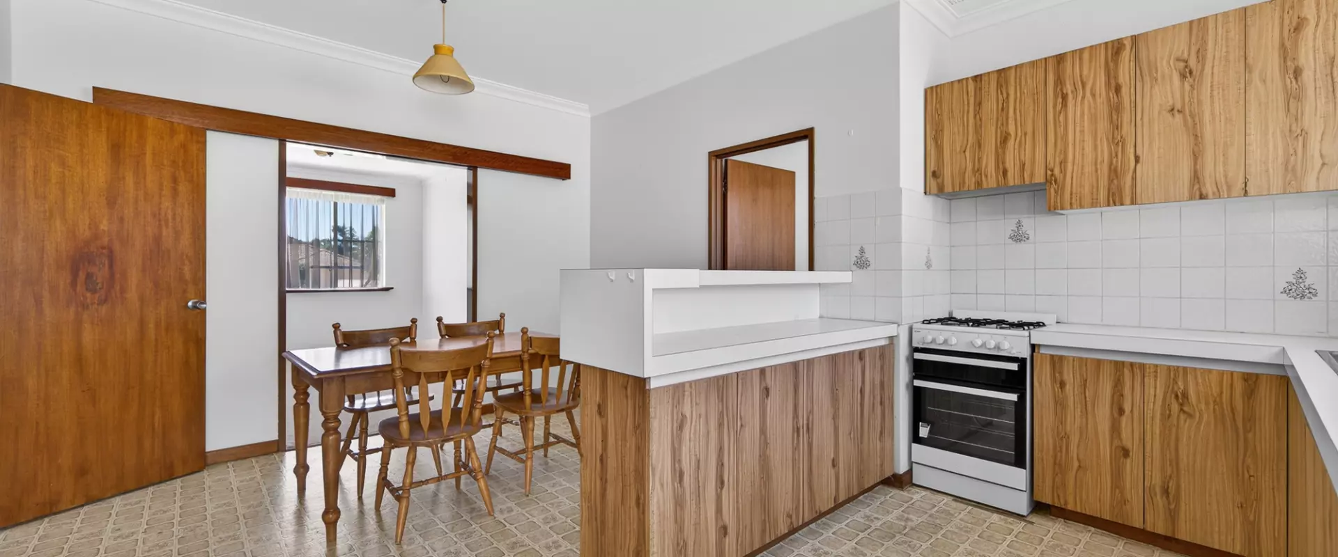 At the front of the property, youll find a cosy carpeted living room complete with sliding doors. The layout flows easily through to the dining and kitchen area, offering an inviting space for relaxed meals or entertaining.